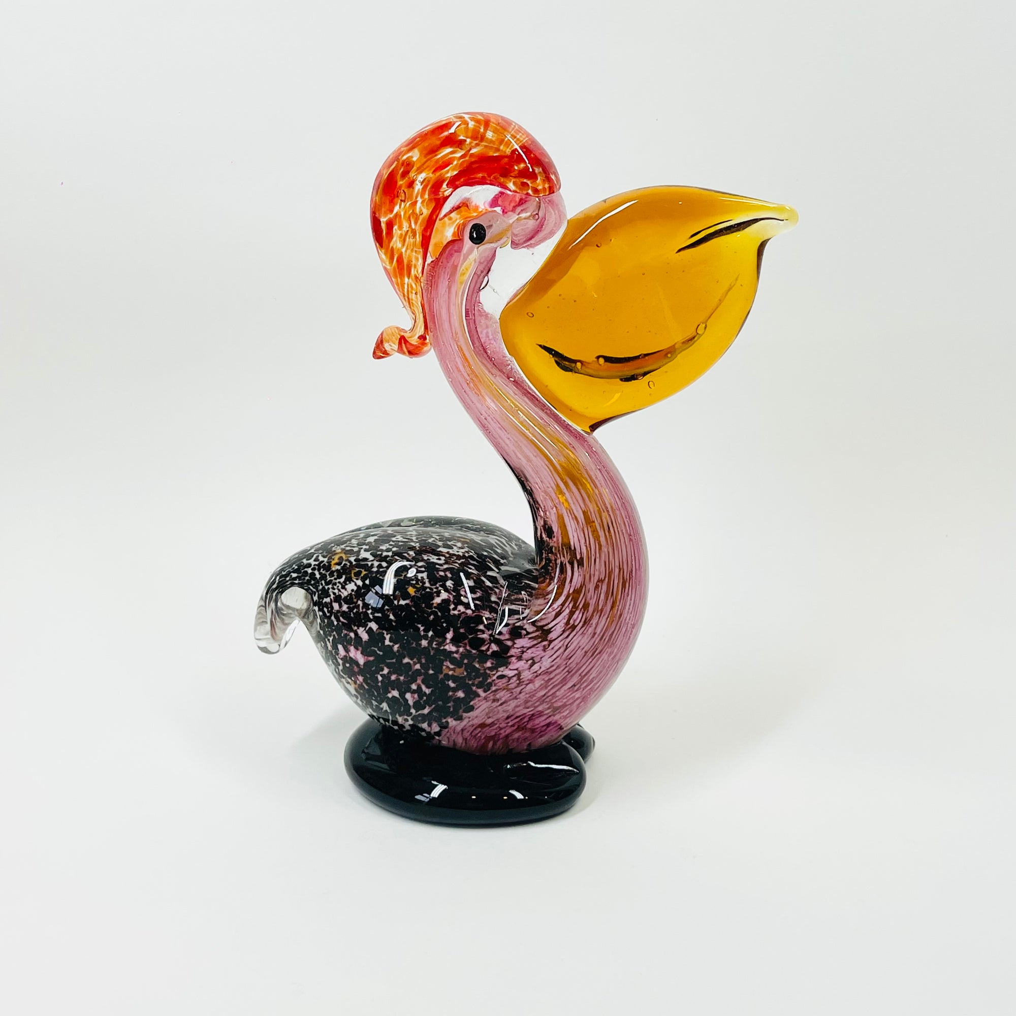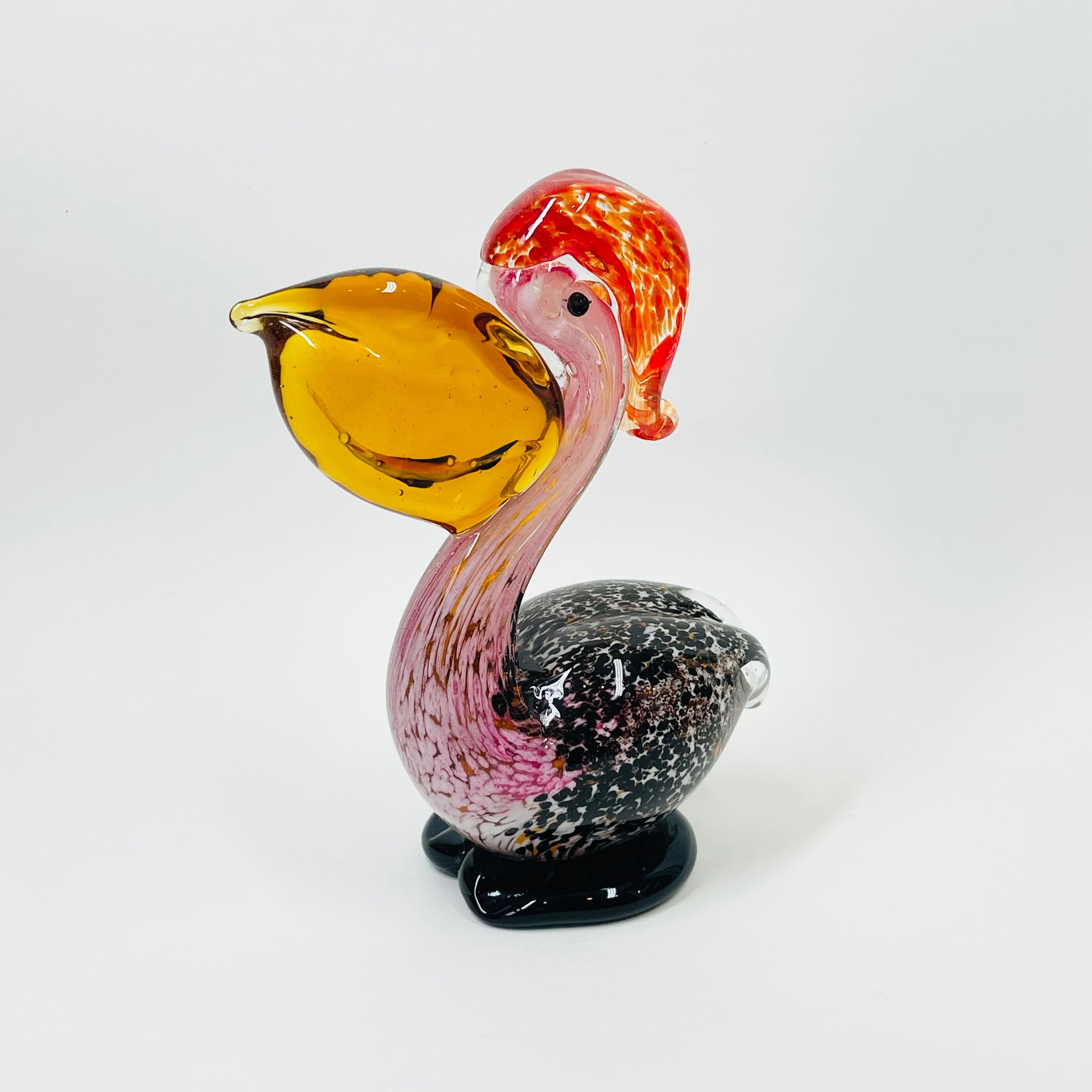 1980s CZECH PINK SPATTER GLASS PELICAN