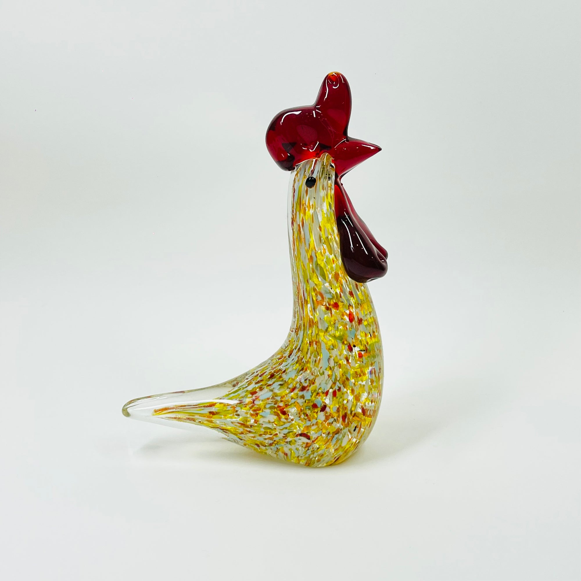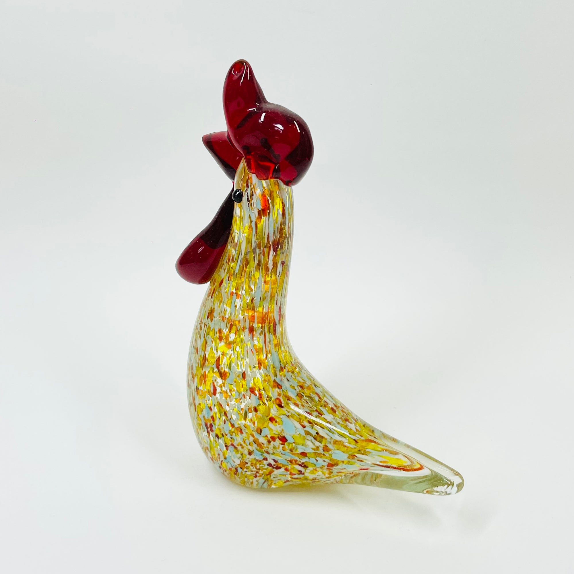 1980s CZECH YELLOW SPATTER GLASS ROOSTER