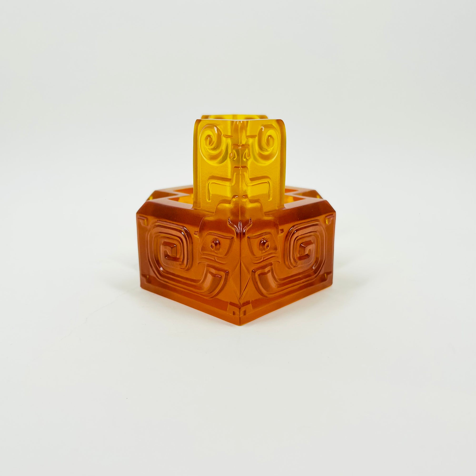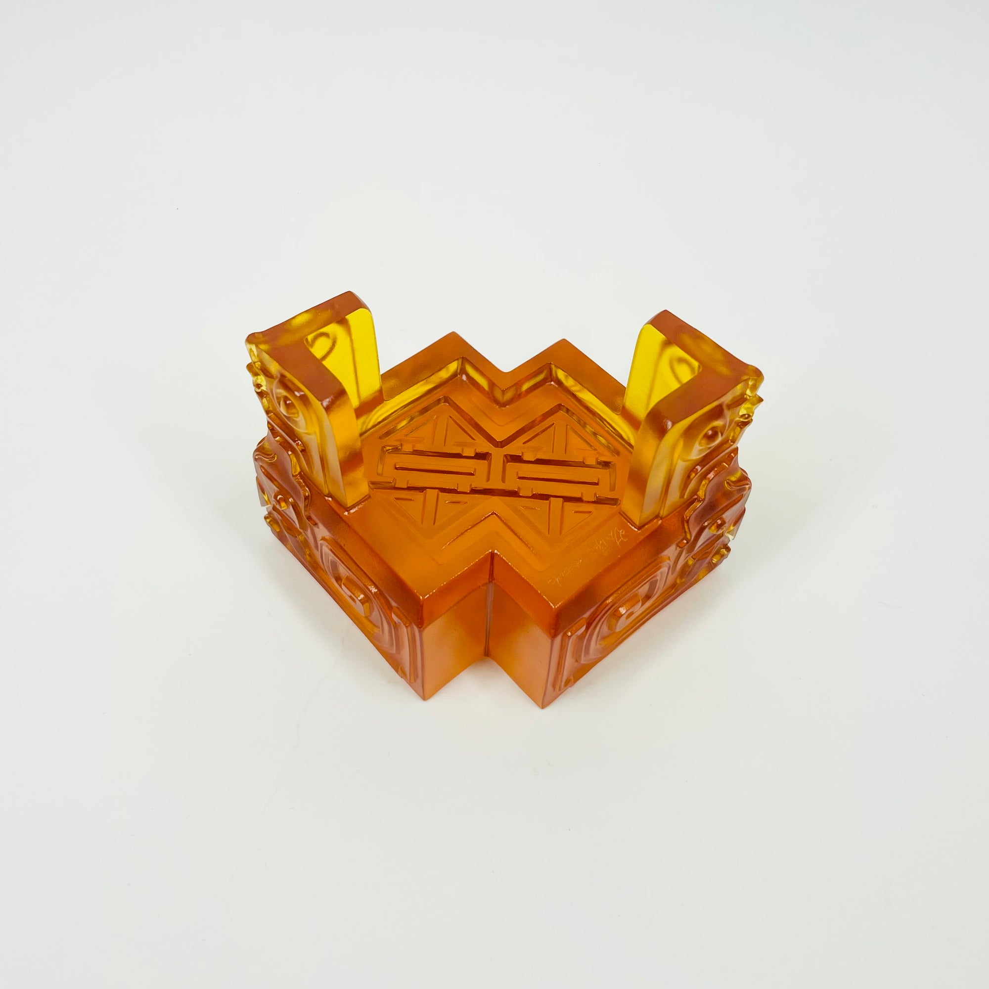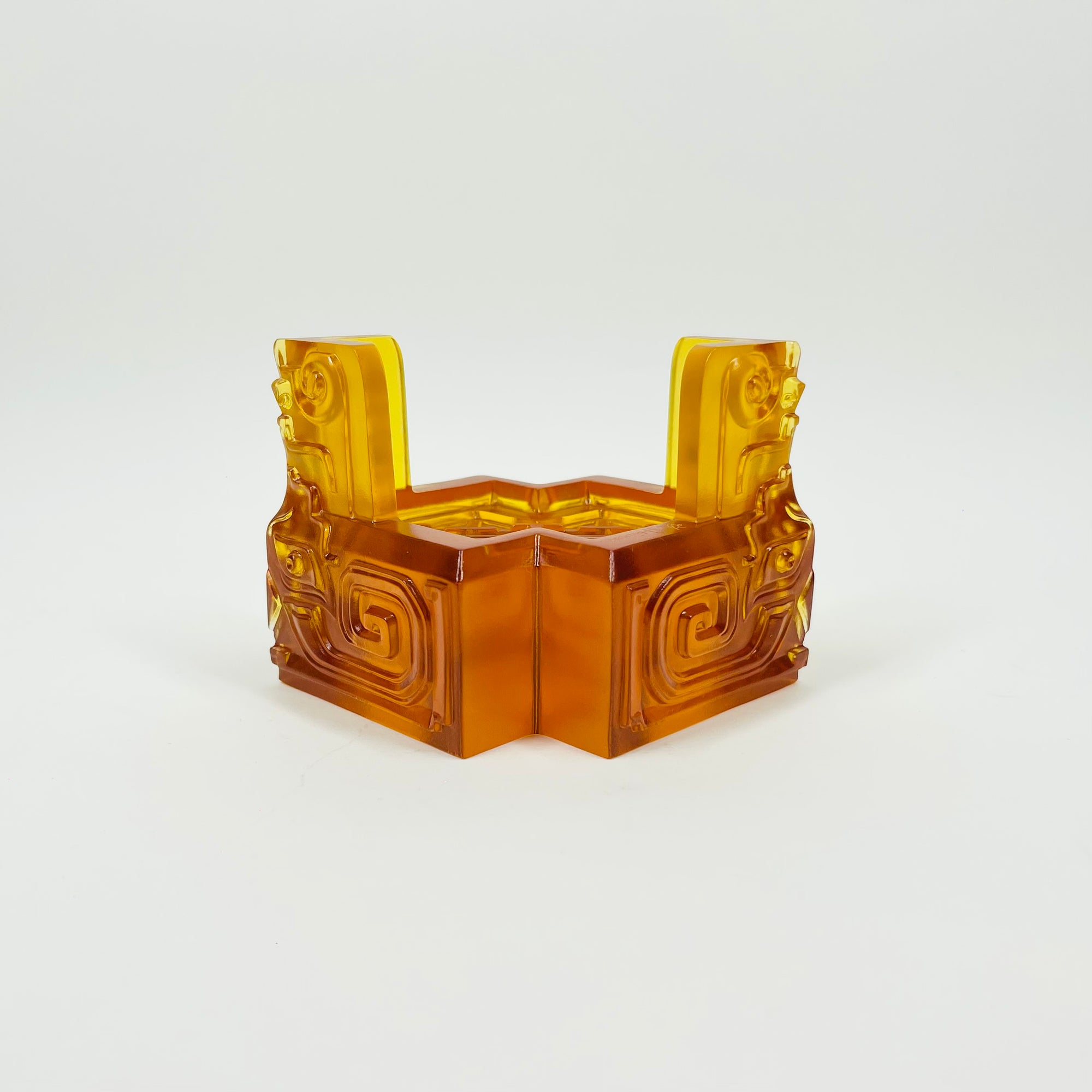 1980s CHINESE AMBER SATIN GLASS SCULPTURE BY TITTOT