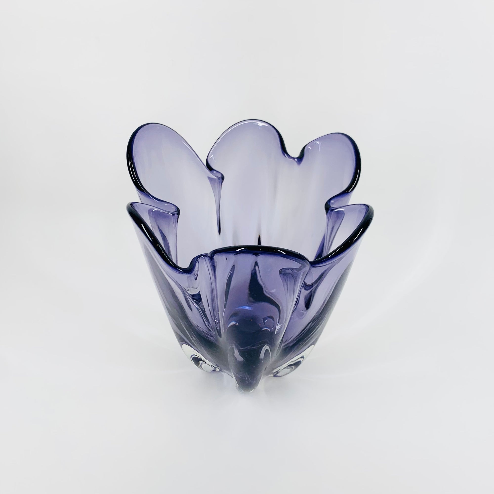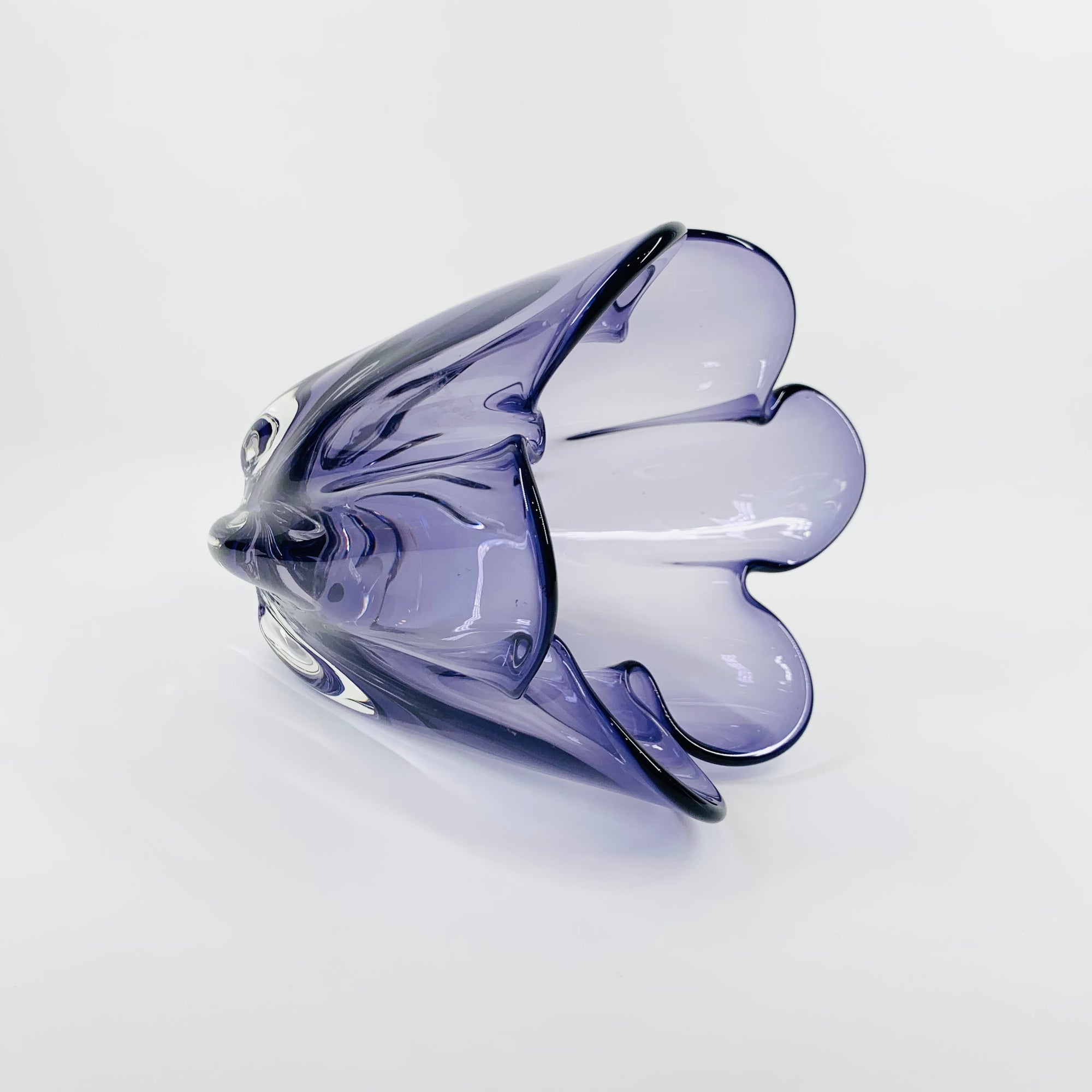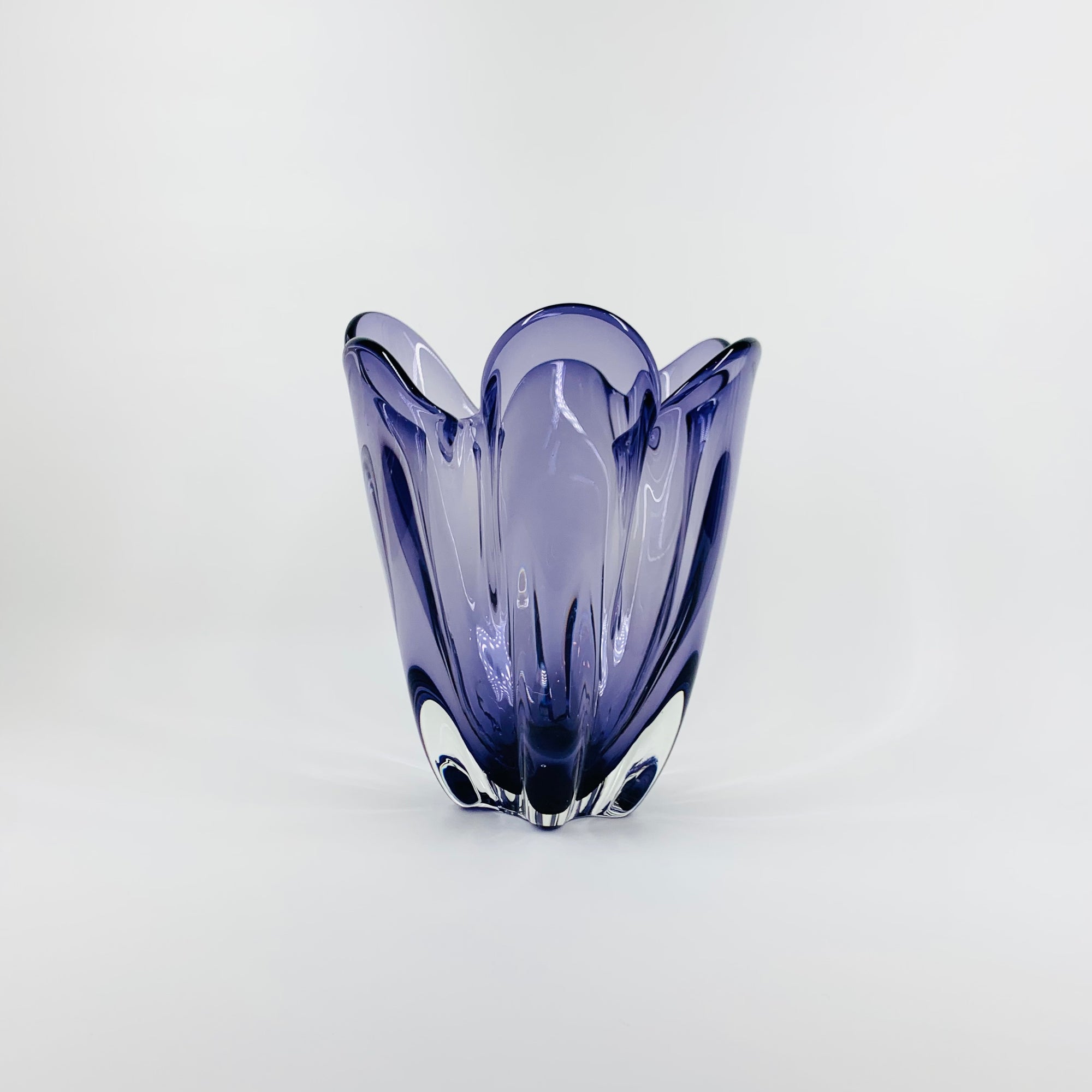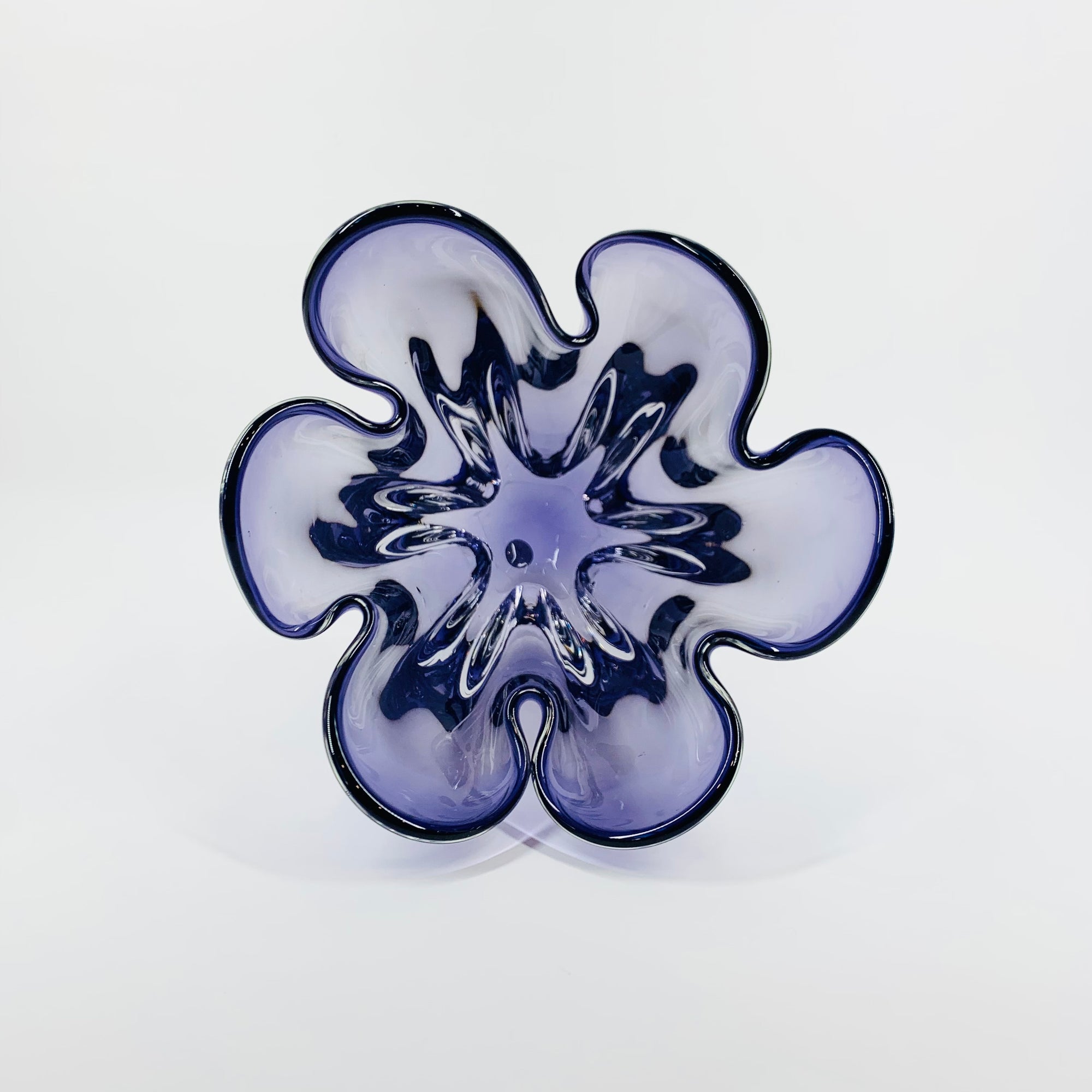 1970s JAPANESE HINERI PURPLE SOMMERSO GLASS HANDKERCHIEF VASE
