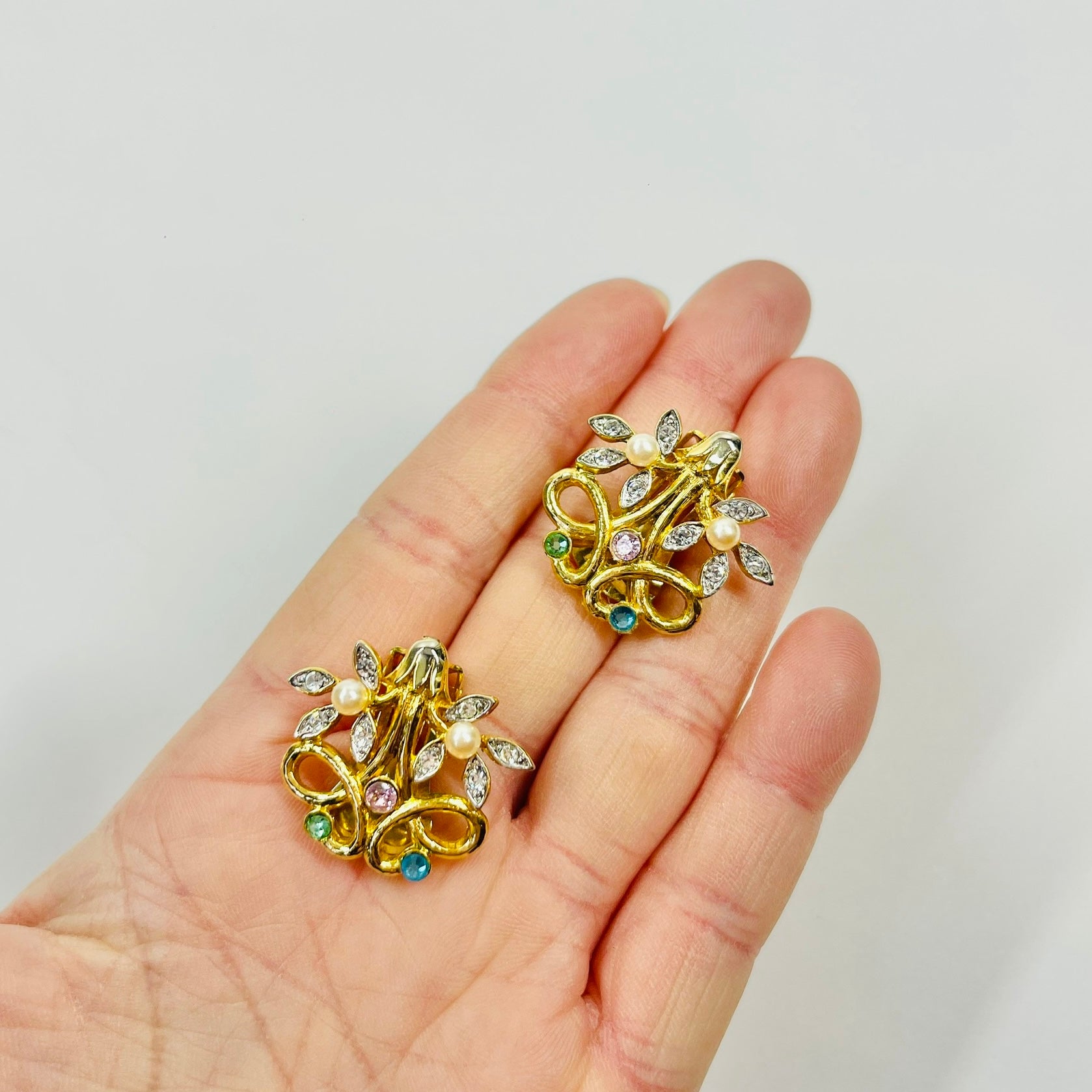 1950s STATEMENT FLOWER TUTTI FRUITTI CLIP ON EARRINGS