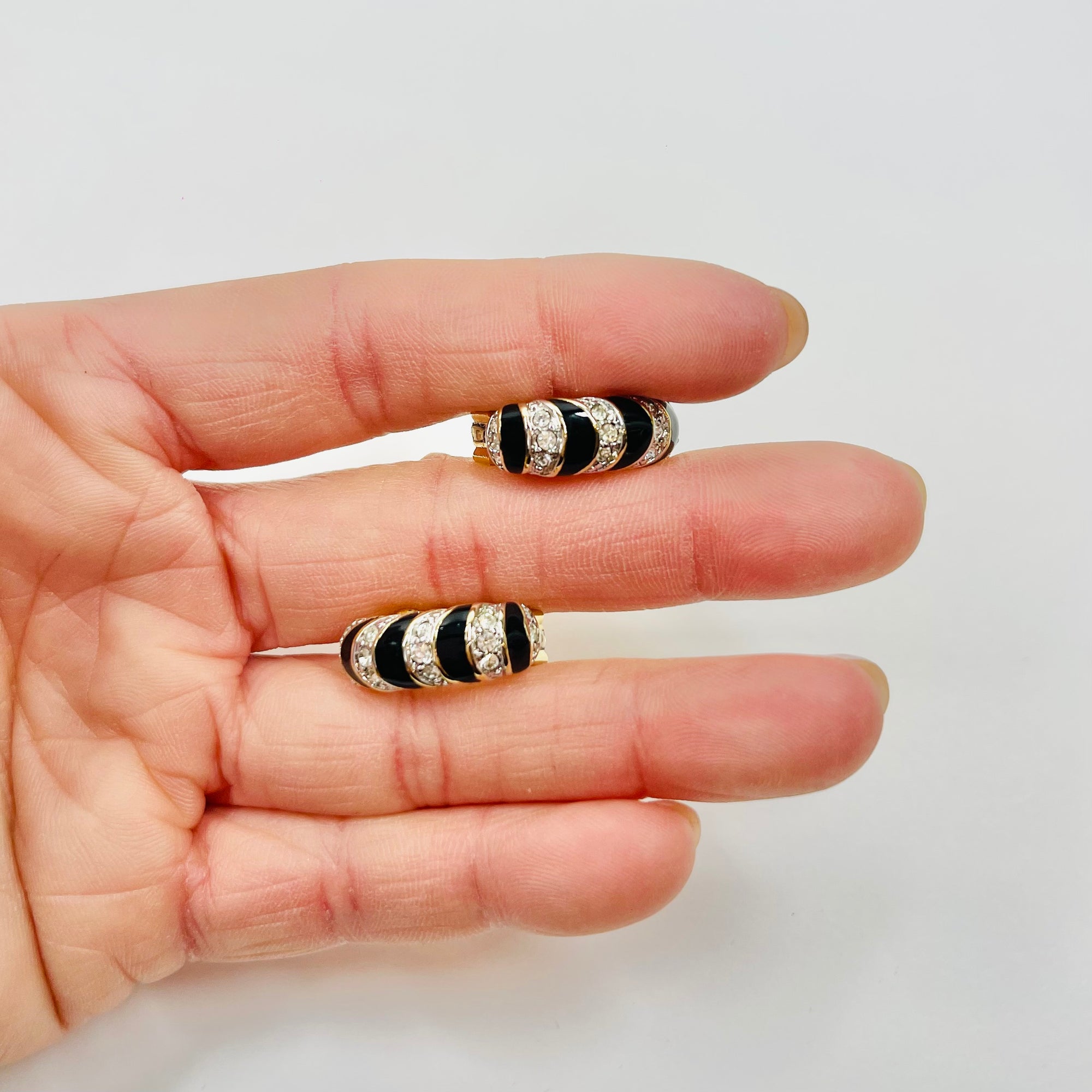 1980s BLACK ZEBRA ENAMEL DIAMANTE CRESCENT HOOPS CLIP ON EARRINGS
