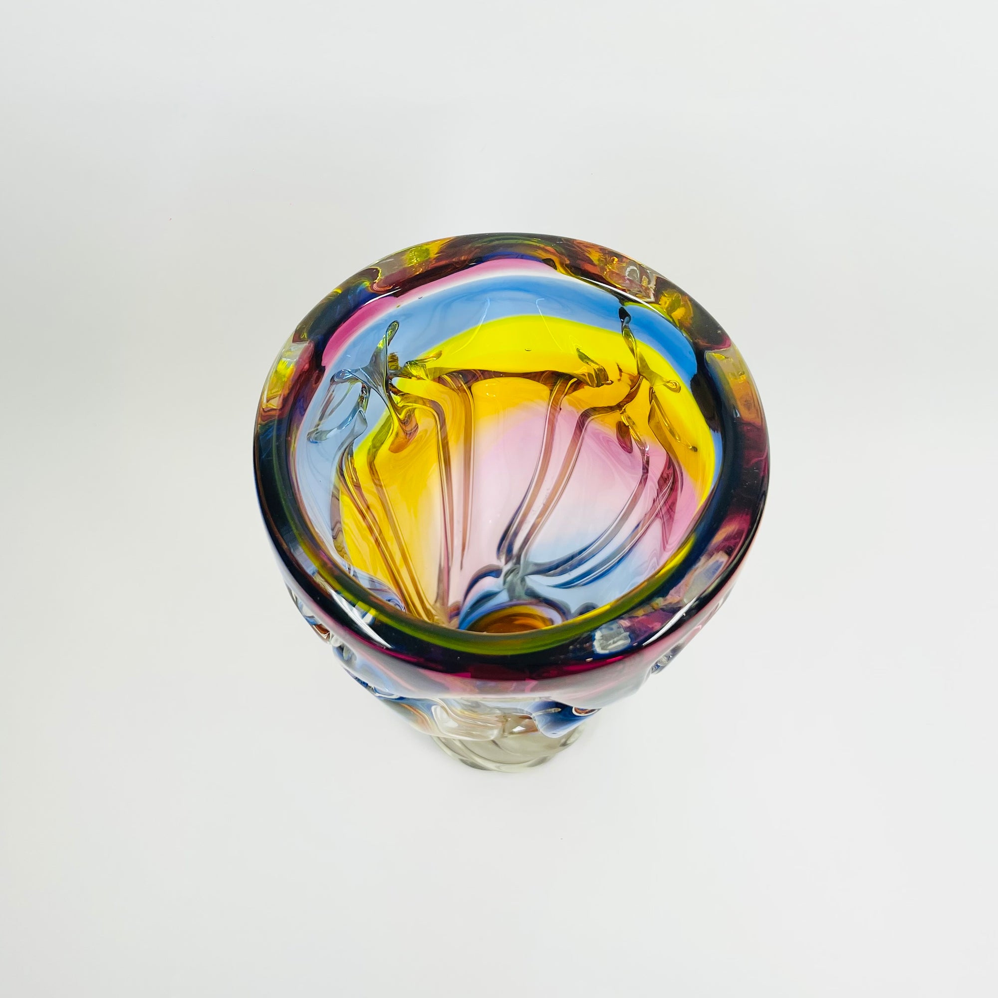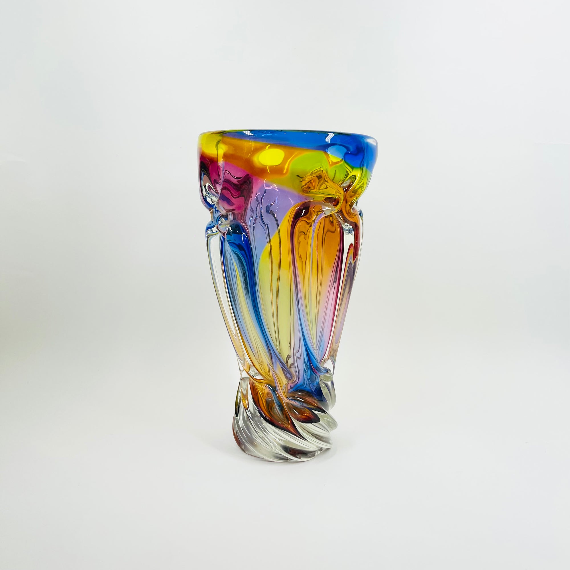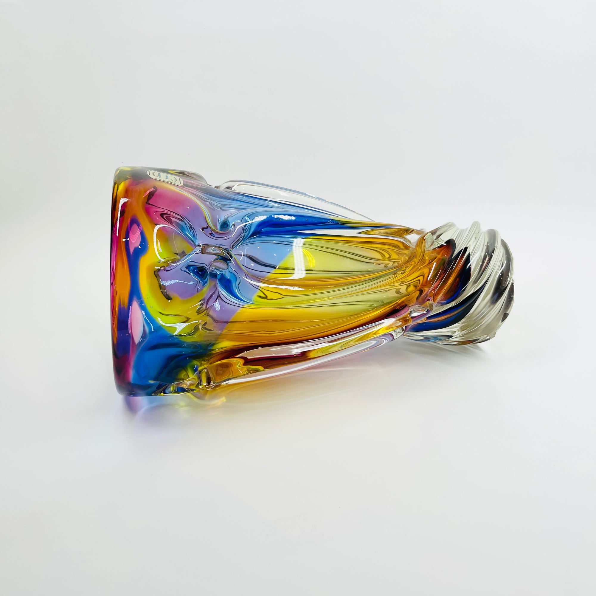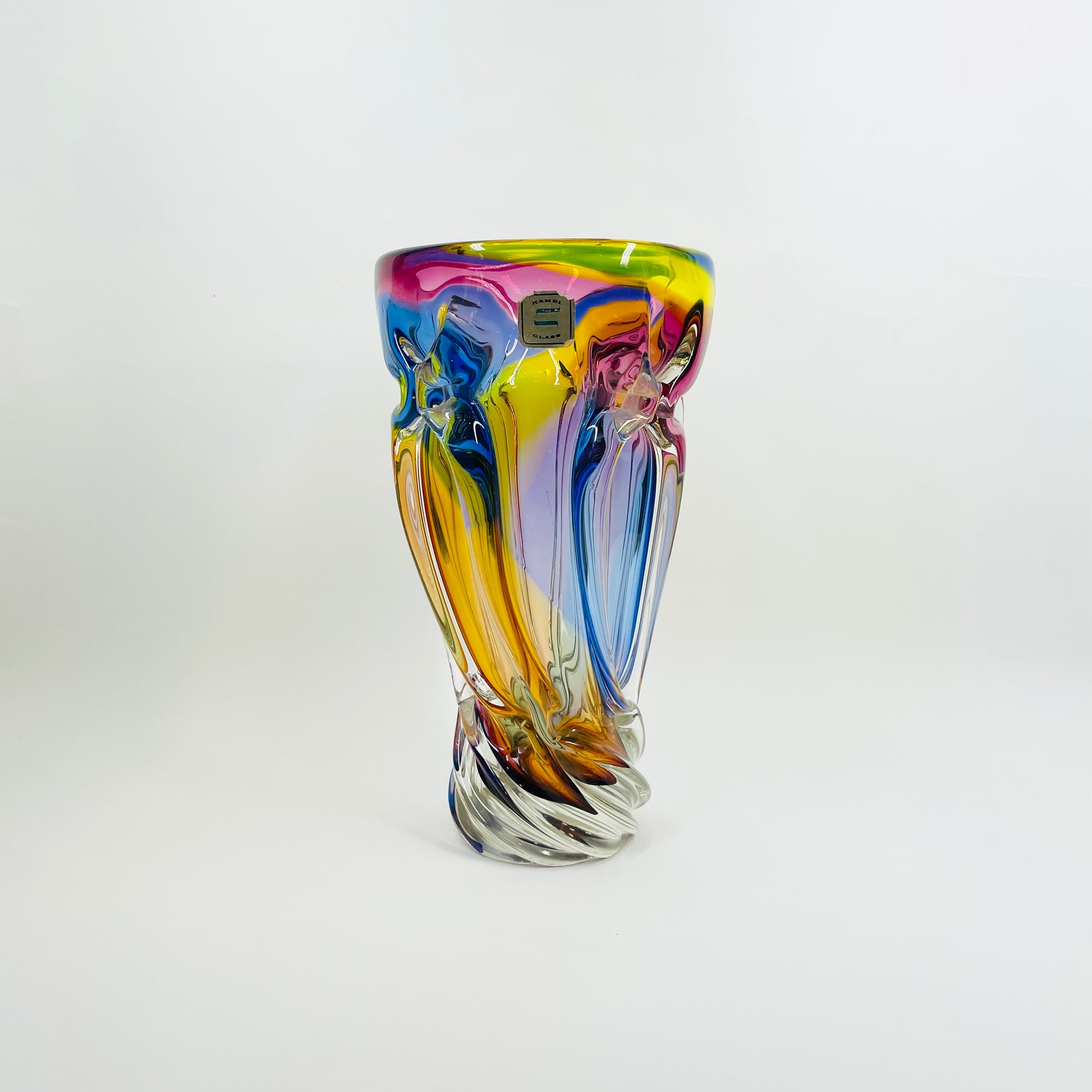 1970s JAPANESE KAMEI HARLEQUIN SOMMERSO GLASS TWIST VASE