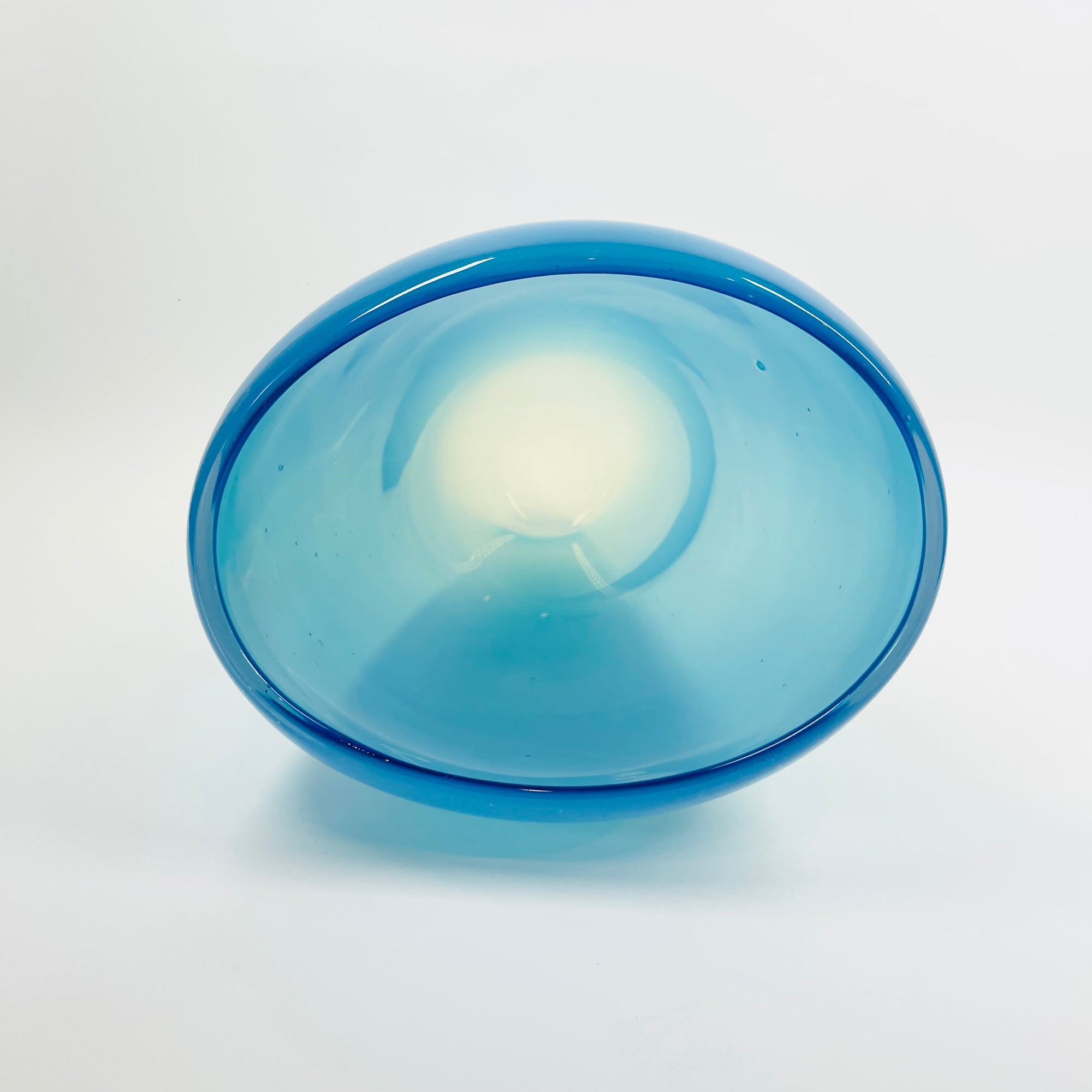 1970s JAPANESE TURQUOISE BLUE SOMMERSO GLASS FLAME HANDKERCHIEF VASE/BOWL