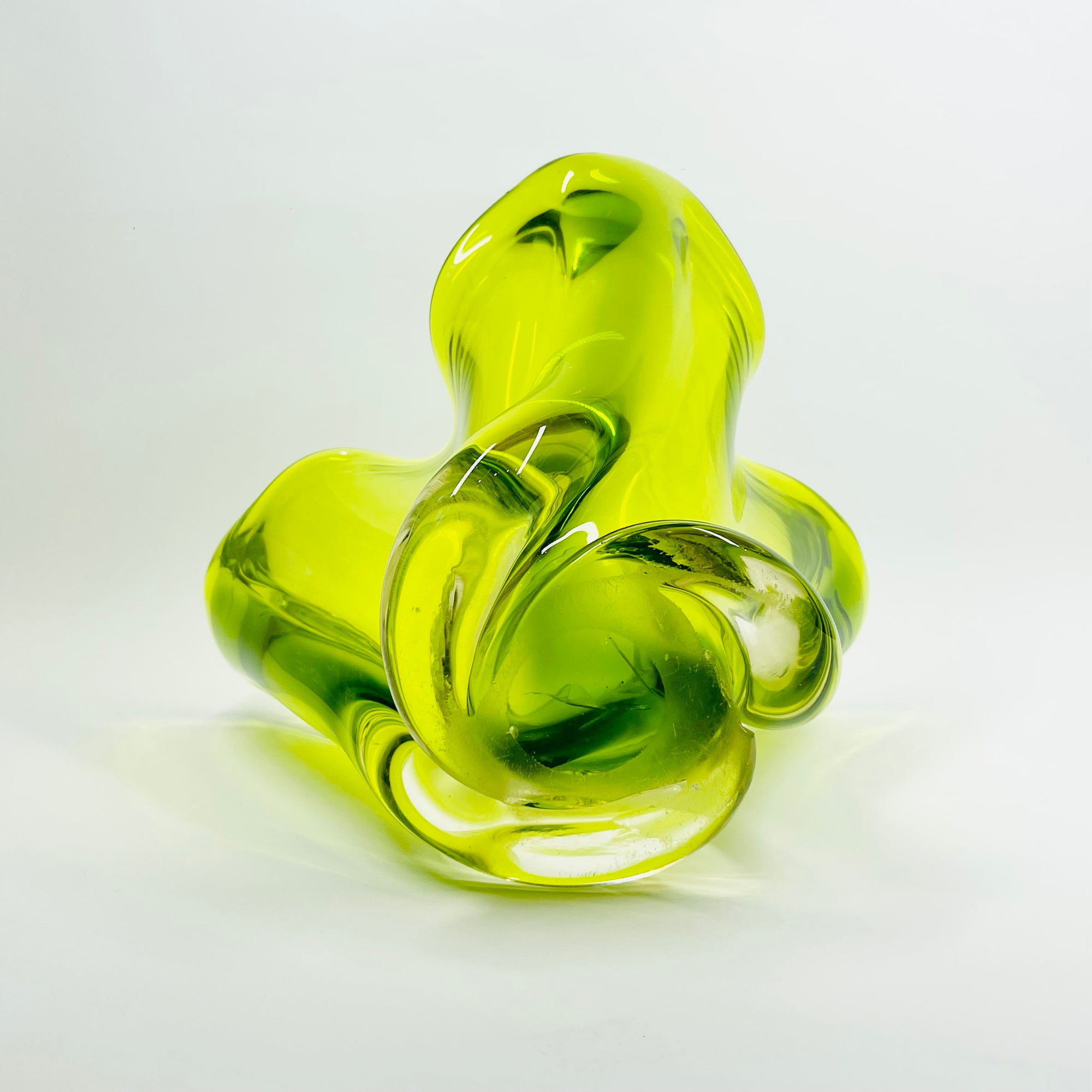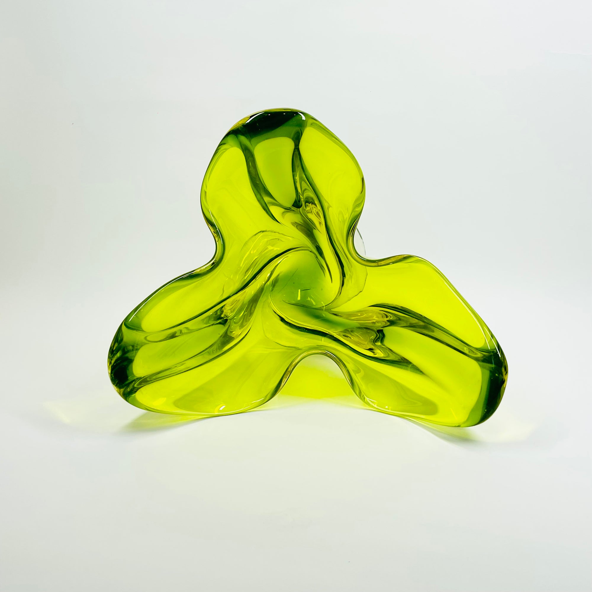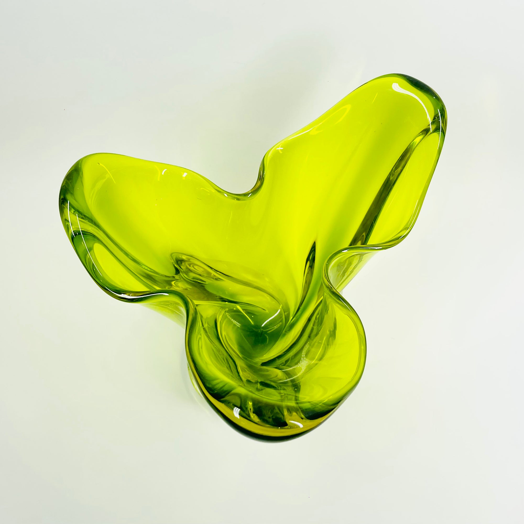 1970s JAPANESE GREEN SOMMERSO GLASS HANDKERCHIEF VASE/BOWL