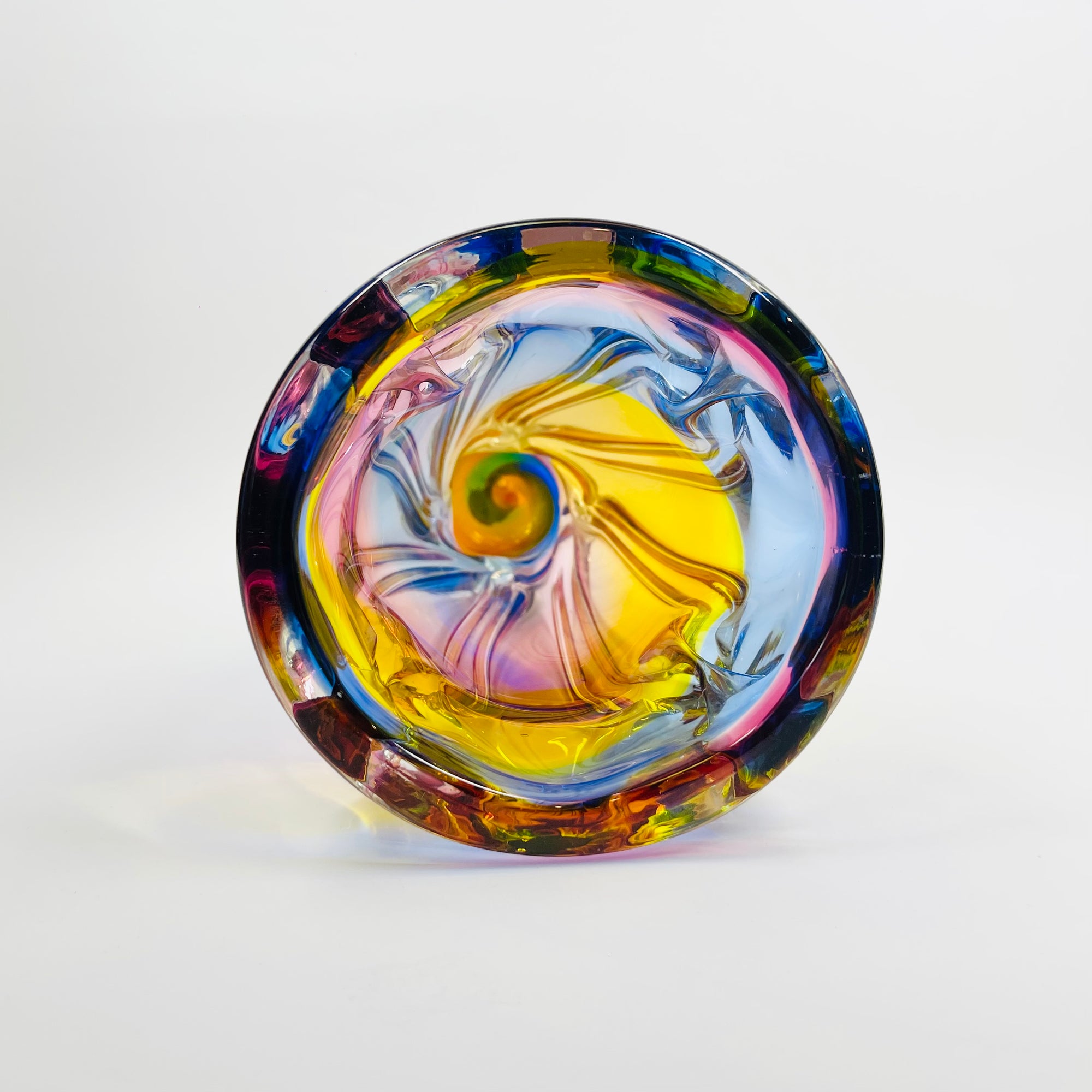1970s JAPANESE GREEN SOMMERSO GLASS FLAME BOWL