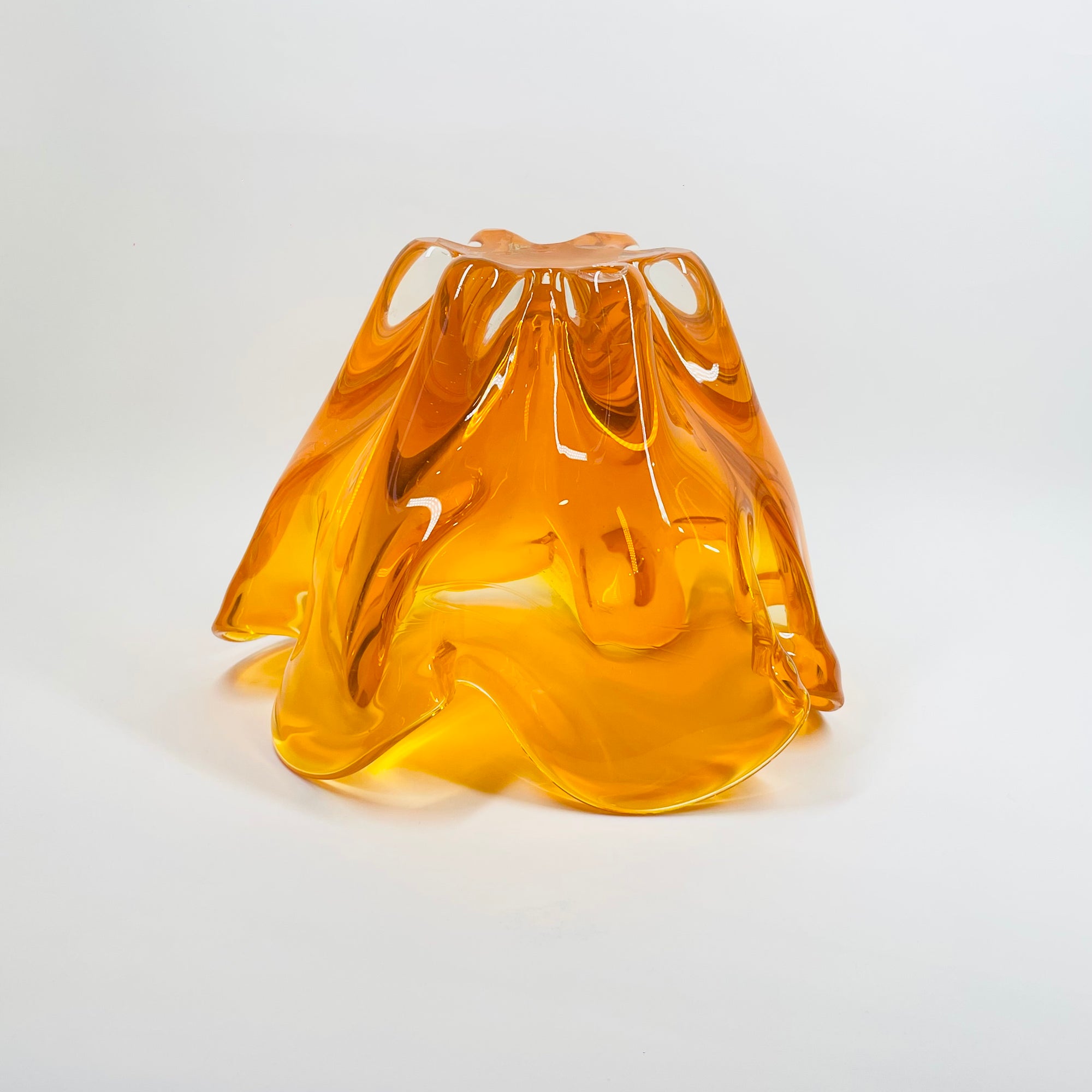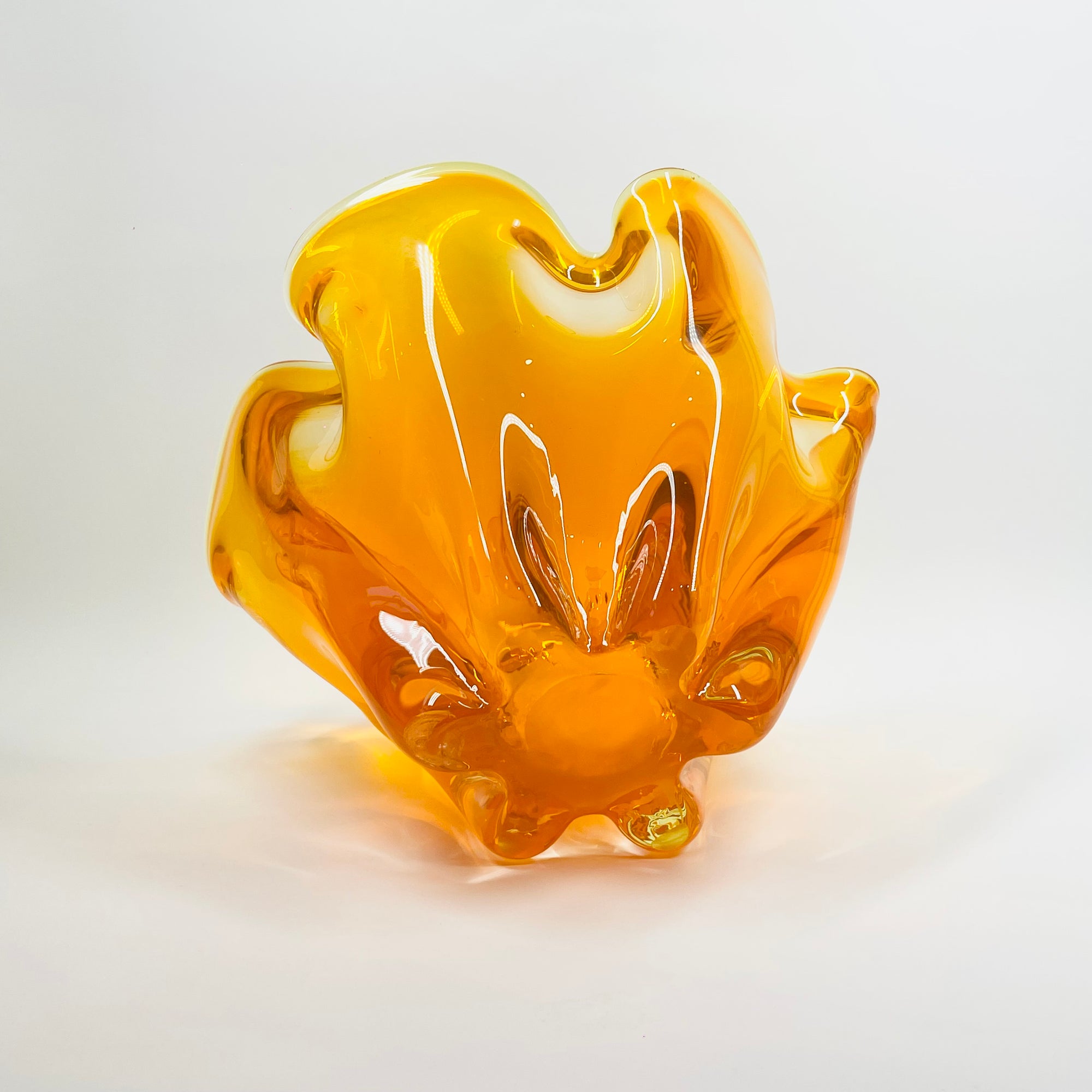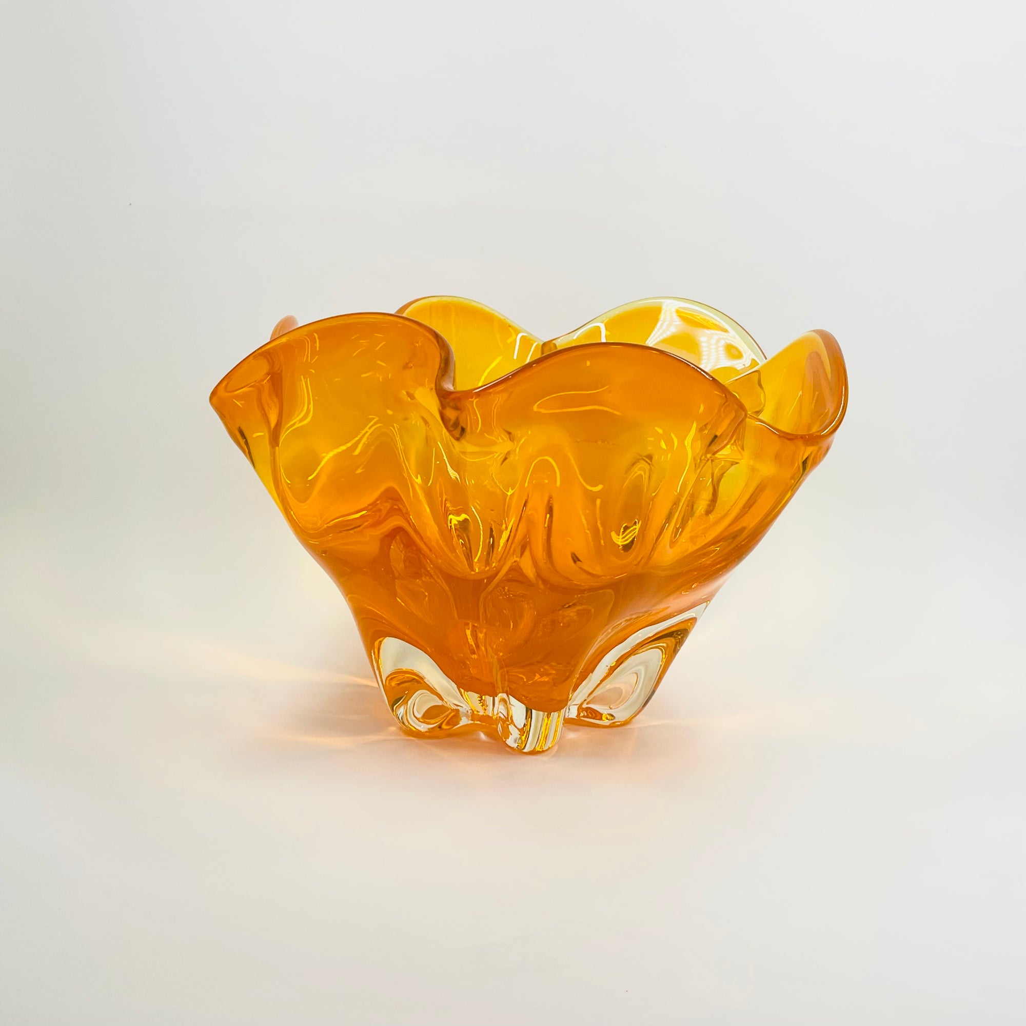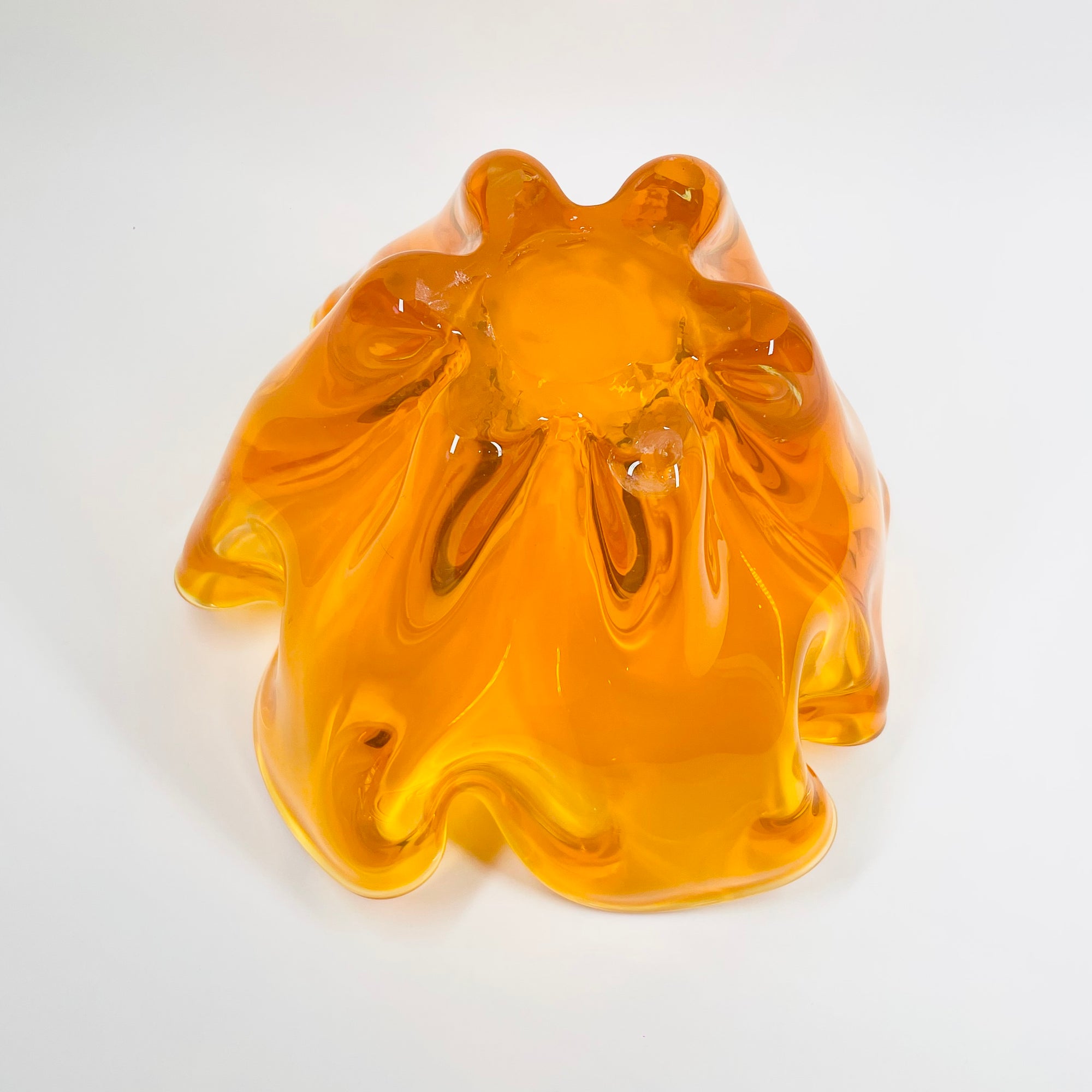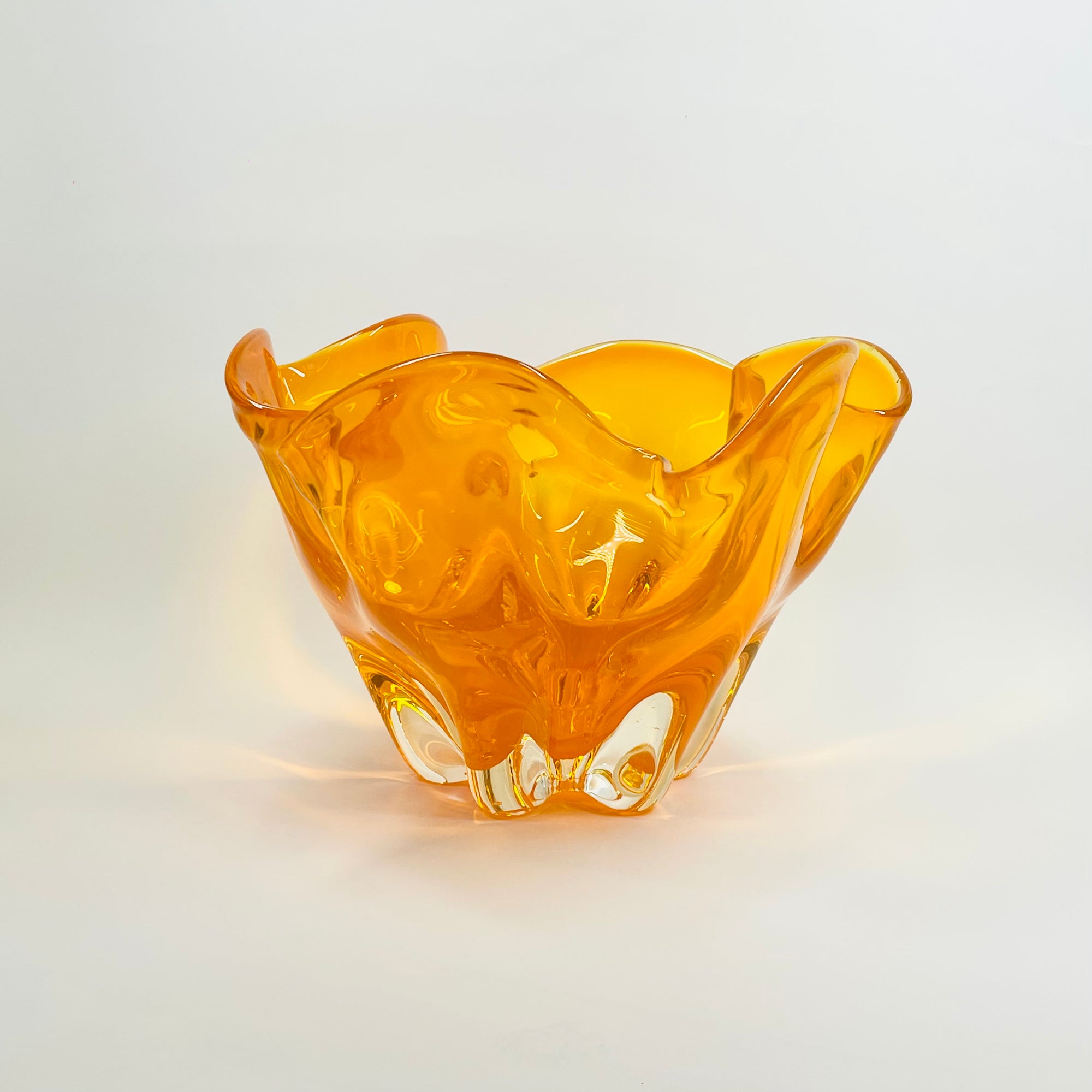 1970s JAPANESE MANDARIN/ORANGE SOMMERSO GLASS HANDKERCHIEF VASE/BOWL