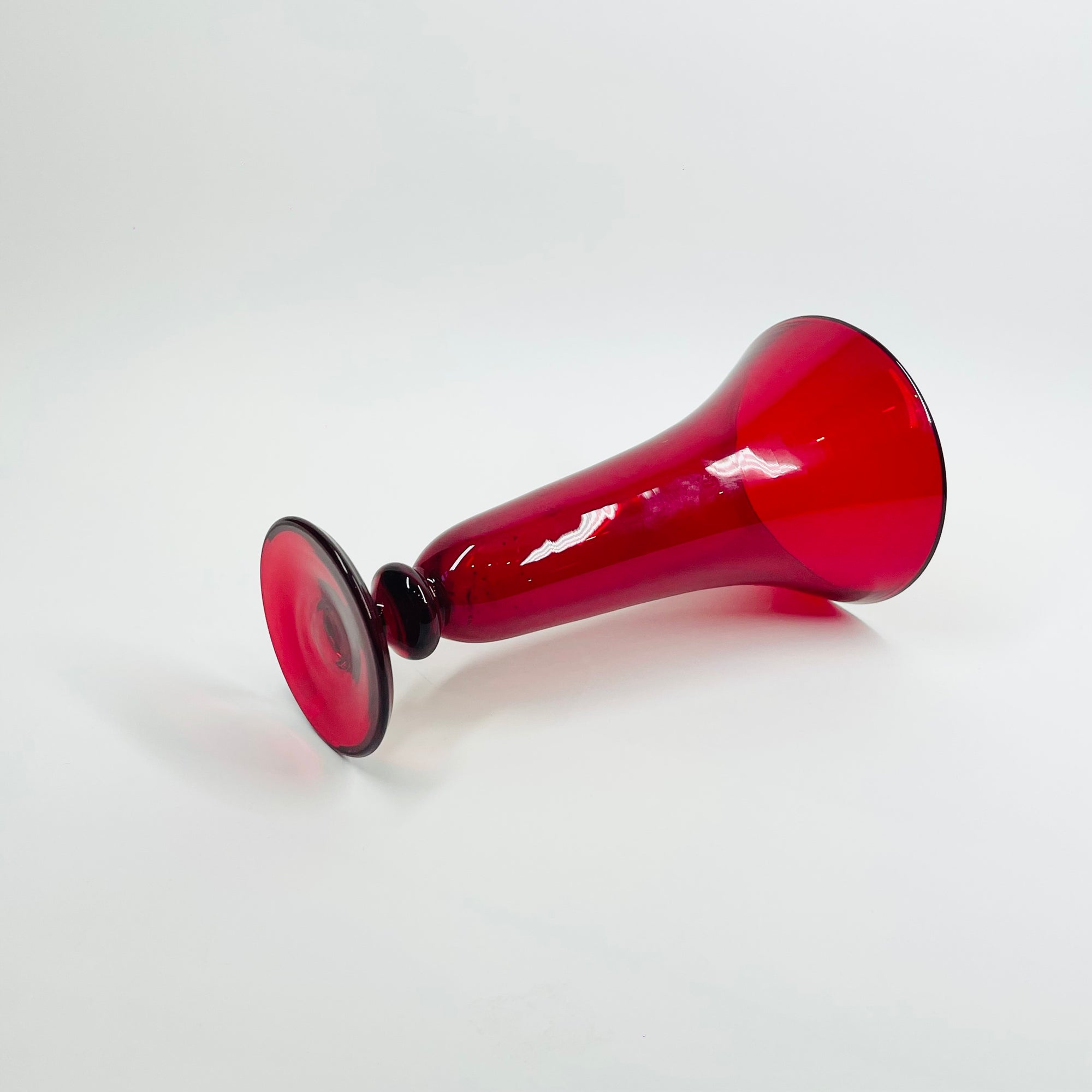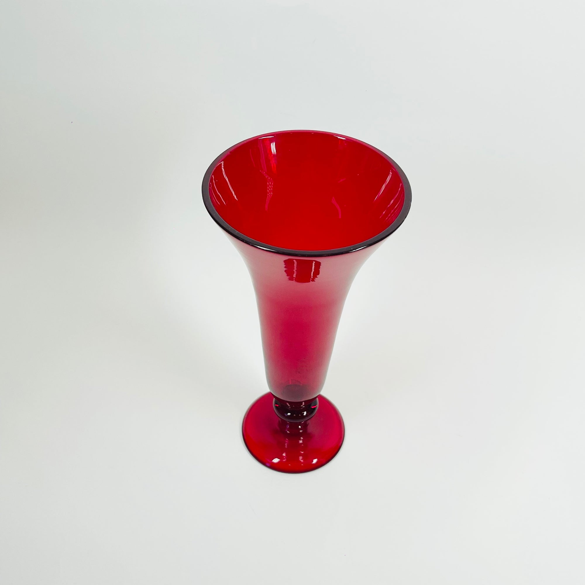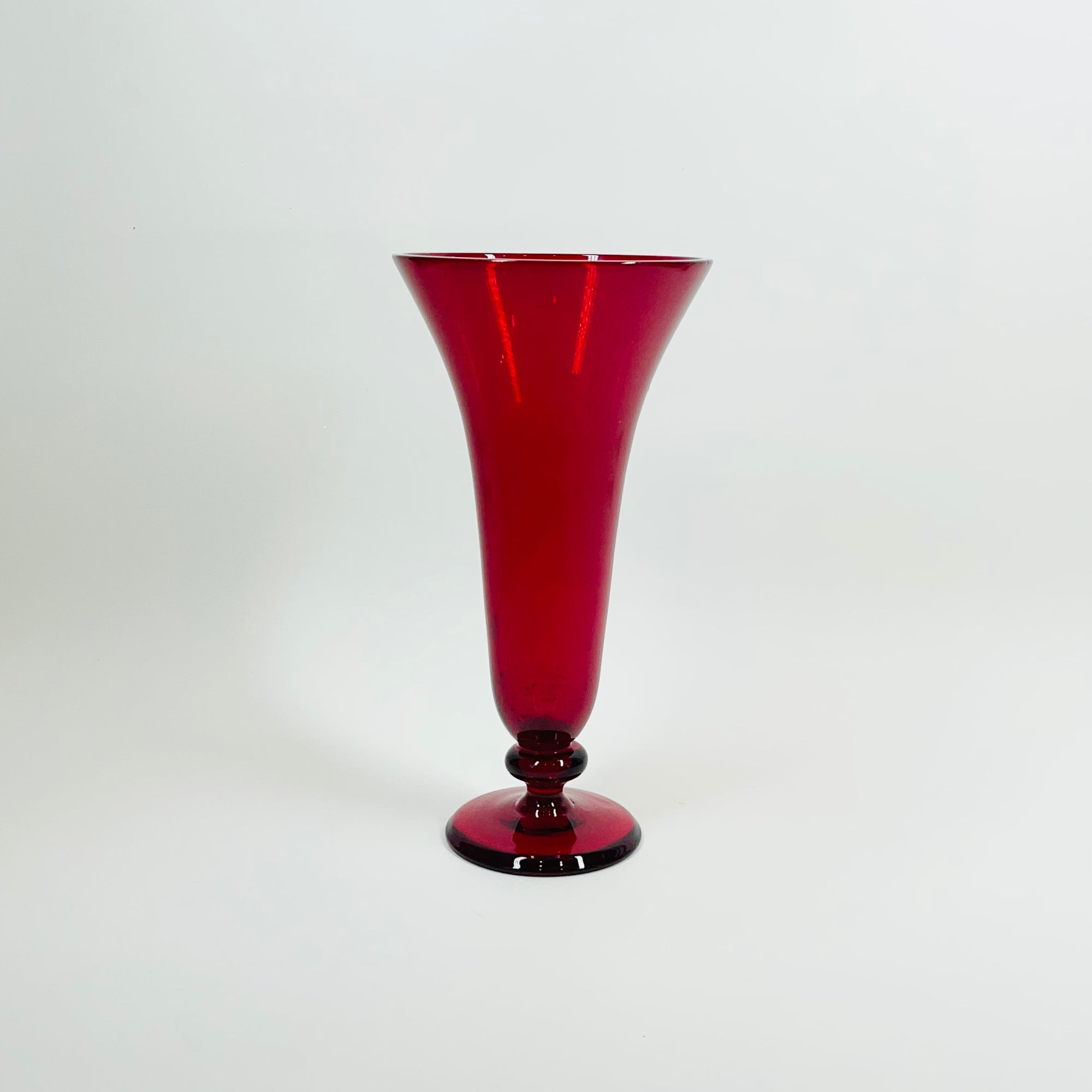 ANTIQUE ITALIAN MURANO RUBY RED GLASS FOOTED POSY VASE