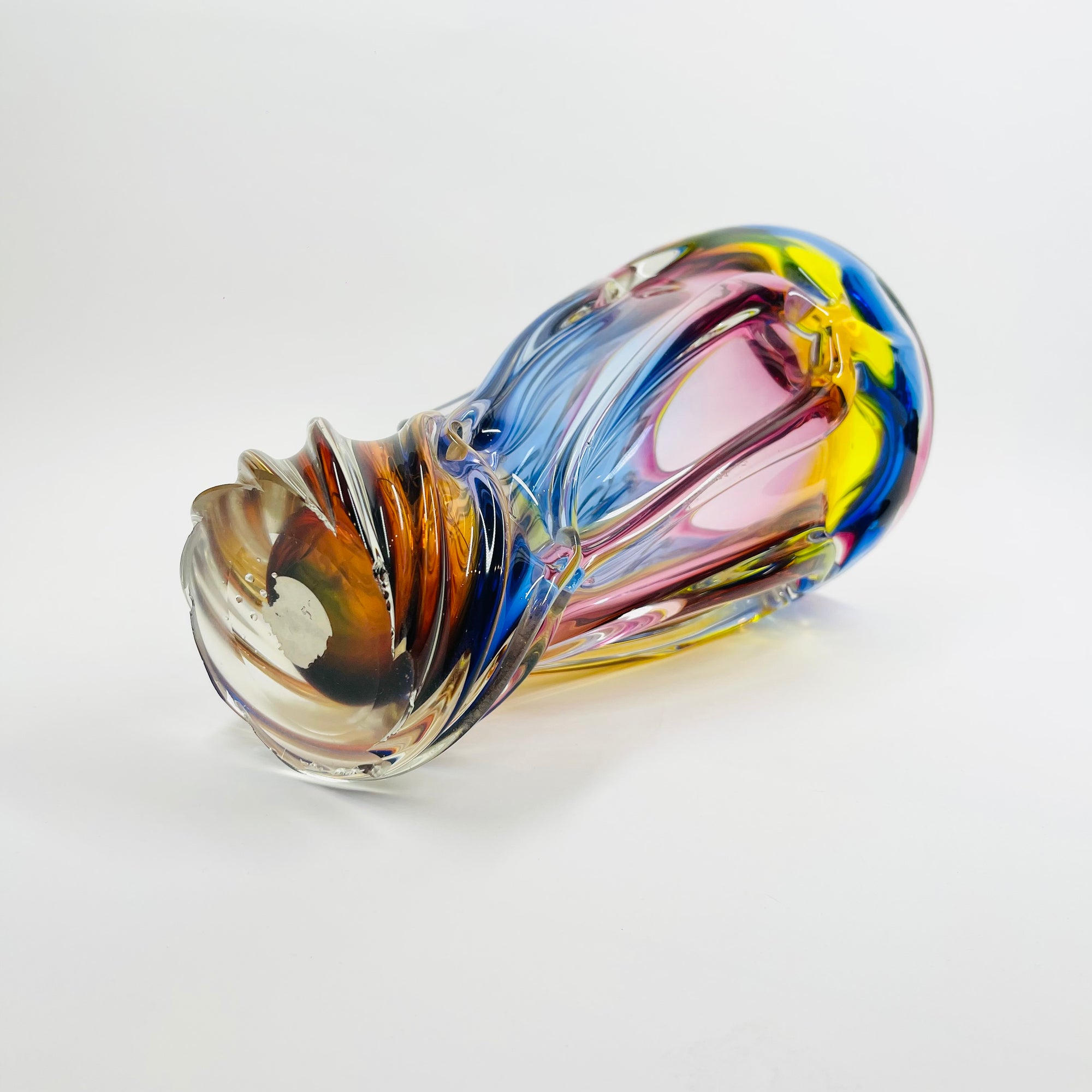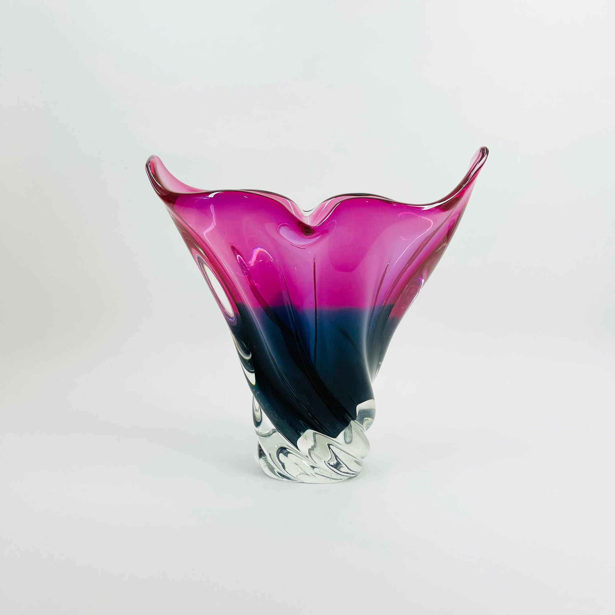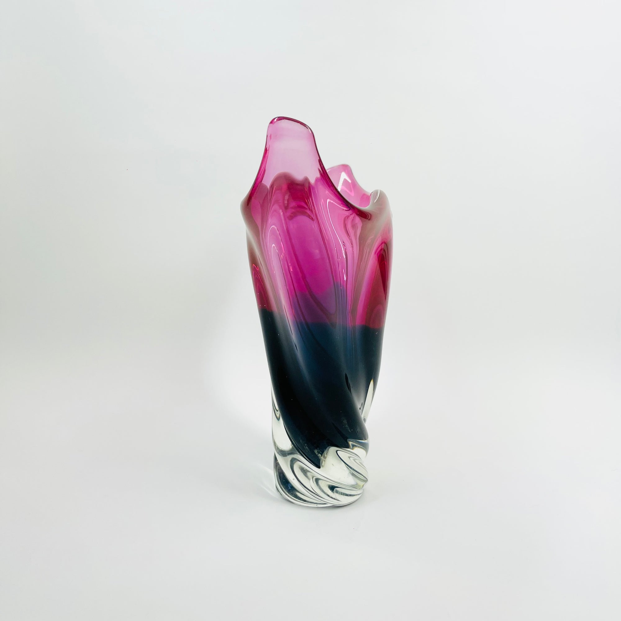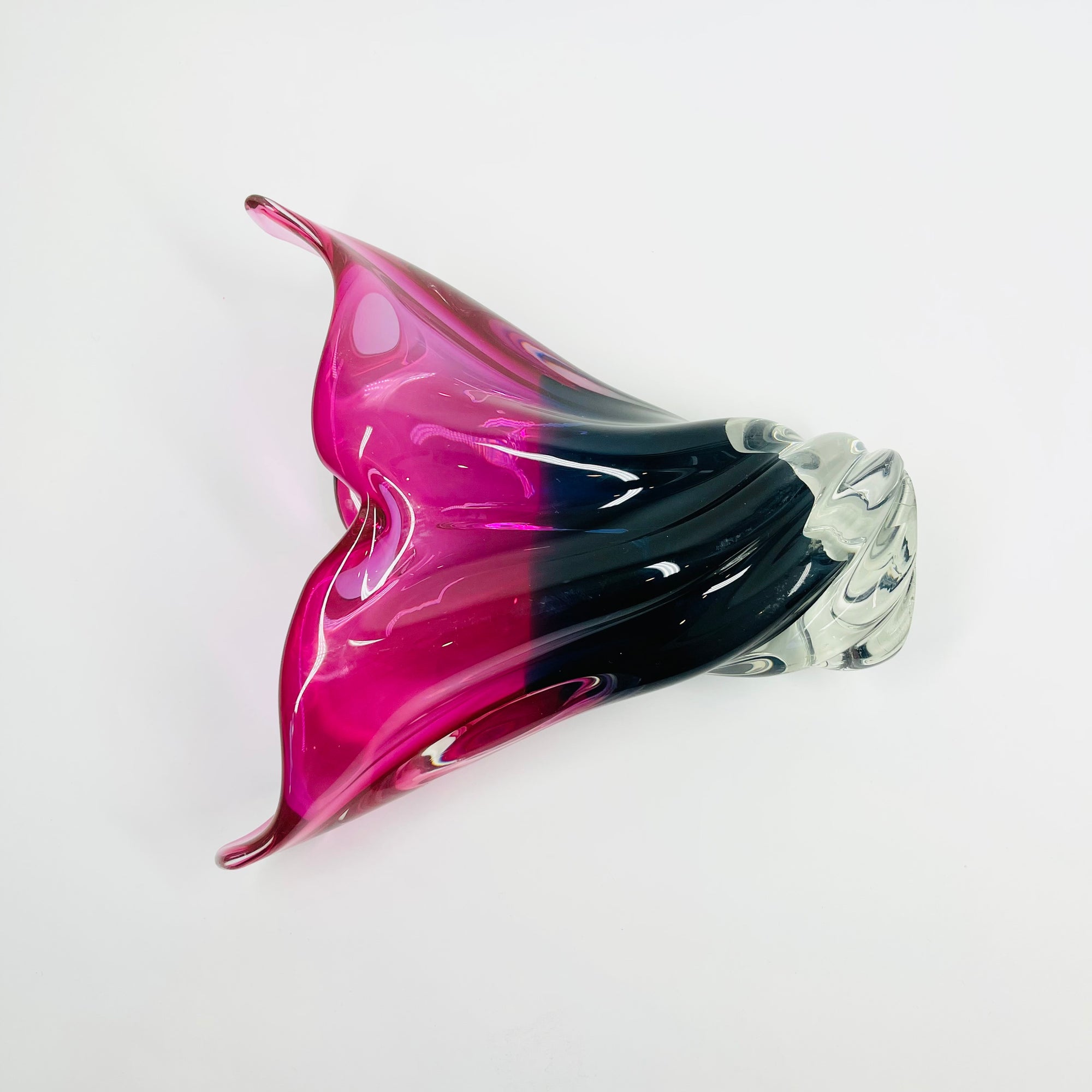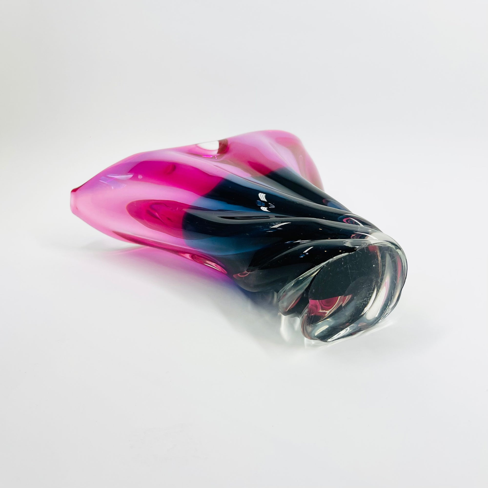 1970s JAPANESE PINK TEAL BLUE SOMMERSO GLASS FISHTAIL VASE