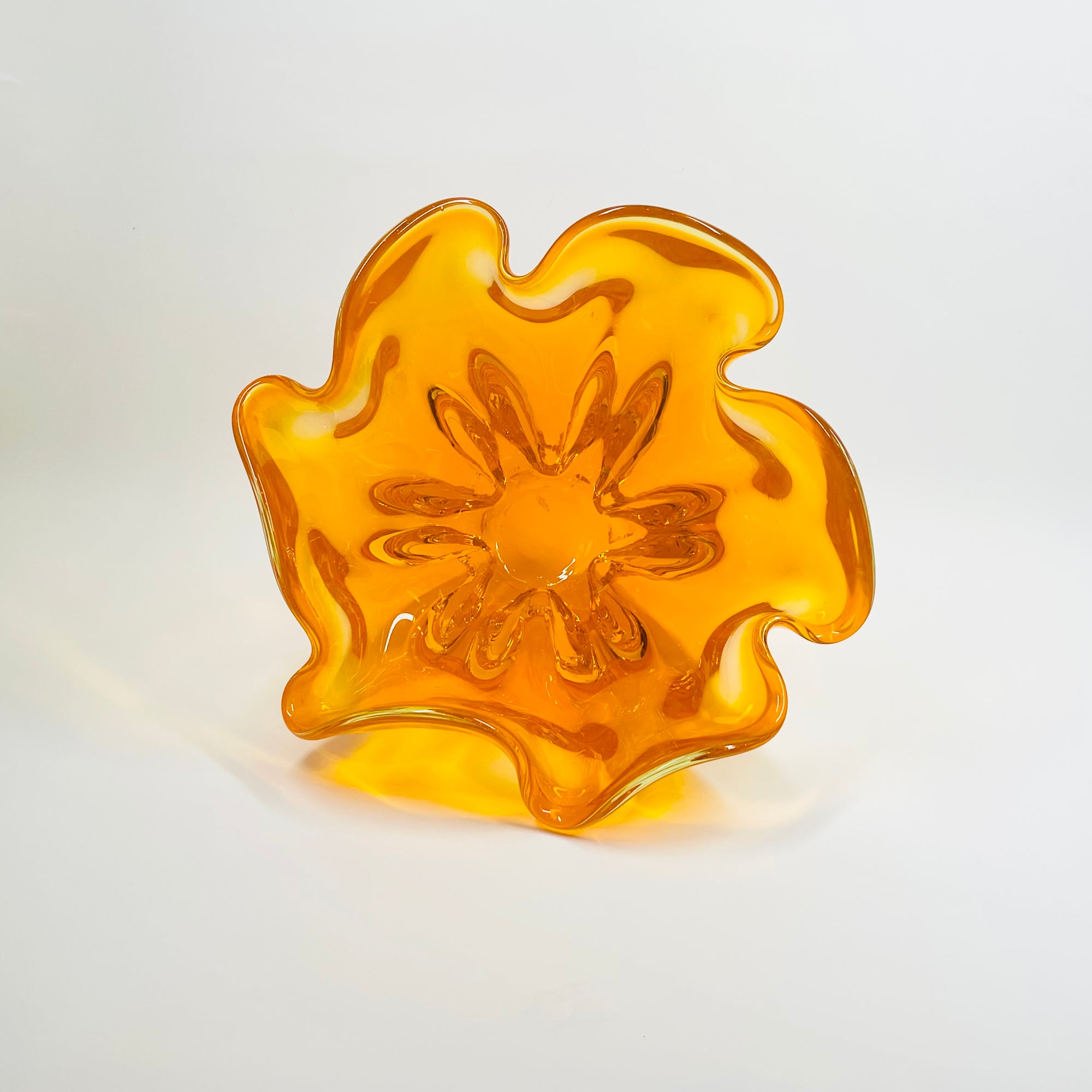 1970s JAPANESE MANDARIN ORANGE GLASS FLOWER BOWL