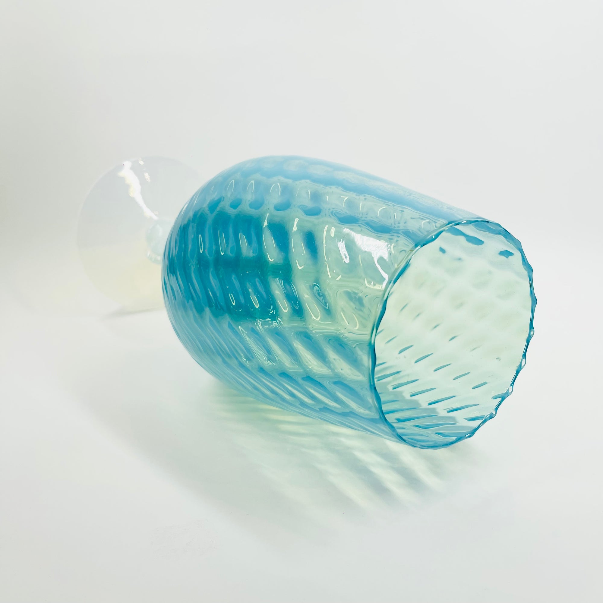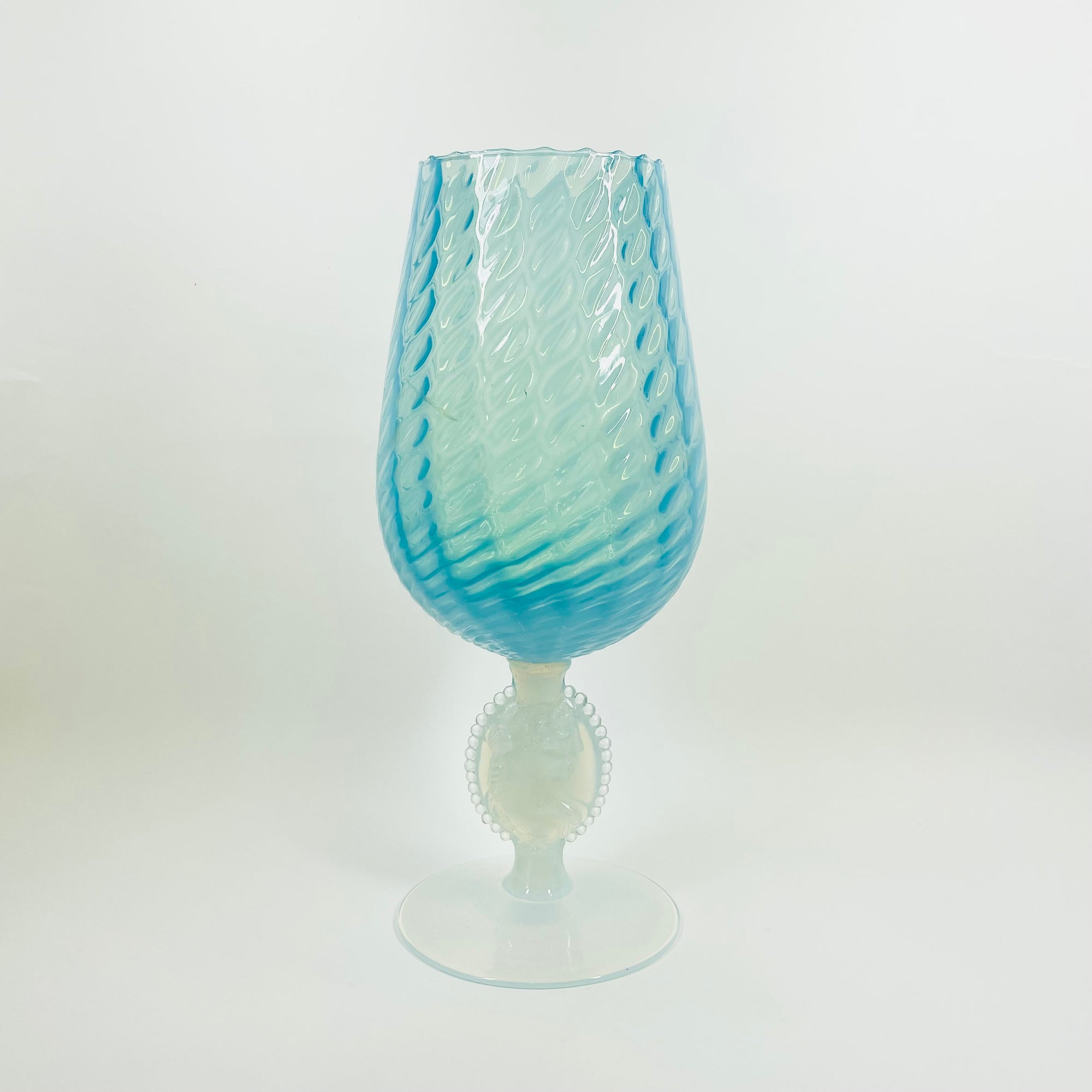 1940s EMPOLI BLUE OPALESCENT OPTICAL GLASS VASE