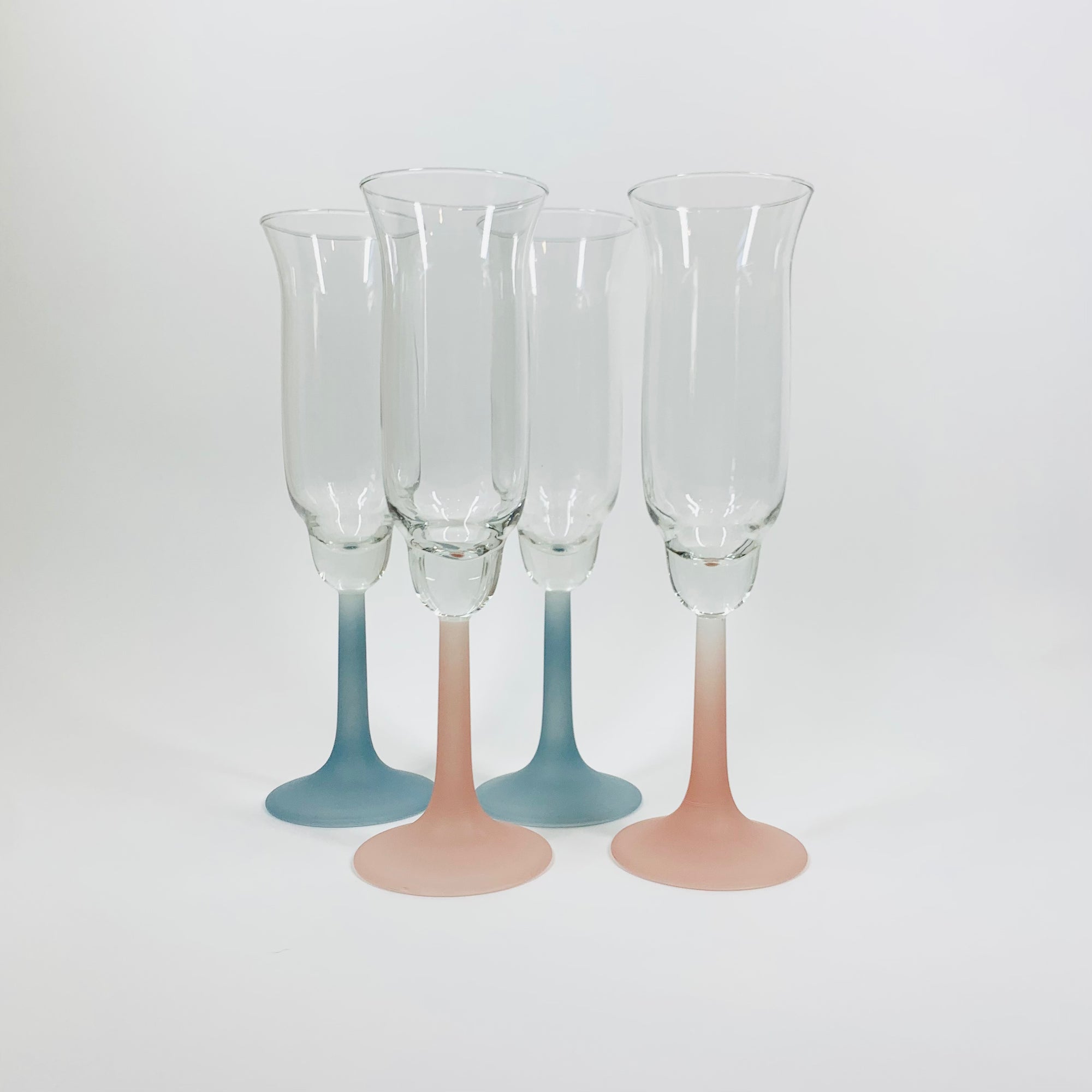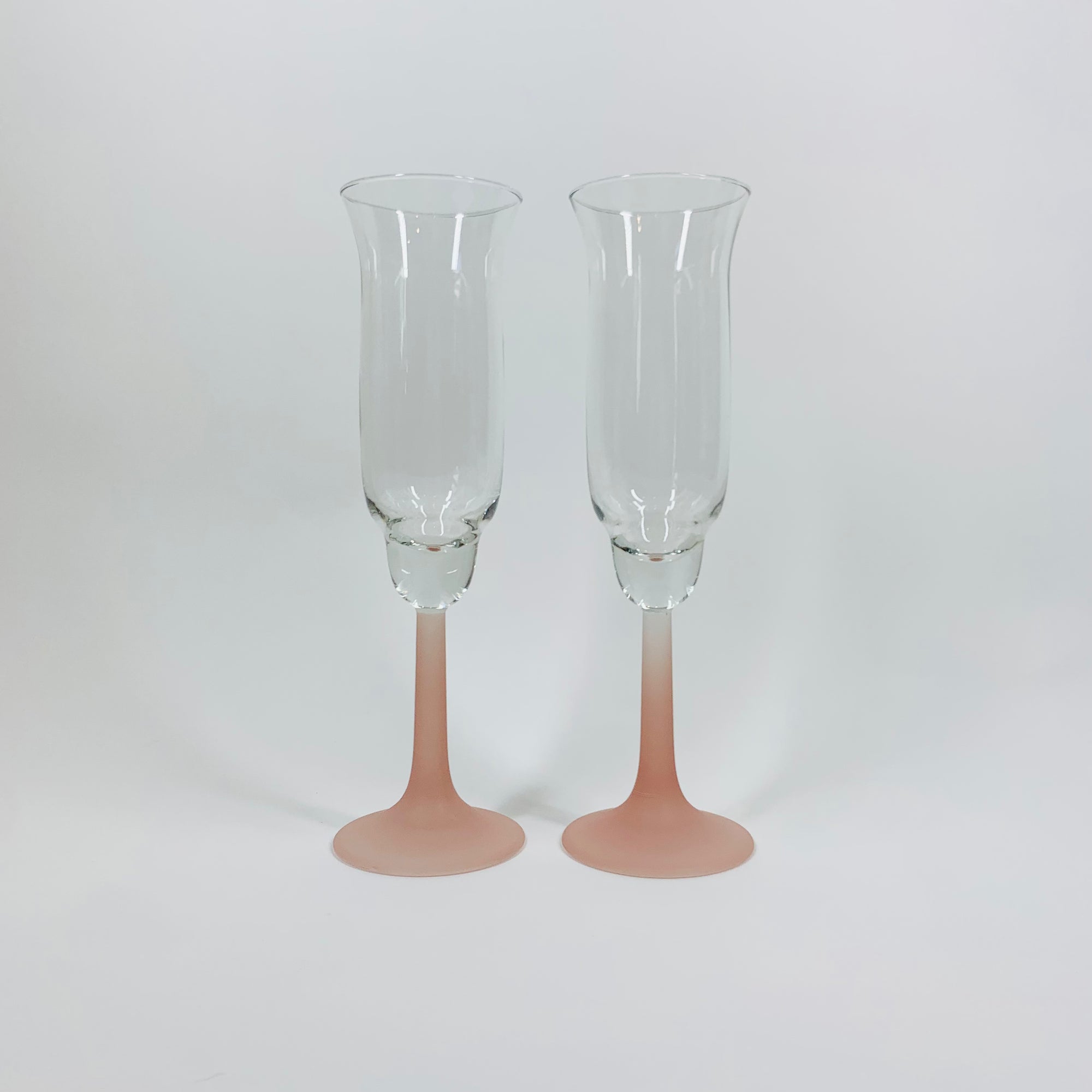 60s SATIN GLASS STEM CHAMPAGNE FLUTES