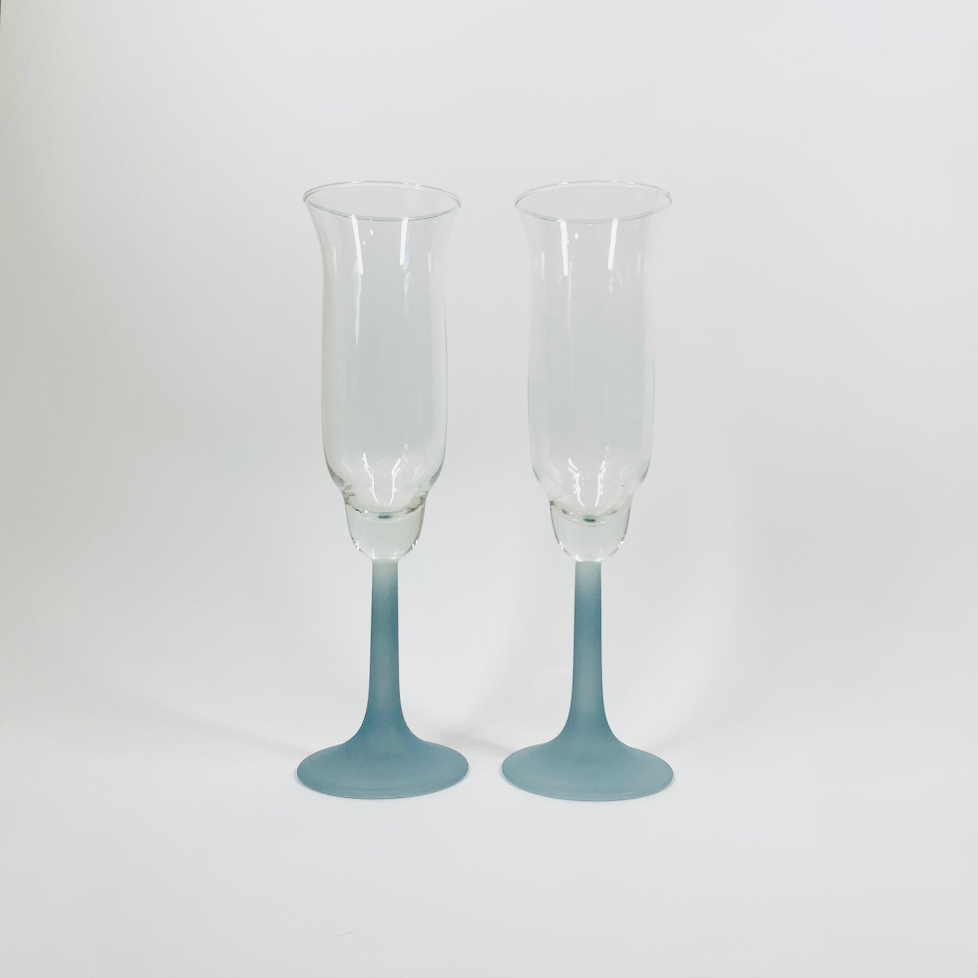 1980s FRANCE DURAND FROSTED CRYSTAL CHAMPAGNE FLUTES
