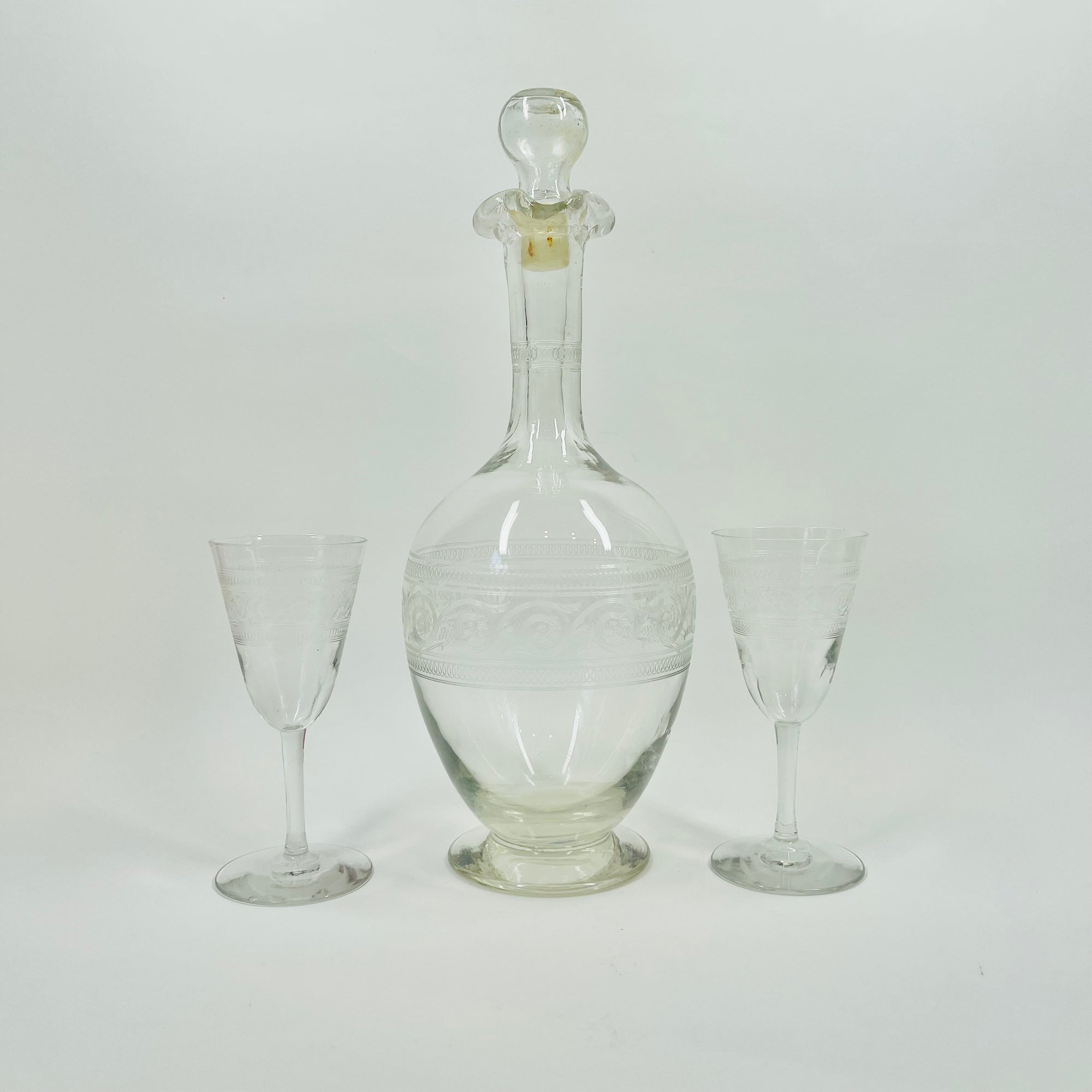 ANTIQUE VICTORIAN ETCHED GLASS DECANTER SET
