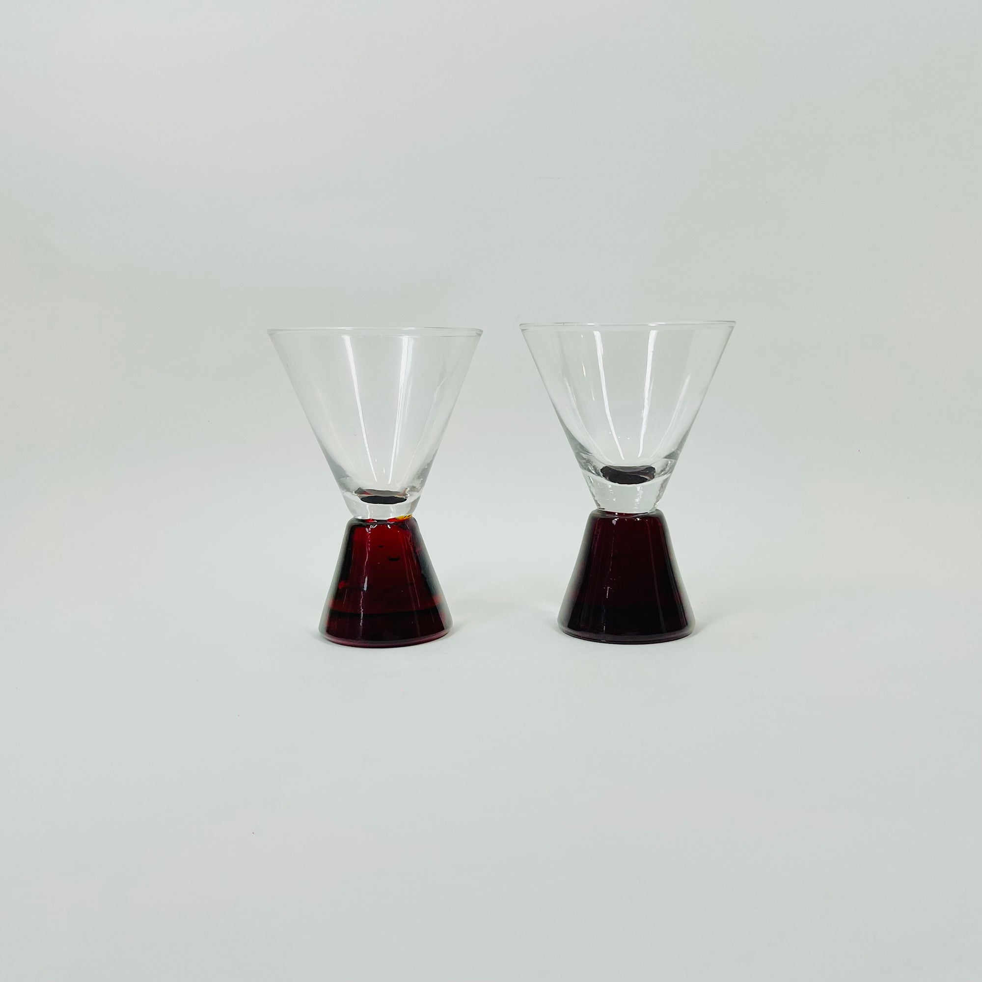 1950s ETCHED STAR PURPLE BASE SHERRY/PORT GLASSES