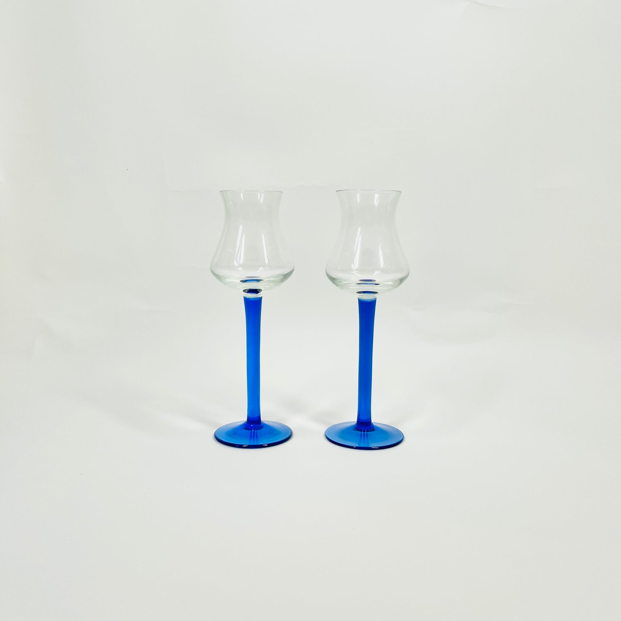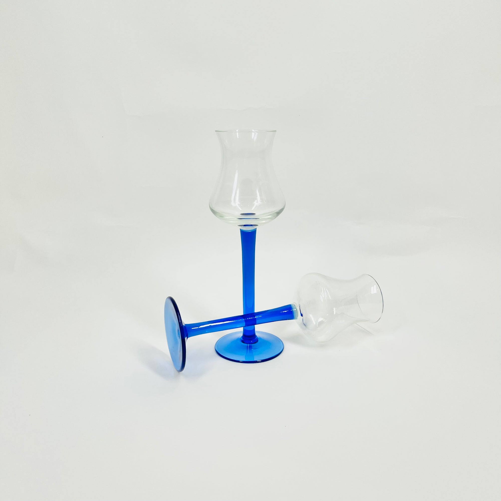 1960s FRENCH LUMINARC COBALT BLUE STEM LIQUEUR GLASSES