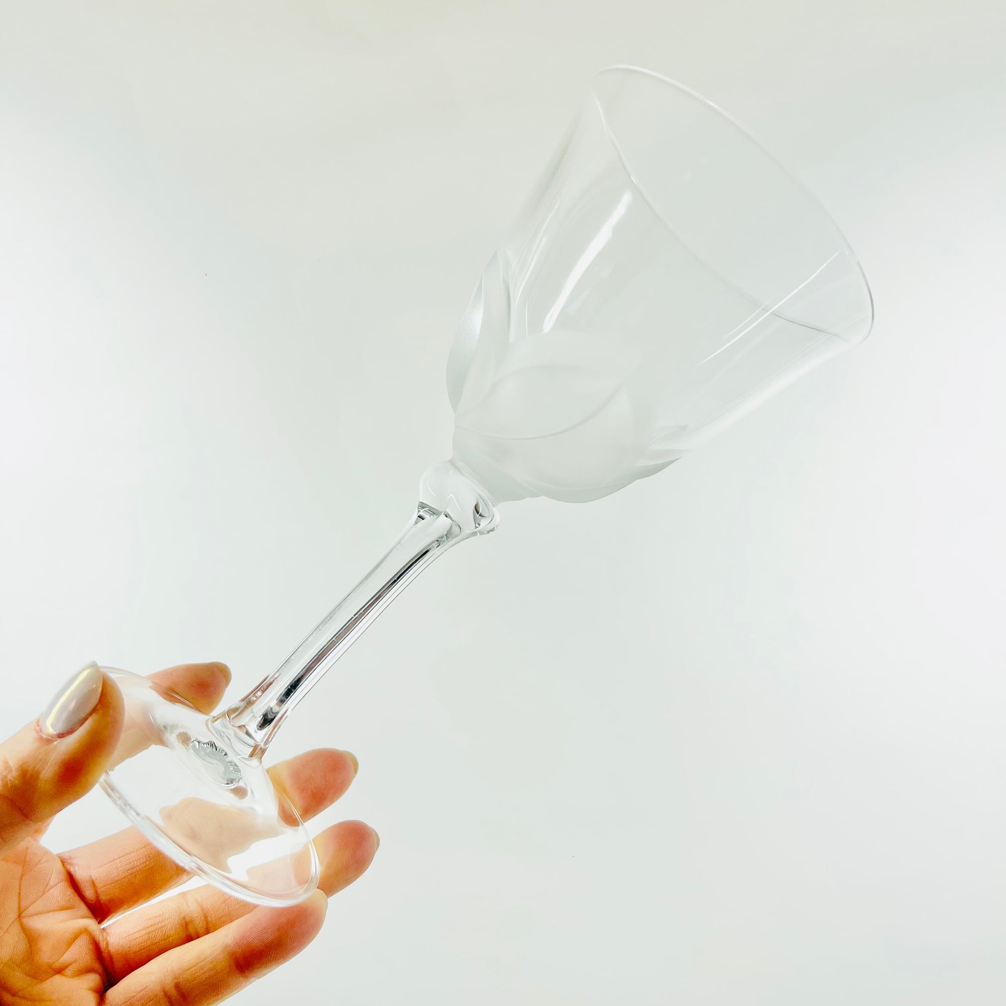 Vintage French J.G Durand cut crystal wine glasses with frosted flower decor