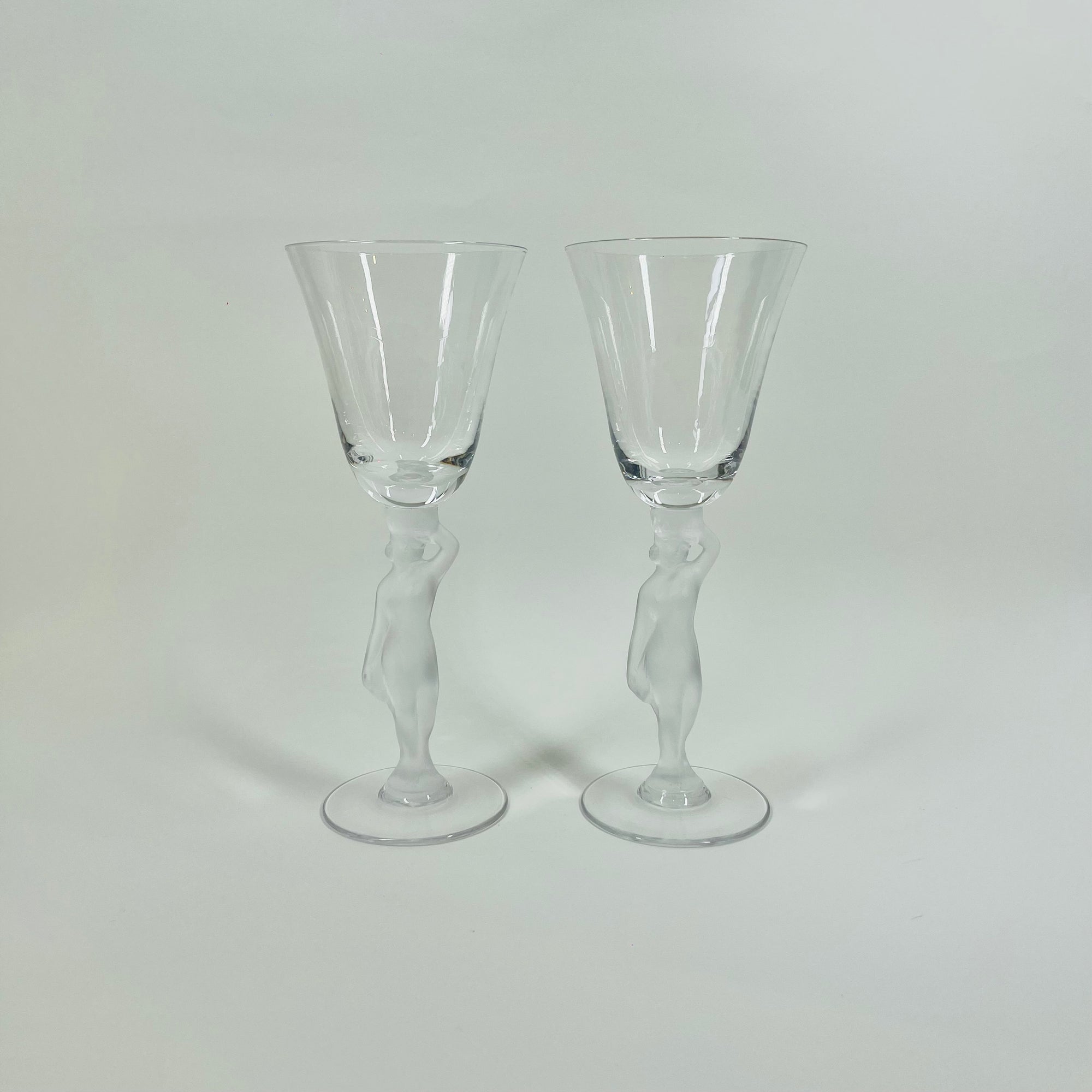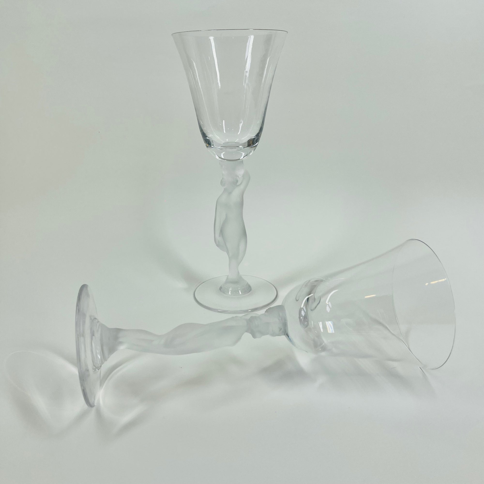 ANTIQUE ART DECO BAYEL BACCHANTE NUDE STEM LIQUEUR GLASSES