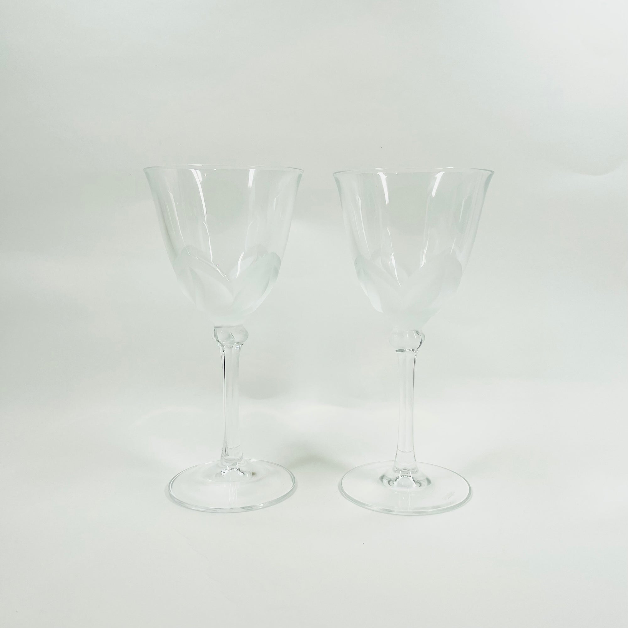 1980s FRANCE DURAND FROSTED CRYSTAL WHITE WINE GLASSES