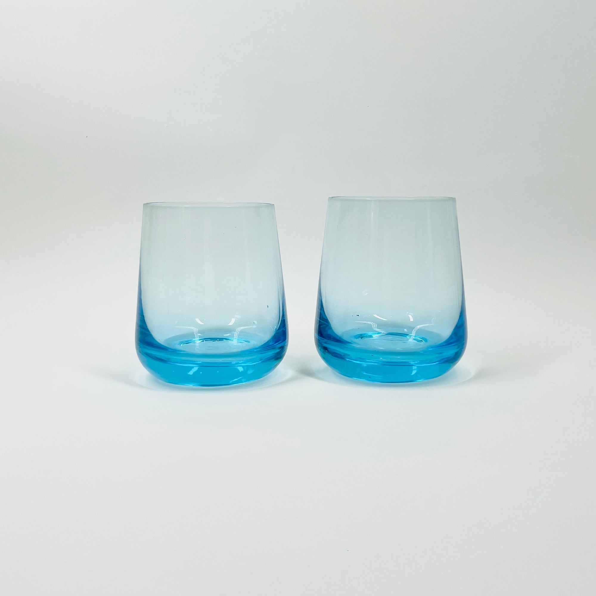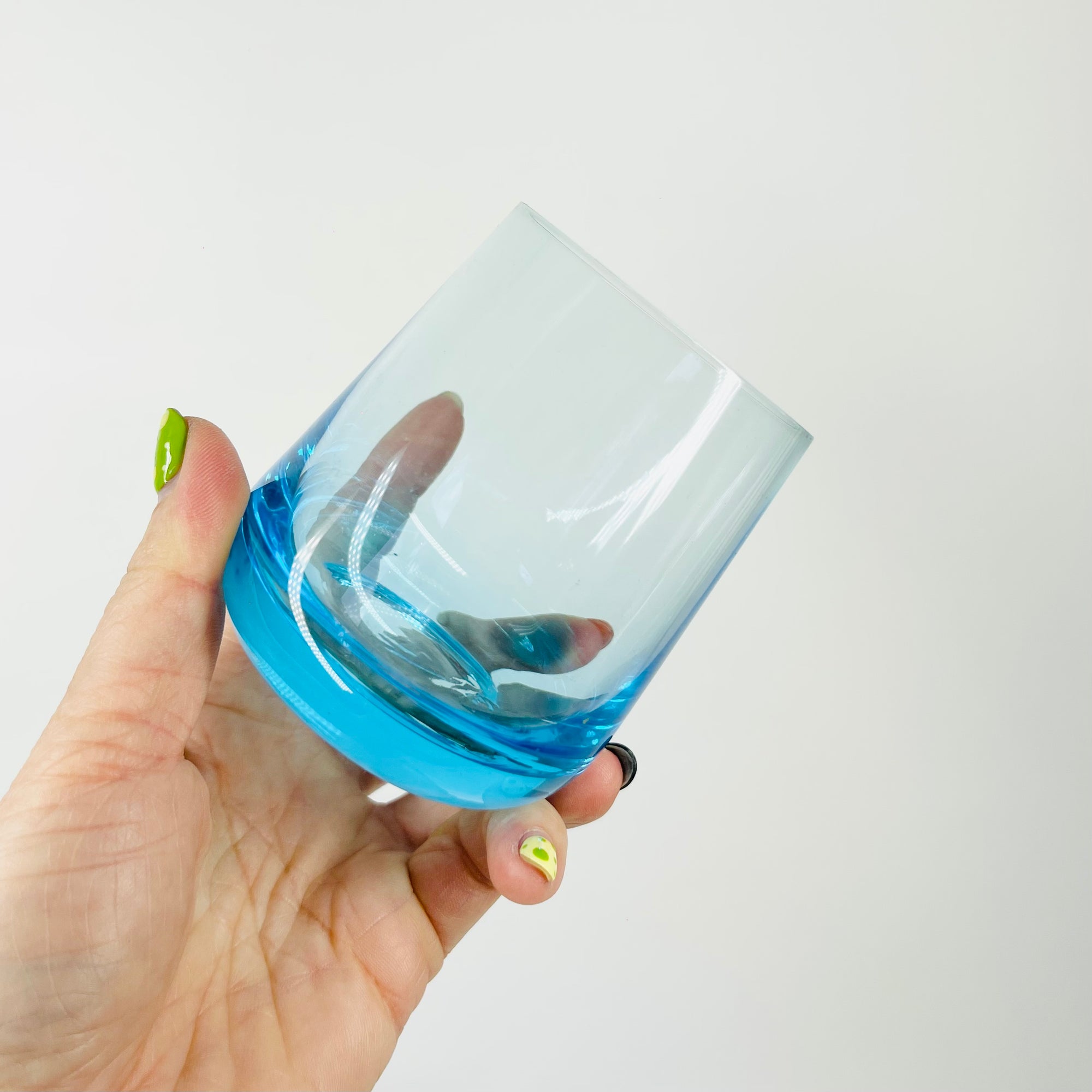 1960s POLISH TURQUOISE BLUE GLASS TUMBLERS