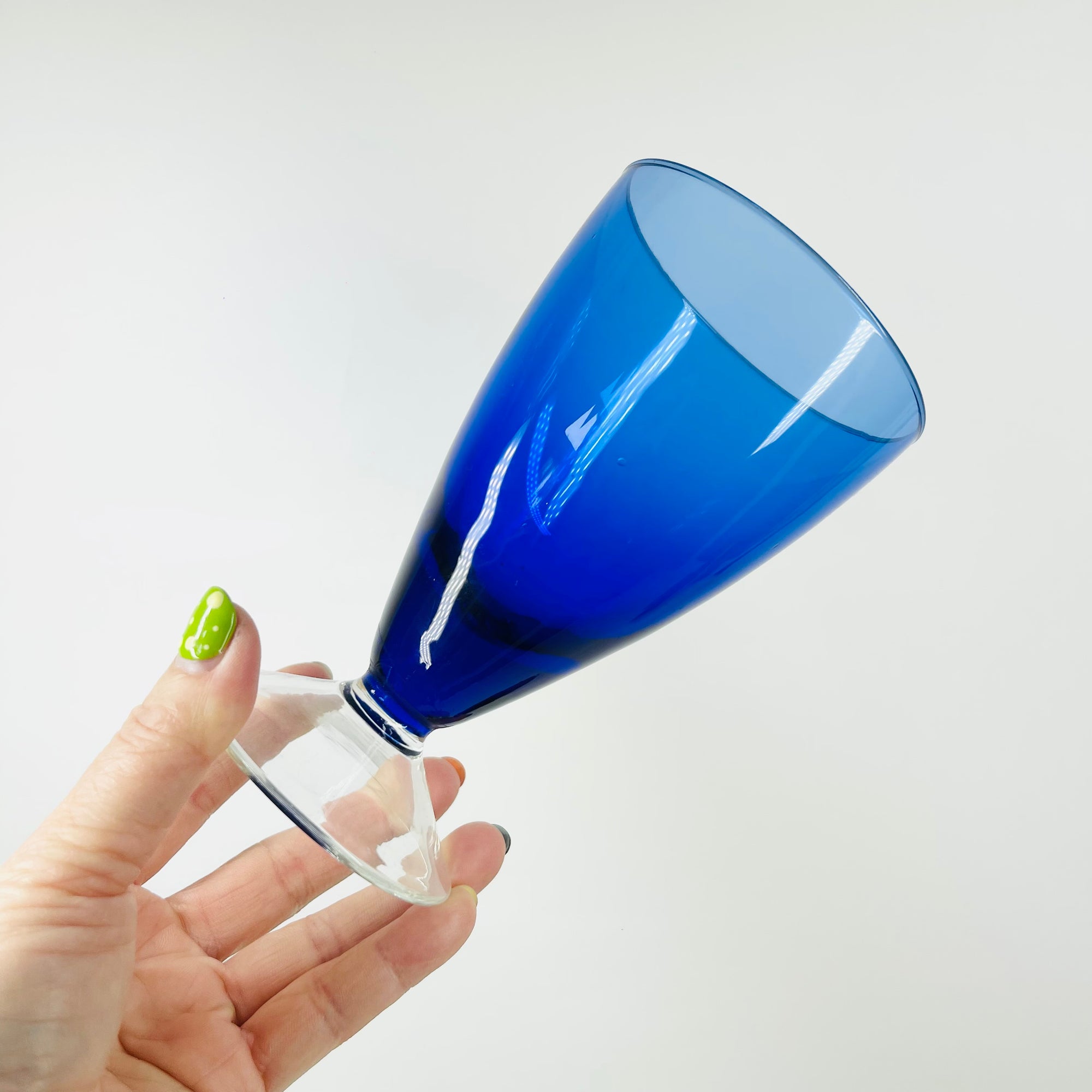 1970s TURDA GREEN BLUE INK STEMS WINE GLASS
