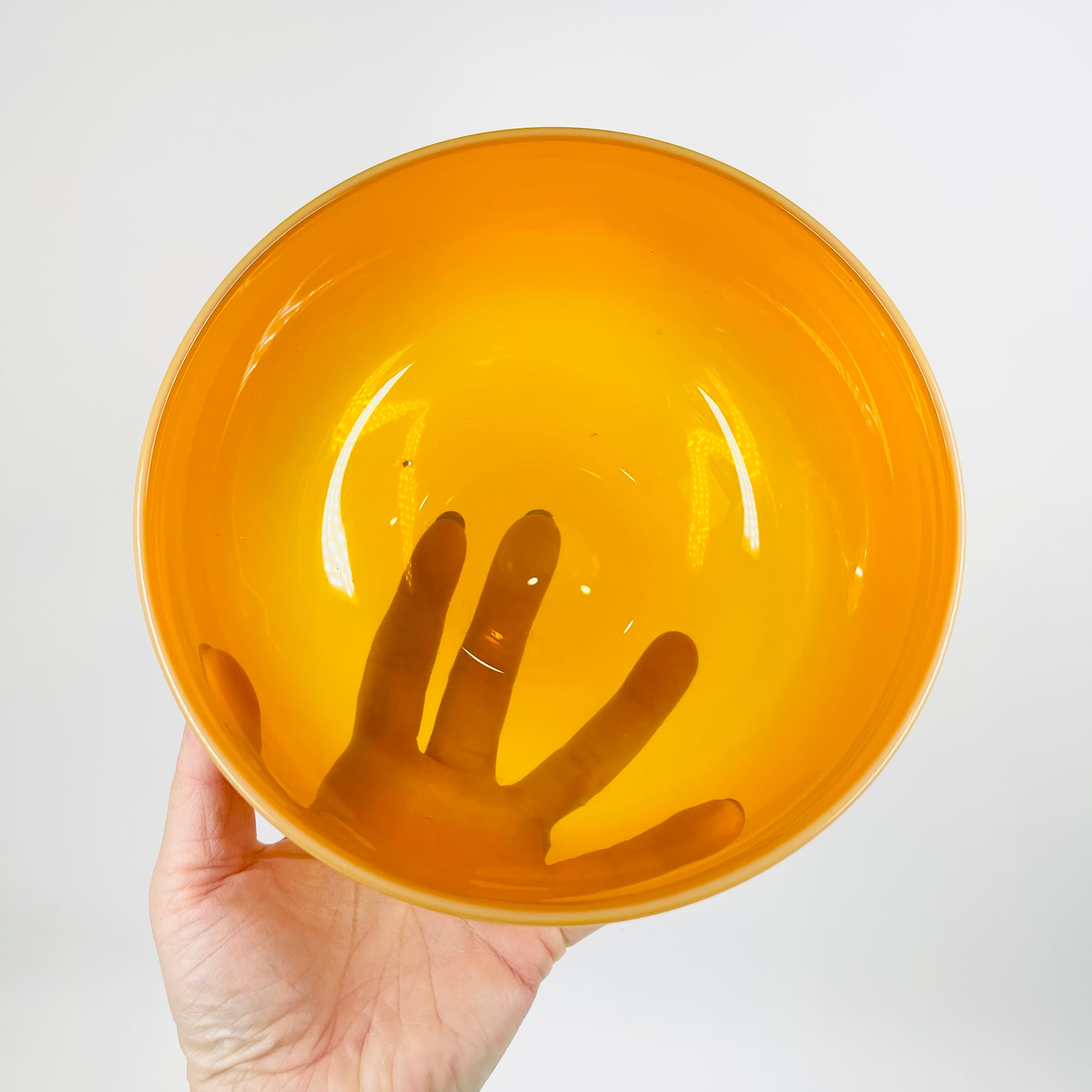 1960s ORANGE OPALESCENT GLASS BOWL BY ERIK HOGLUND FOR BODA