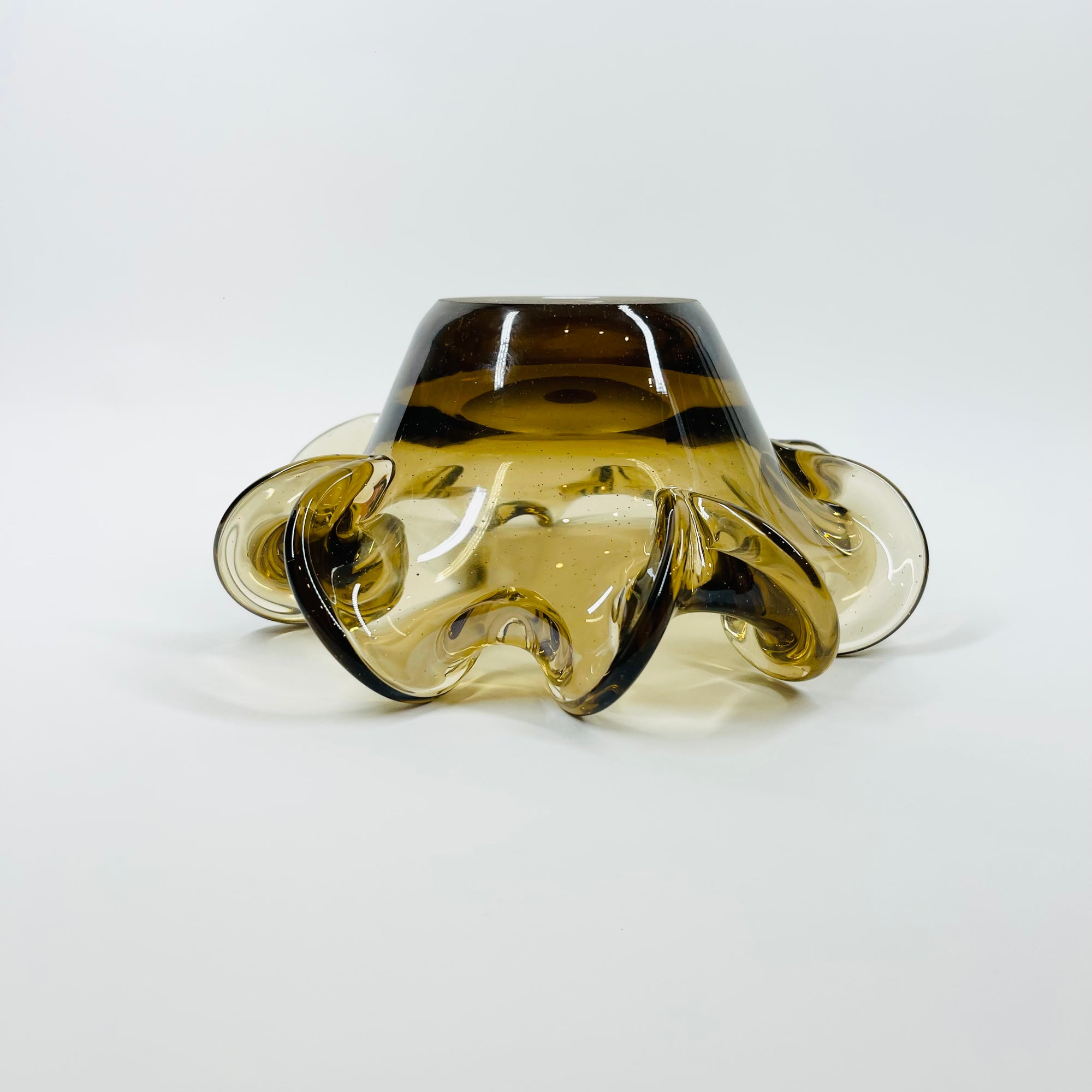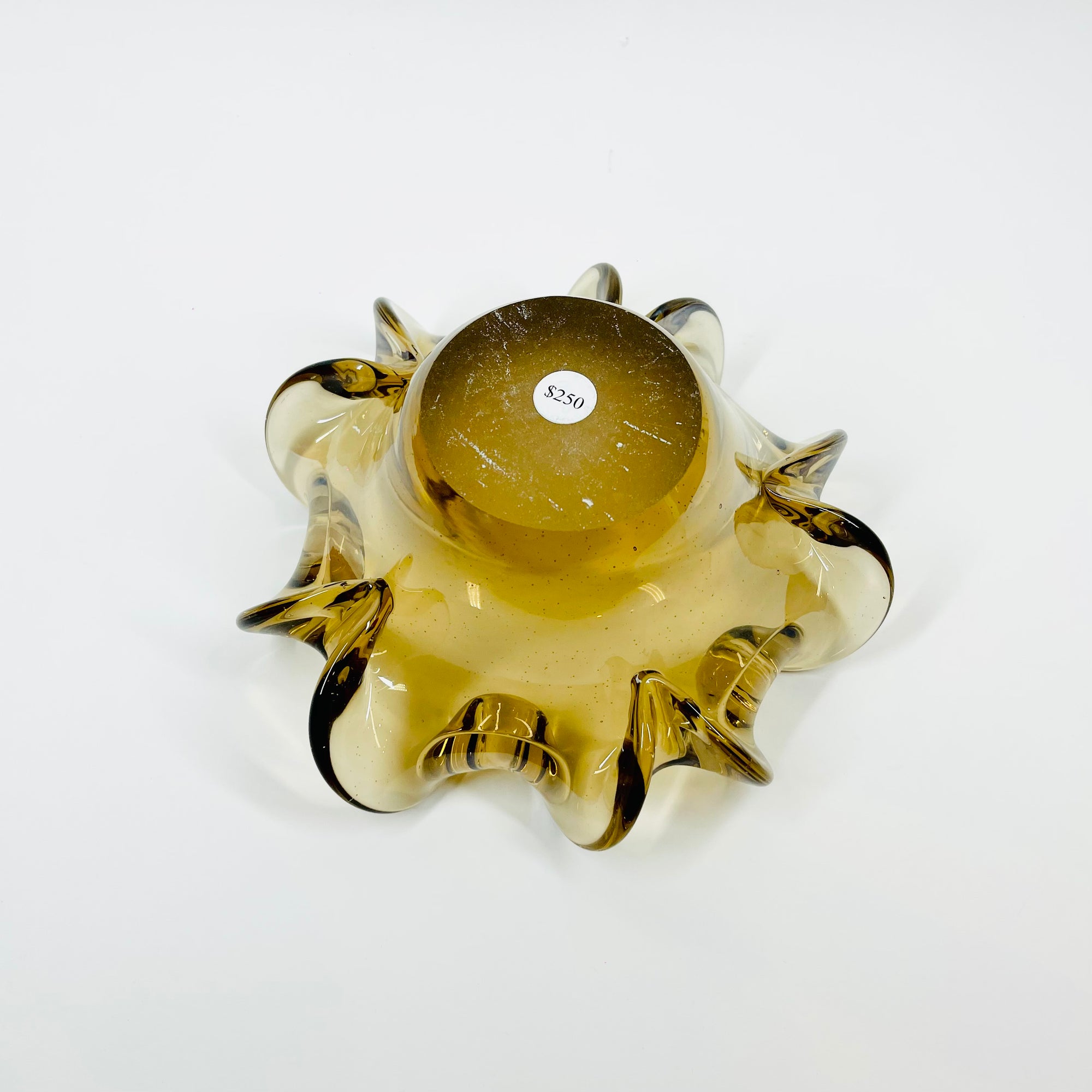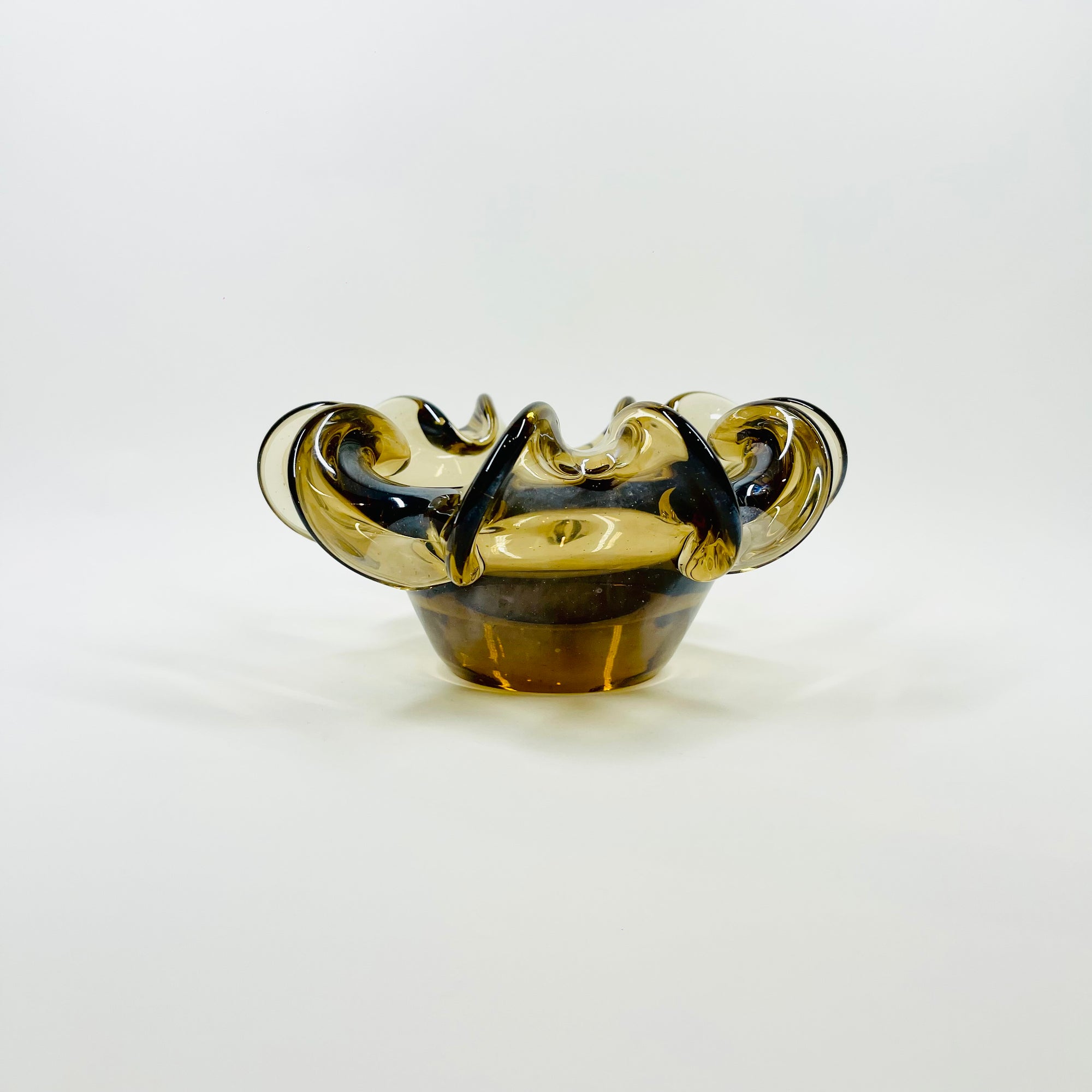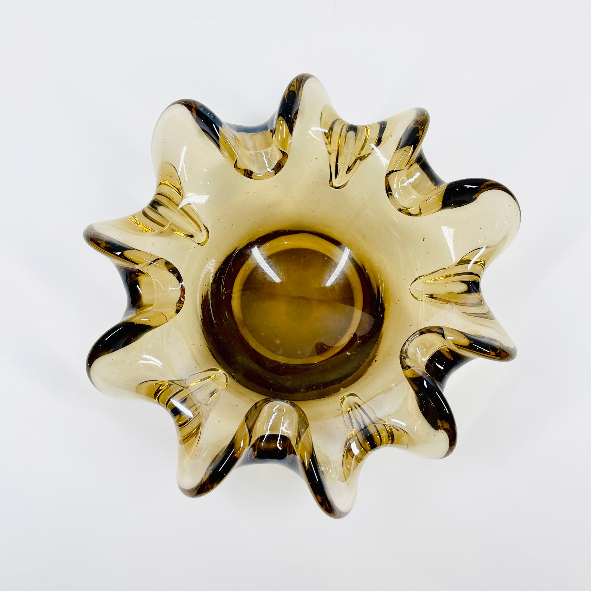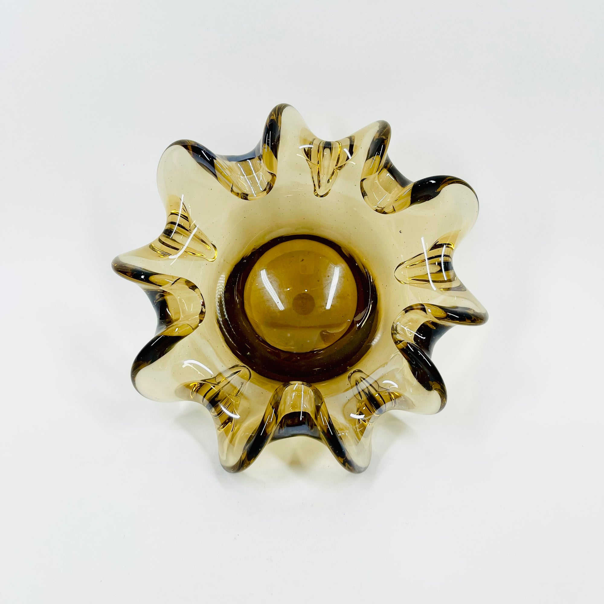 1950s MURANO BROWN PINCHED RUFFLE RIM SOMMERSO GLASS BOWL/ASHTRAY
