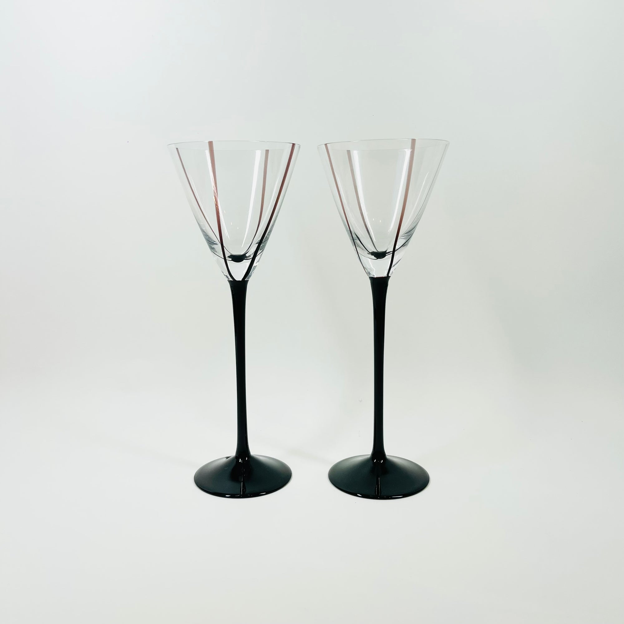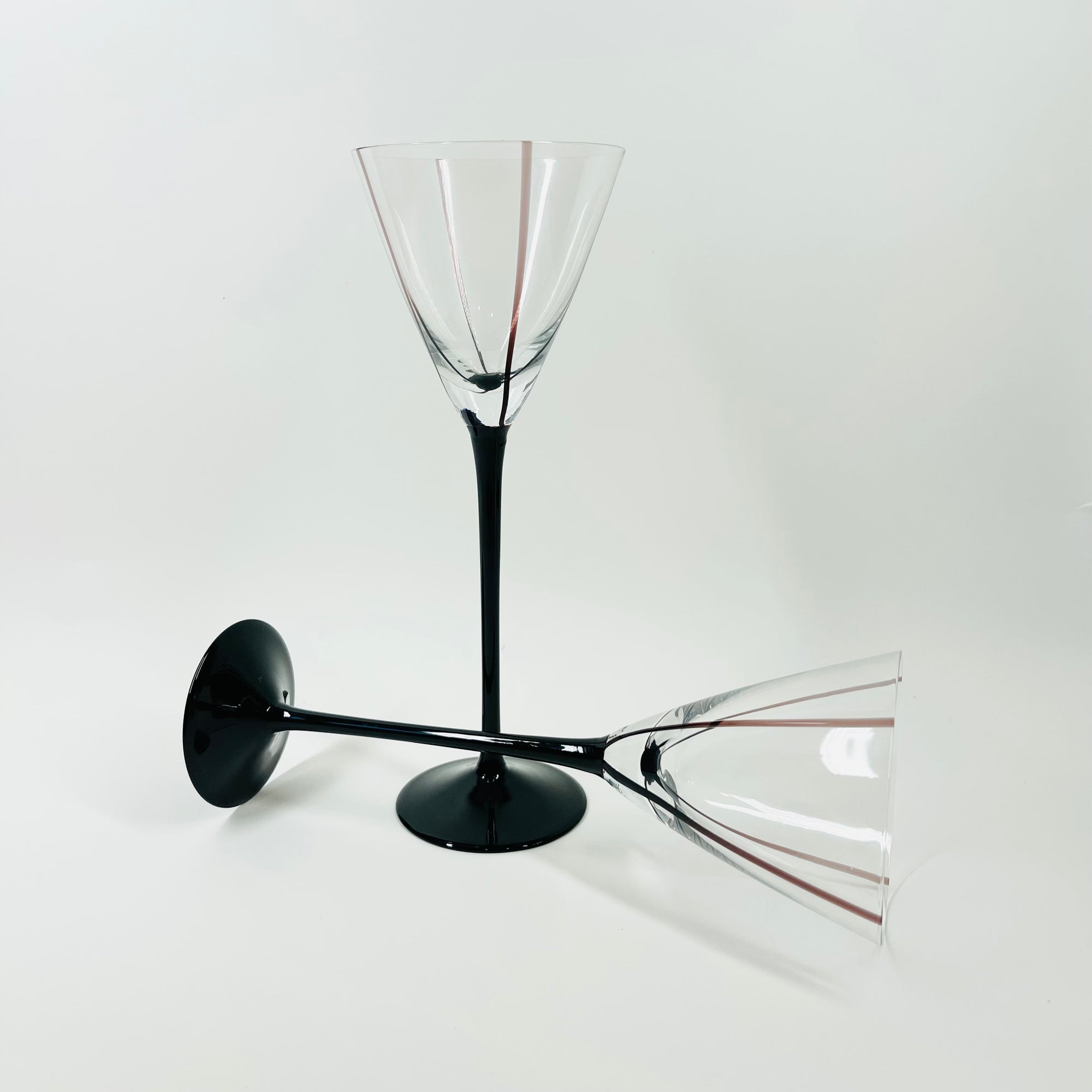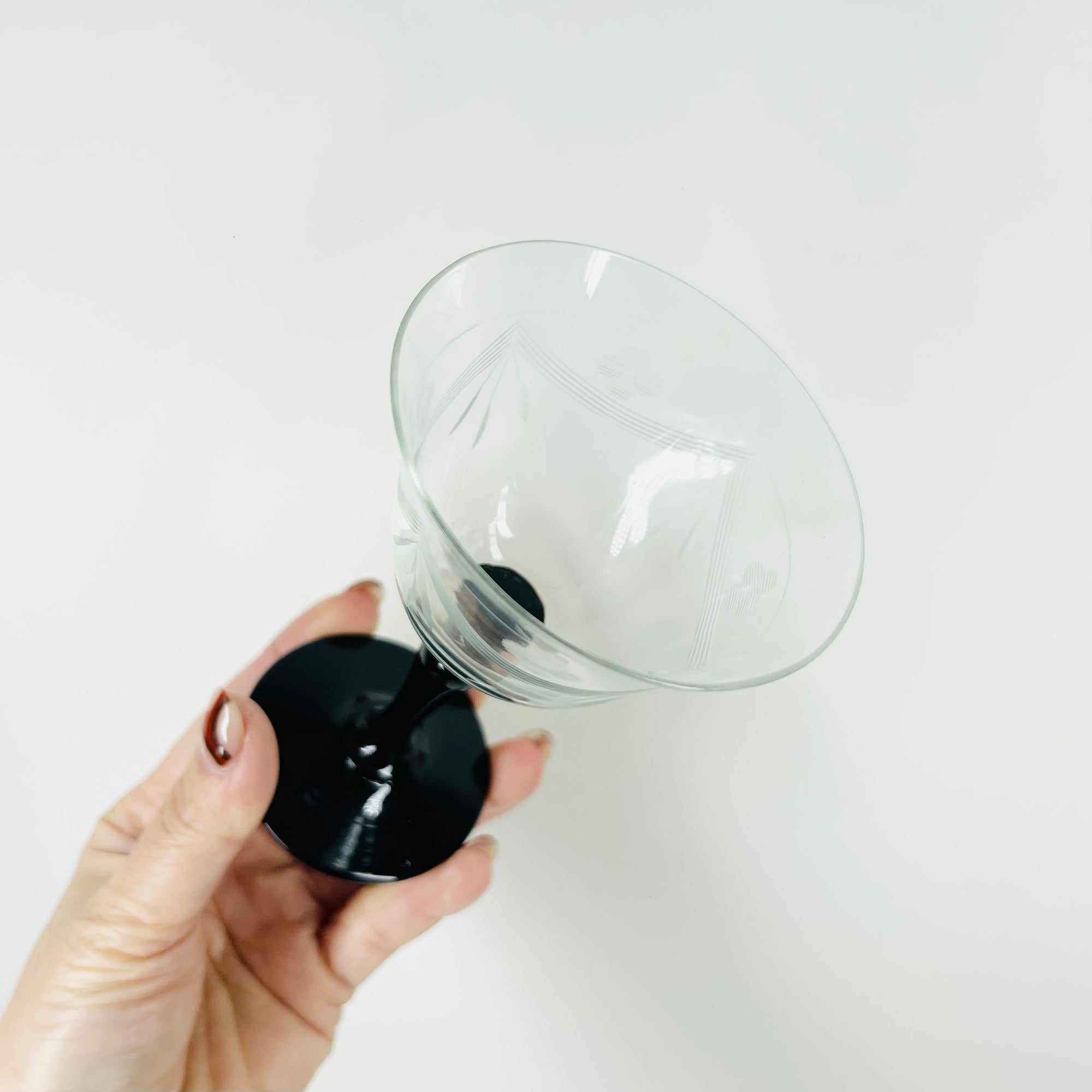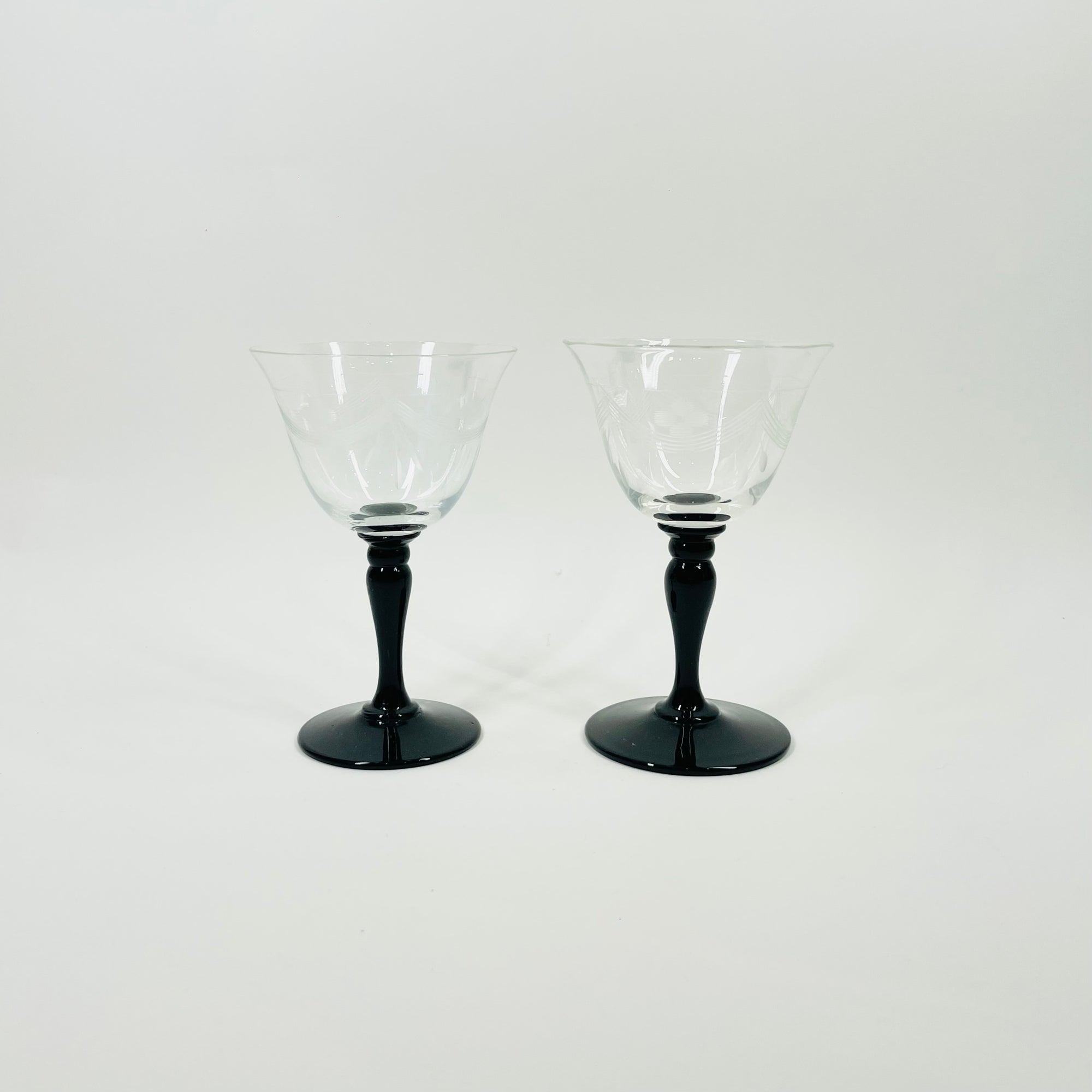 1940s BLACK STEM ETCHED COCKTAIL GLASSES