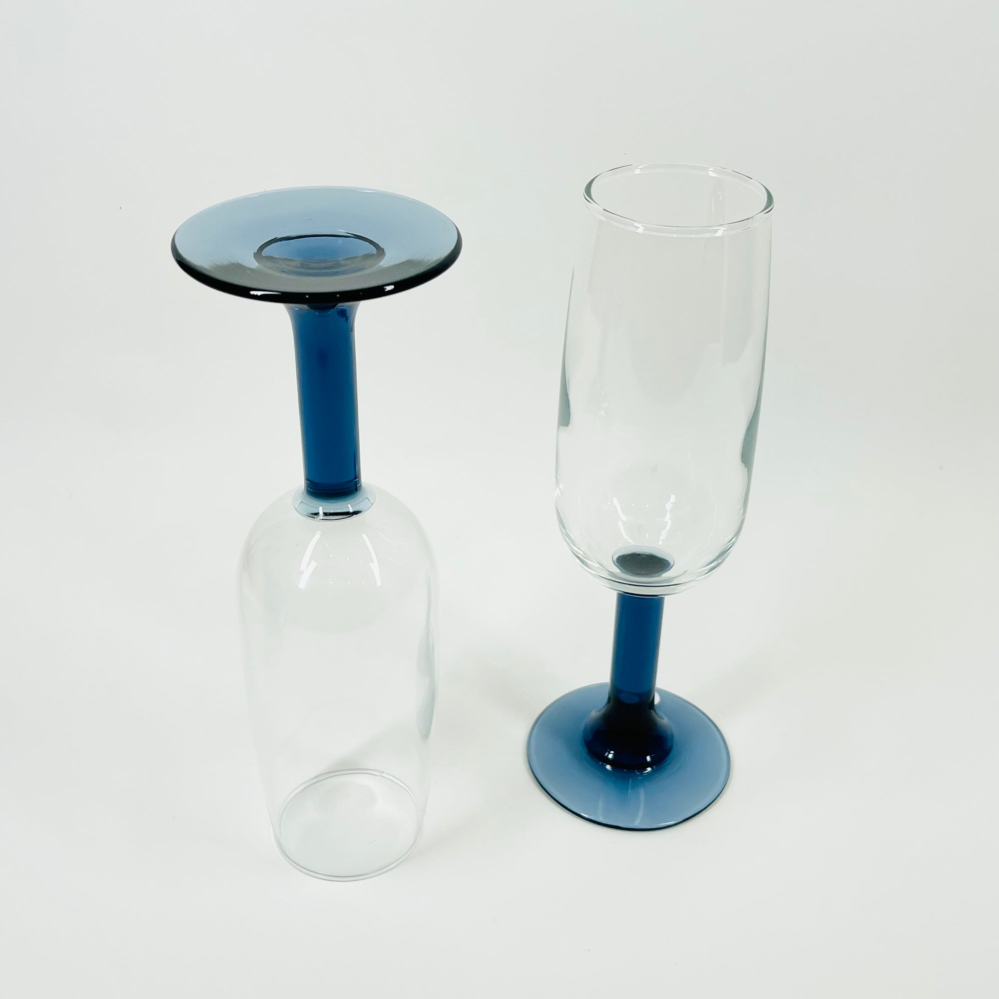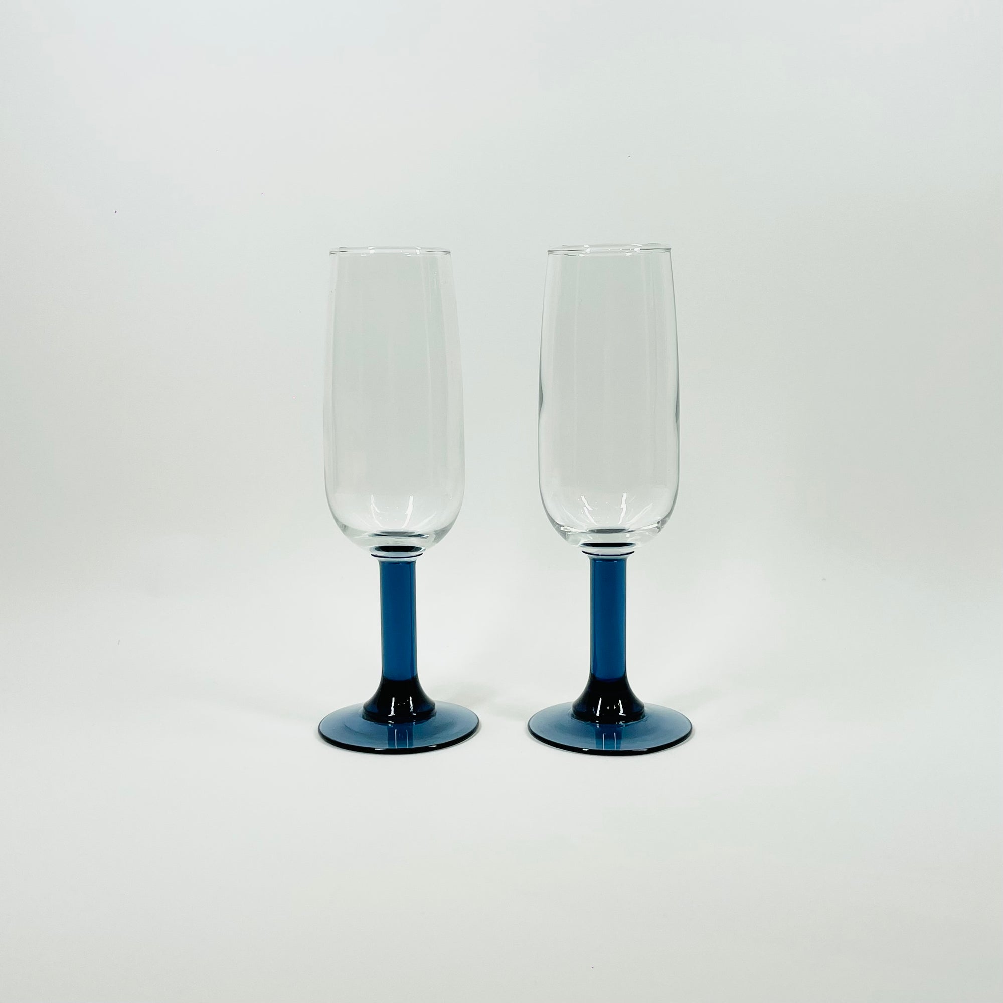 1950s LUMINARC DARK BLUE STEM CHAMPAGNE FLUTES