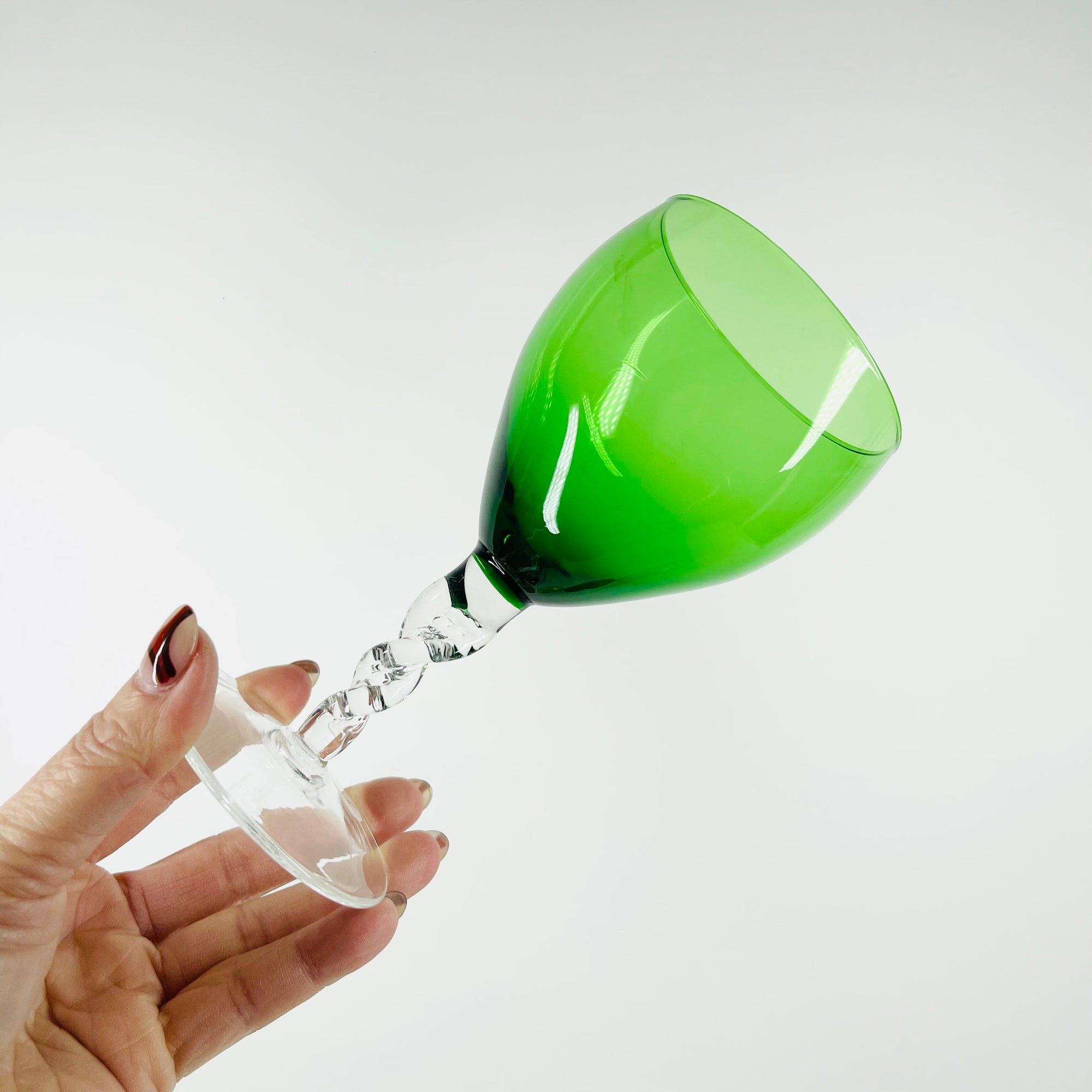 1960s GREEN STEM GLASS GOBLETS