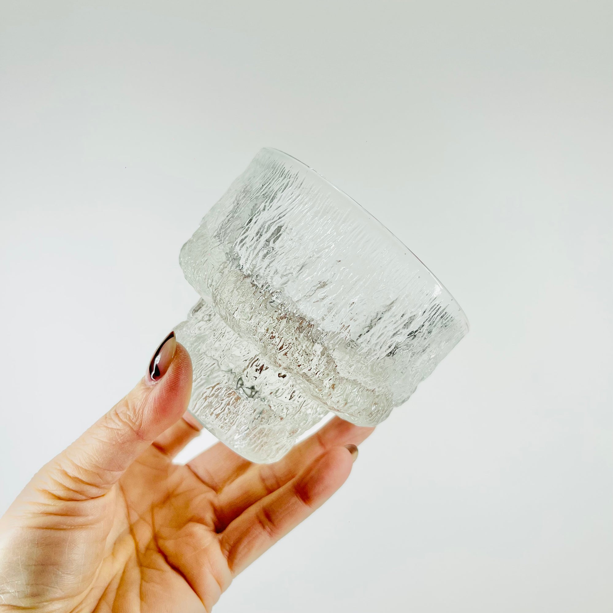 1950s WHITEFRIARS GREY BARK FOOTED LIQUEUR GLASSES BY GEOFFREY BAXTER