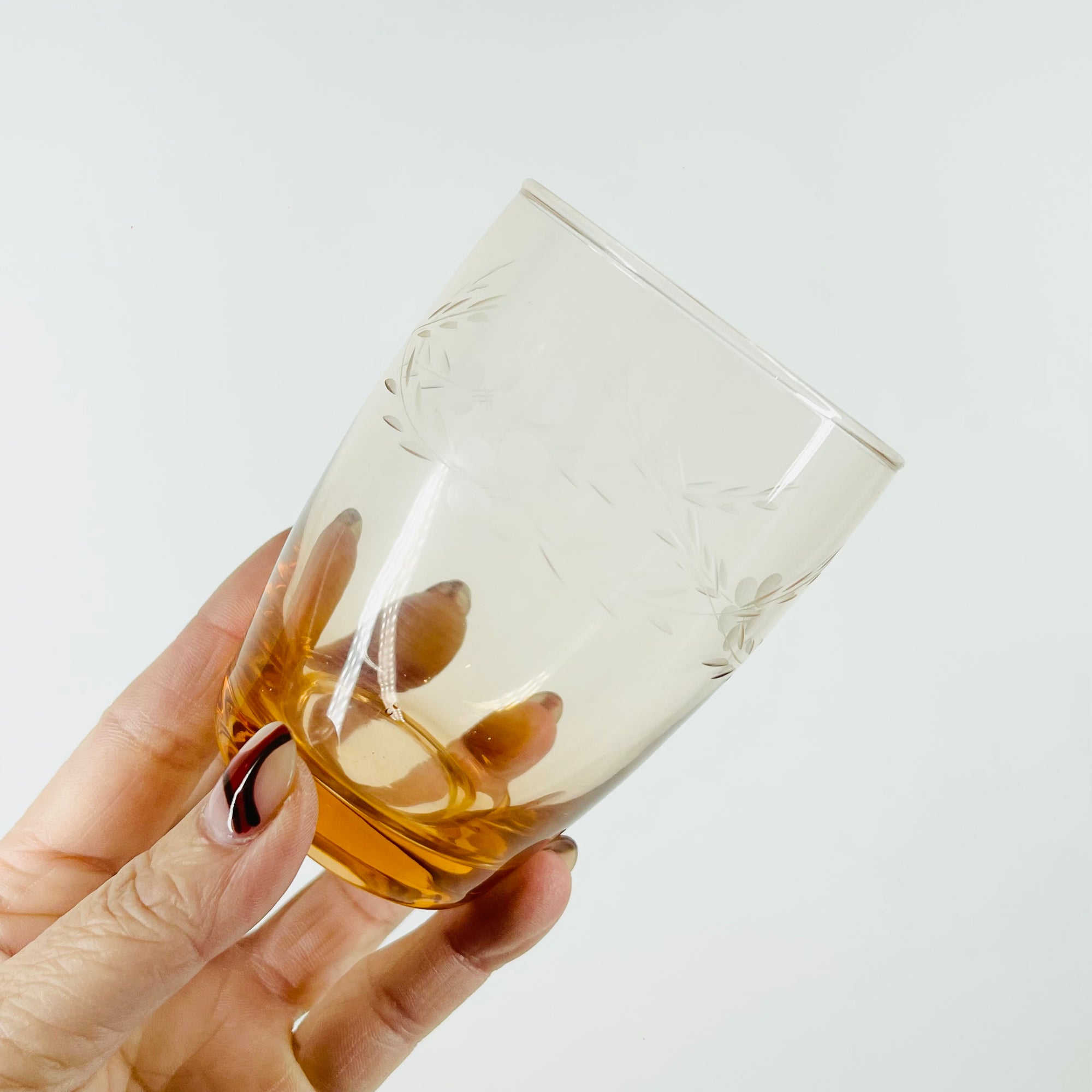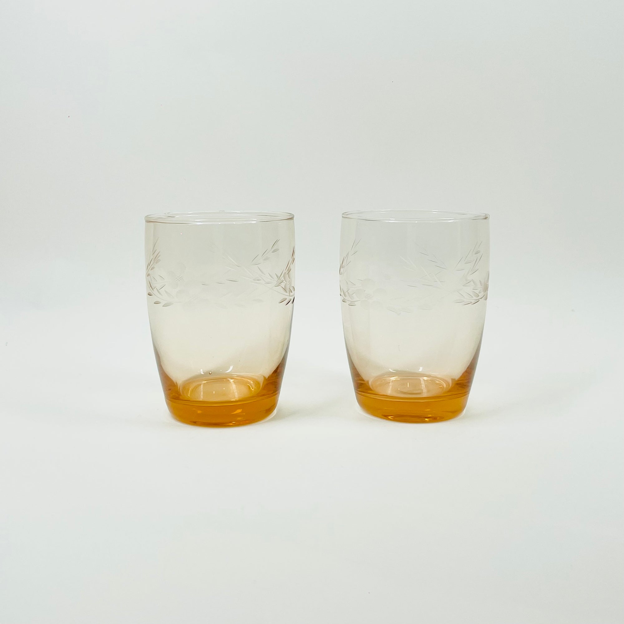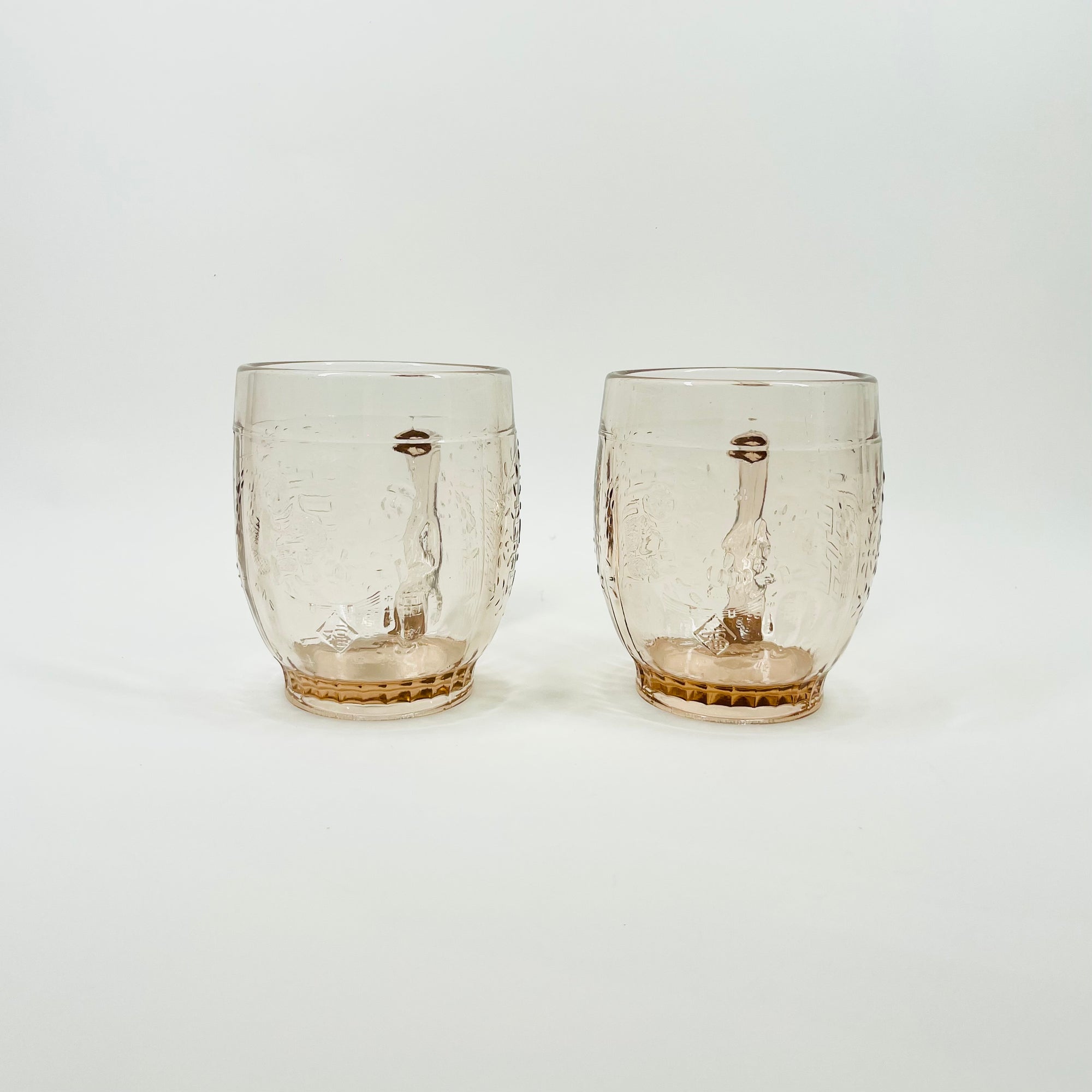 1950s ETCHED PINK GLASS TUMBLERS