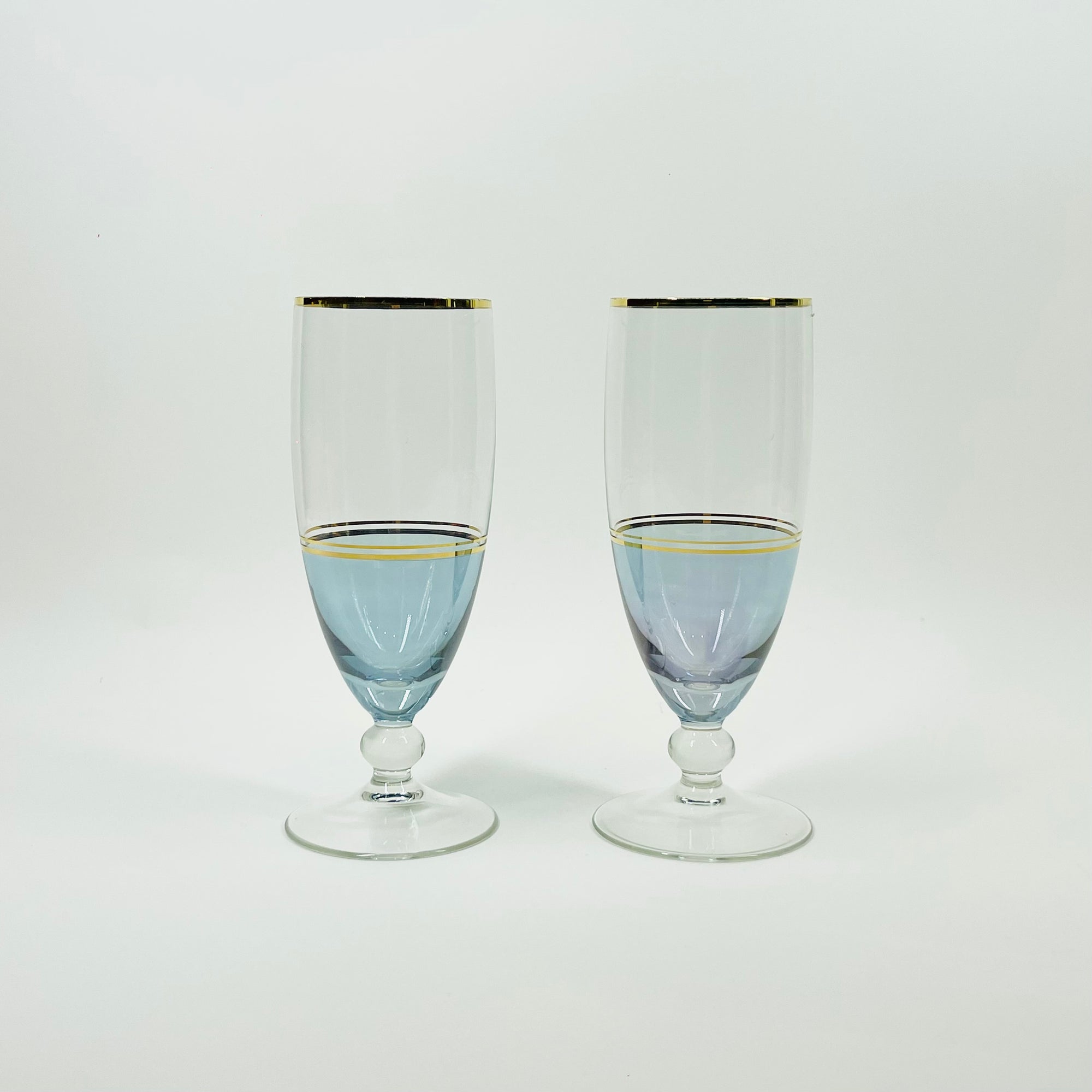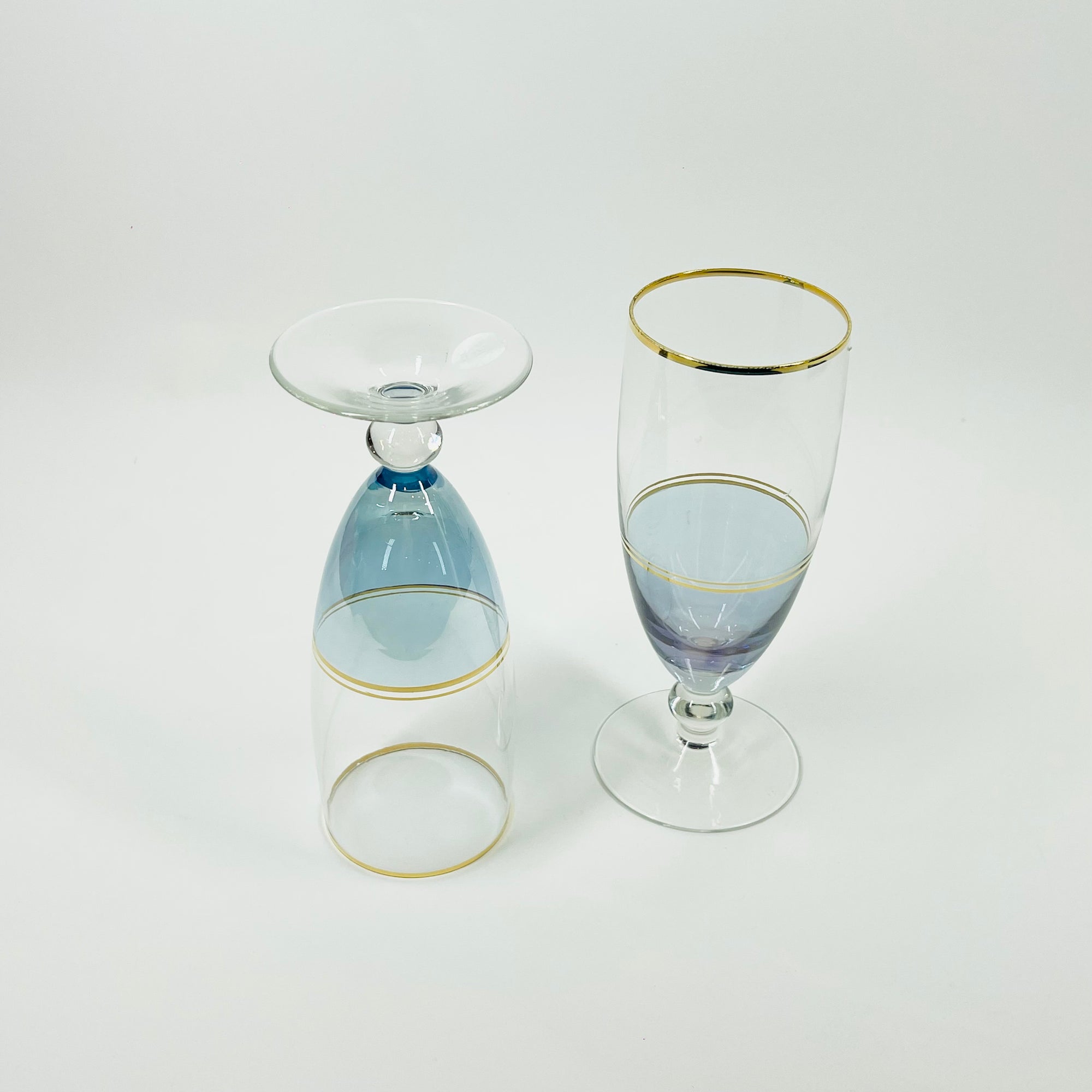 1950s BLUE IRIDESCENT CHAMPAGNE FLUTES WITH GOLD GILDING