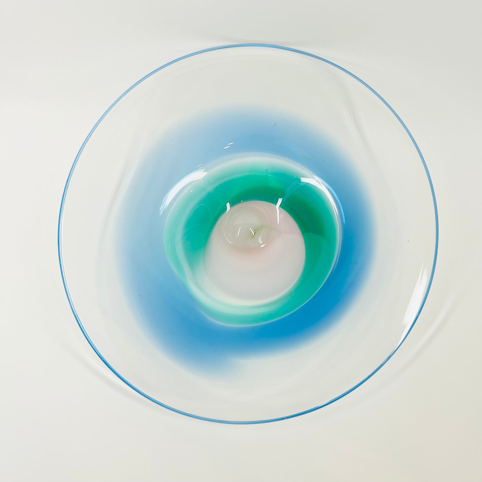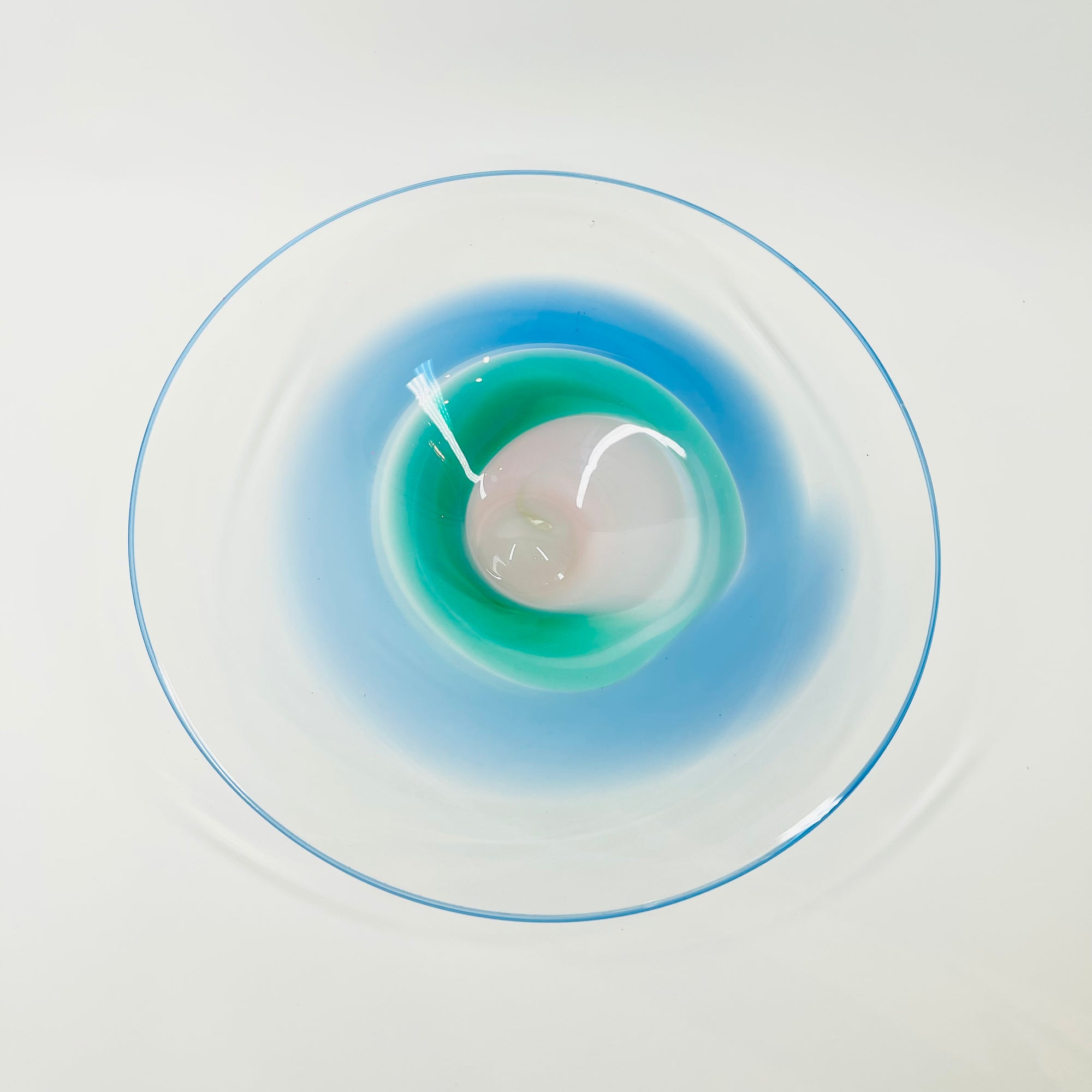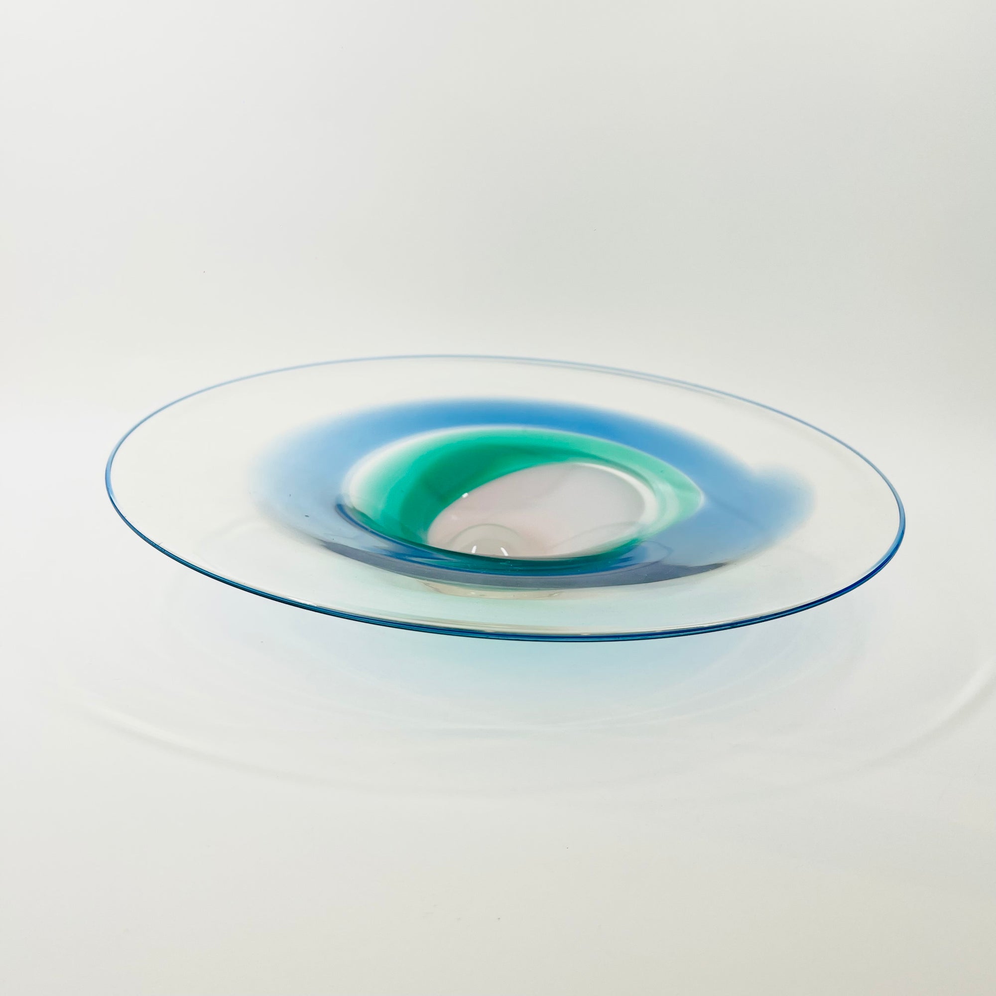 1980s MOUTH BLOWN BLUE GREEN ART GLASS BOWL BY SETSUKO OGISHI