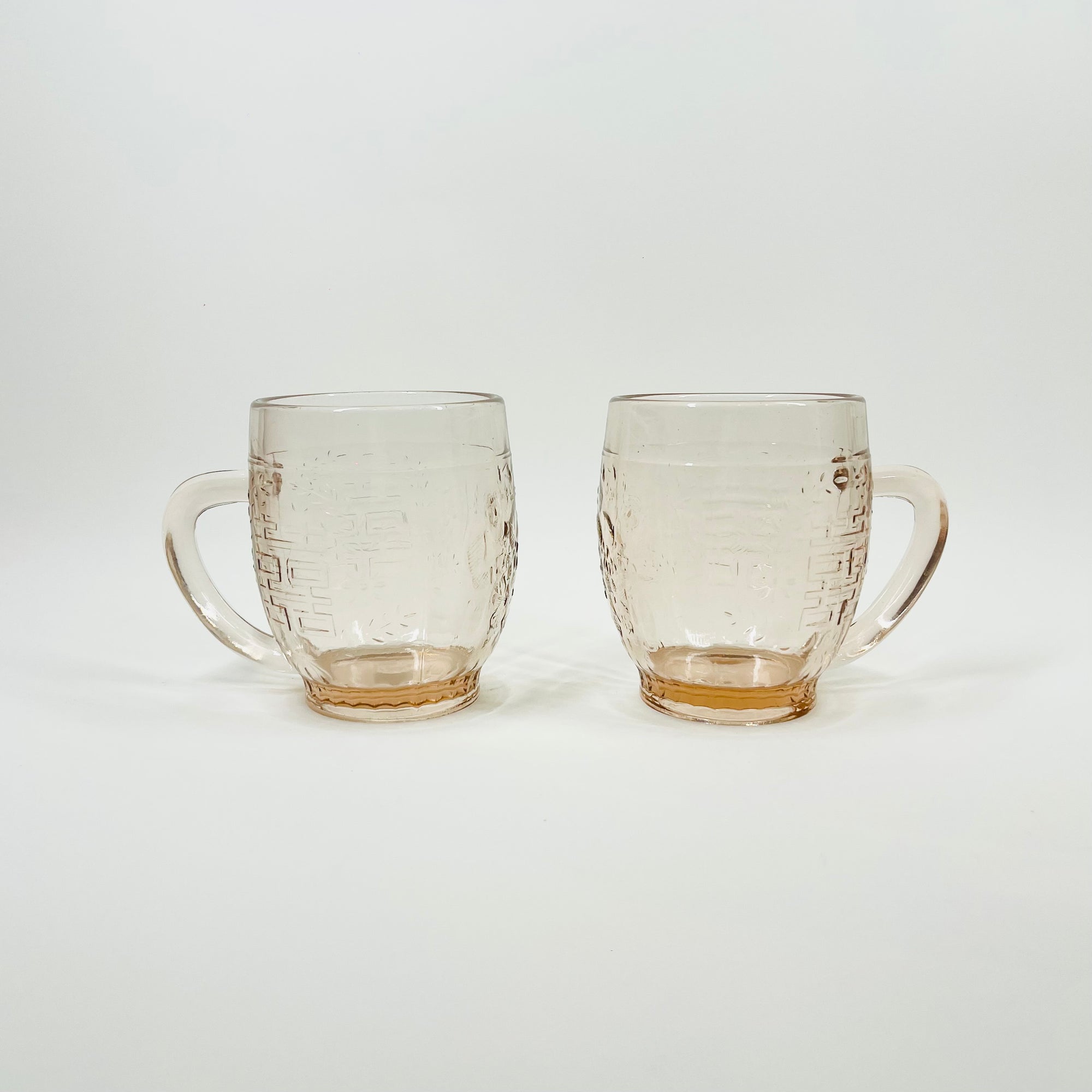 1940s PINK DEPRESSION GLASS BEER TANKARD/MUG WITH CHINESE GARDEN THEME
