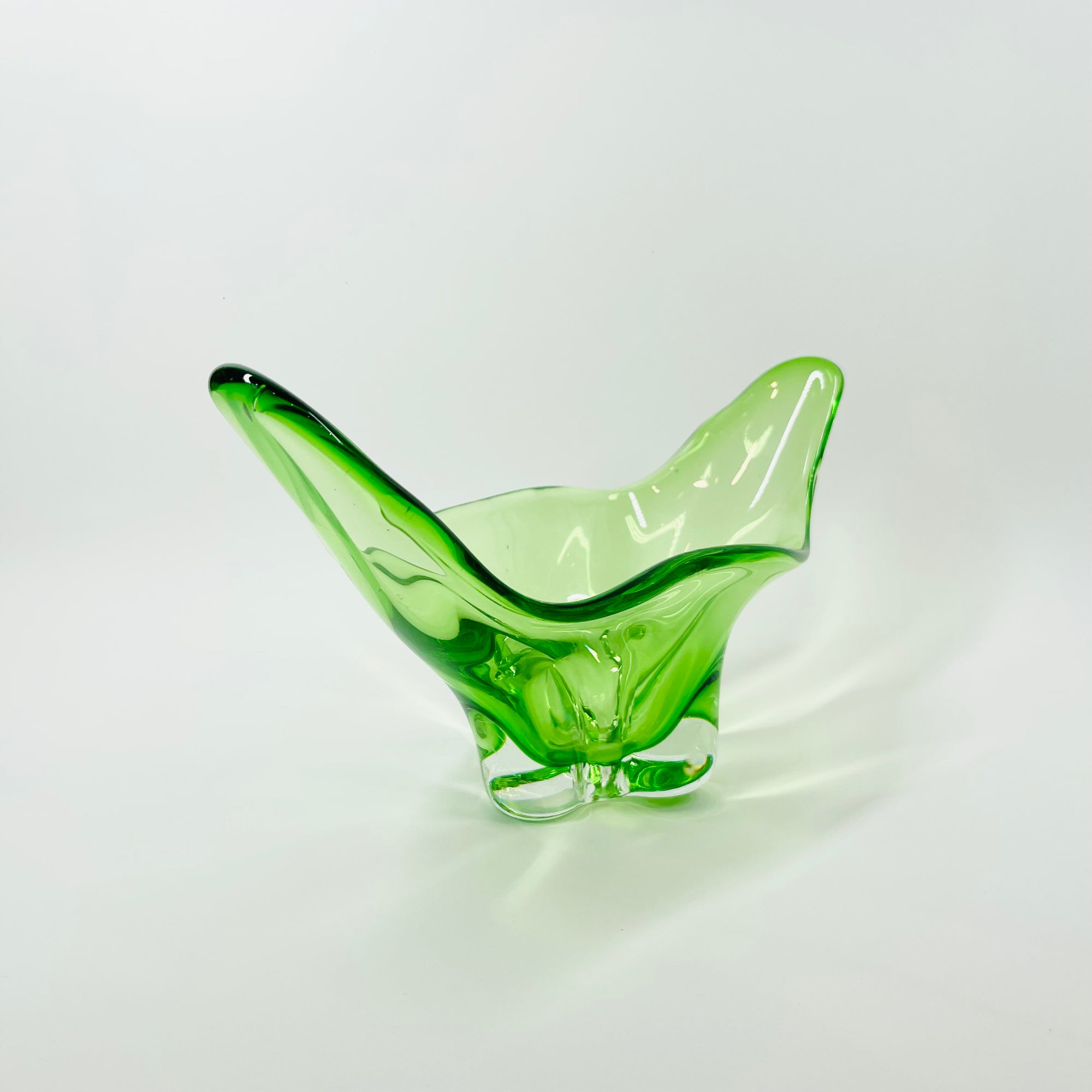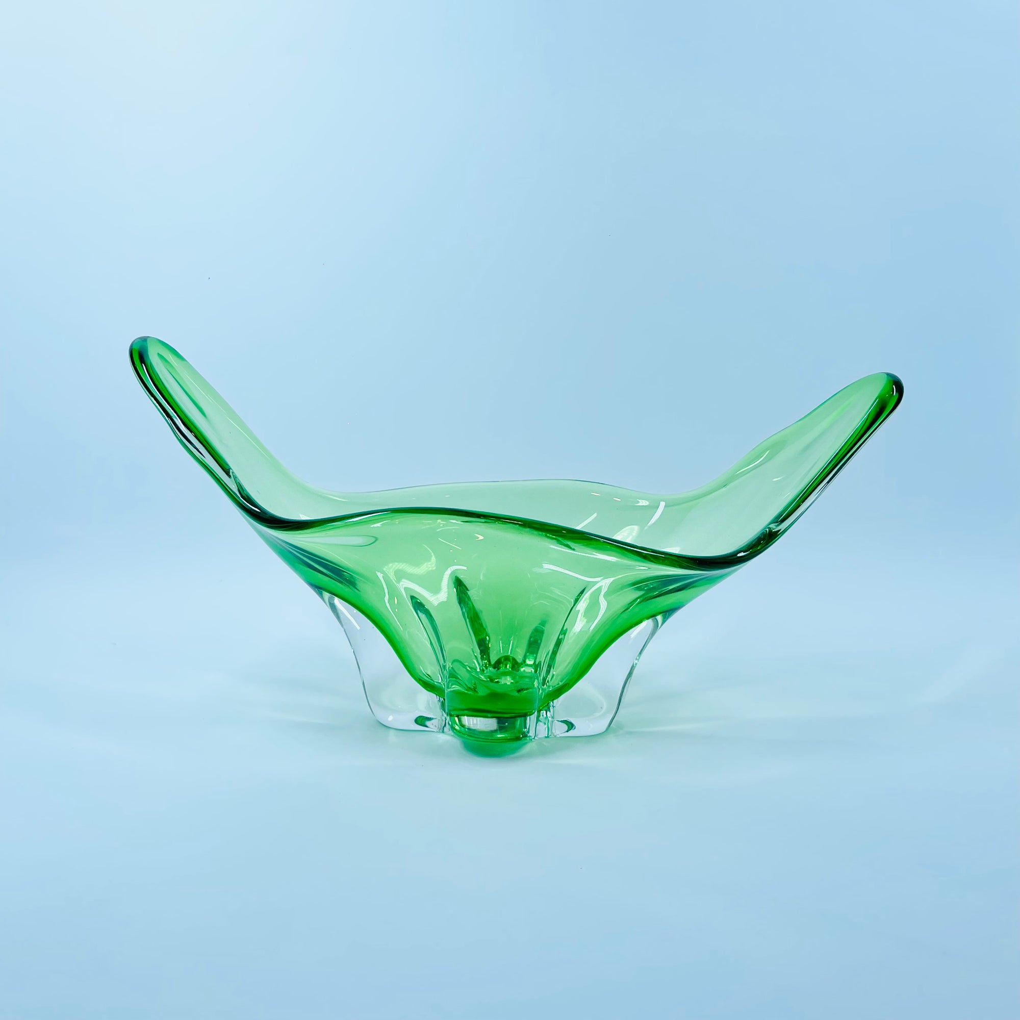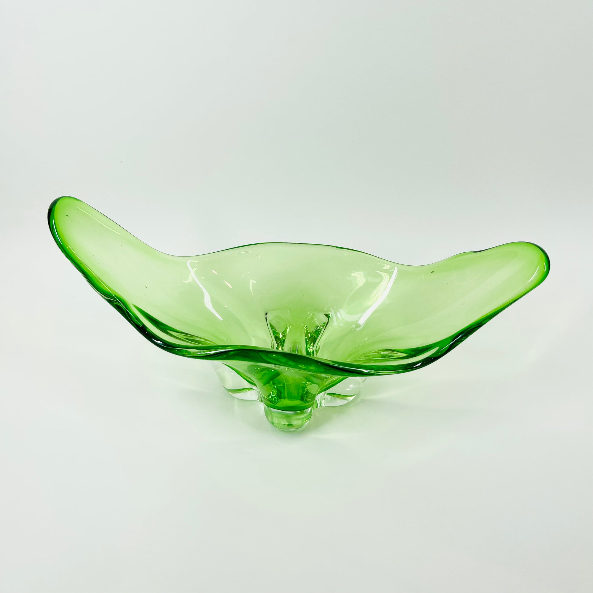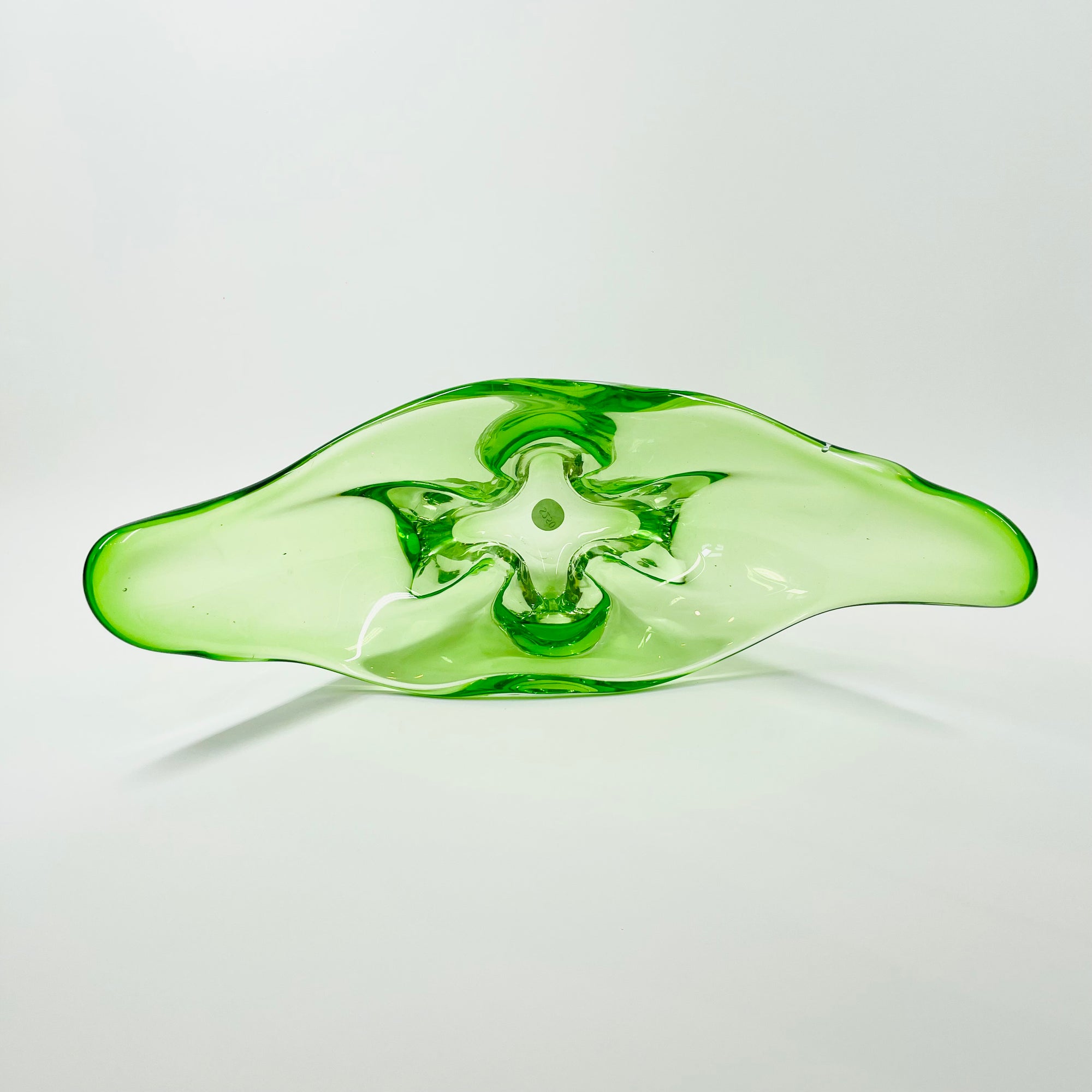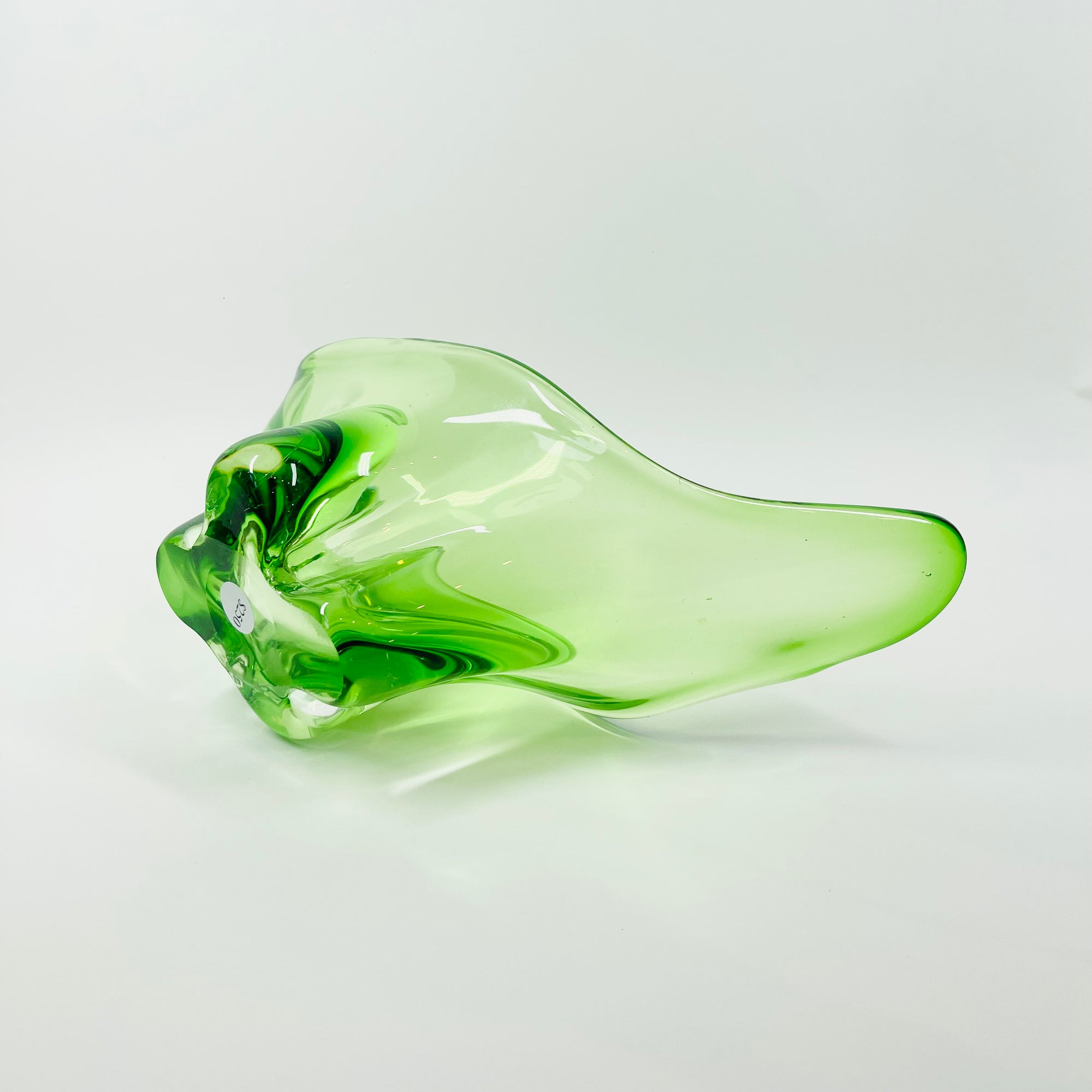 1970s JAPANESE GREEN SOMMERSO GLASS FLAME BOWL