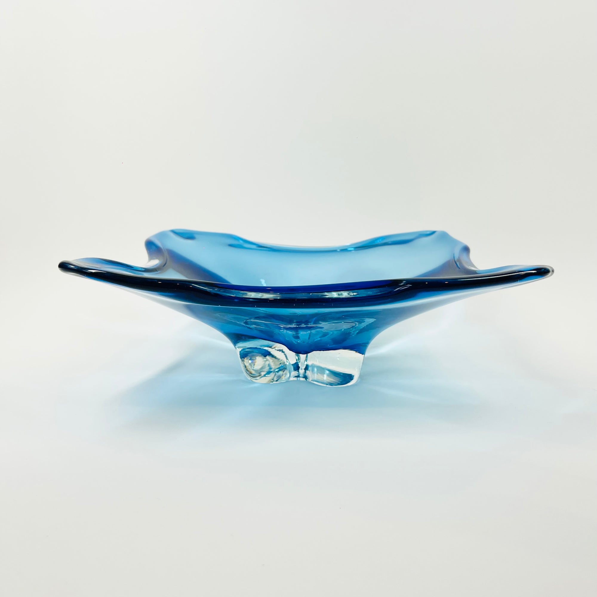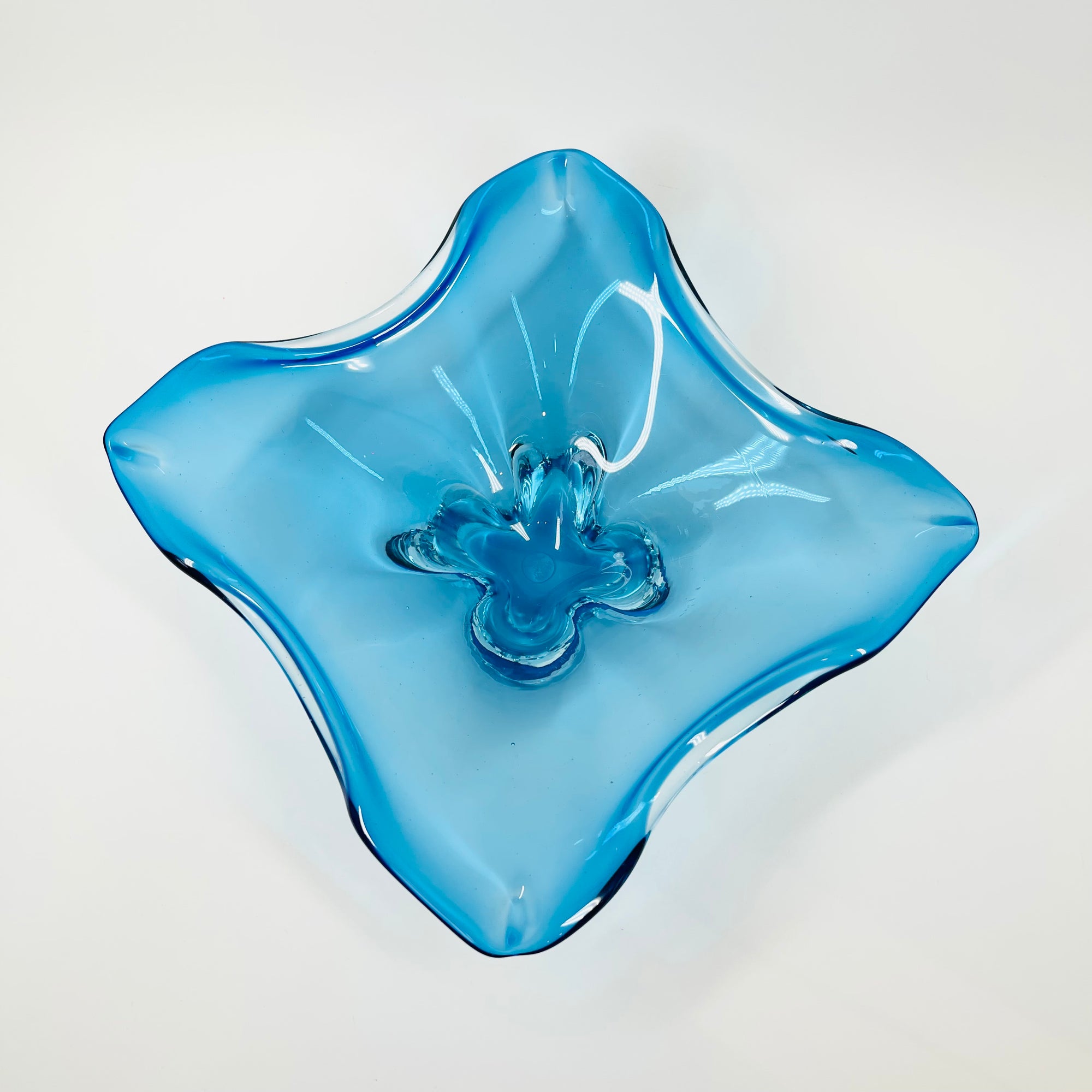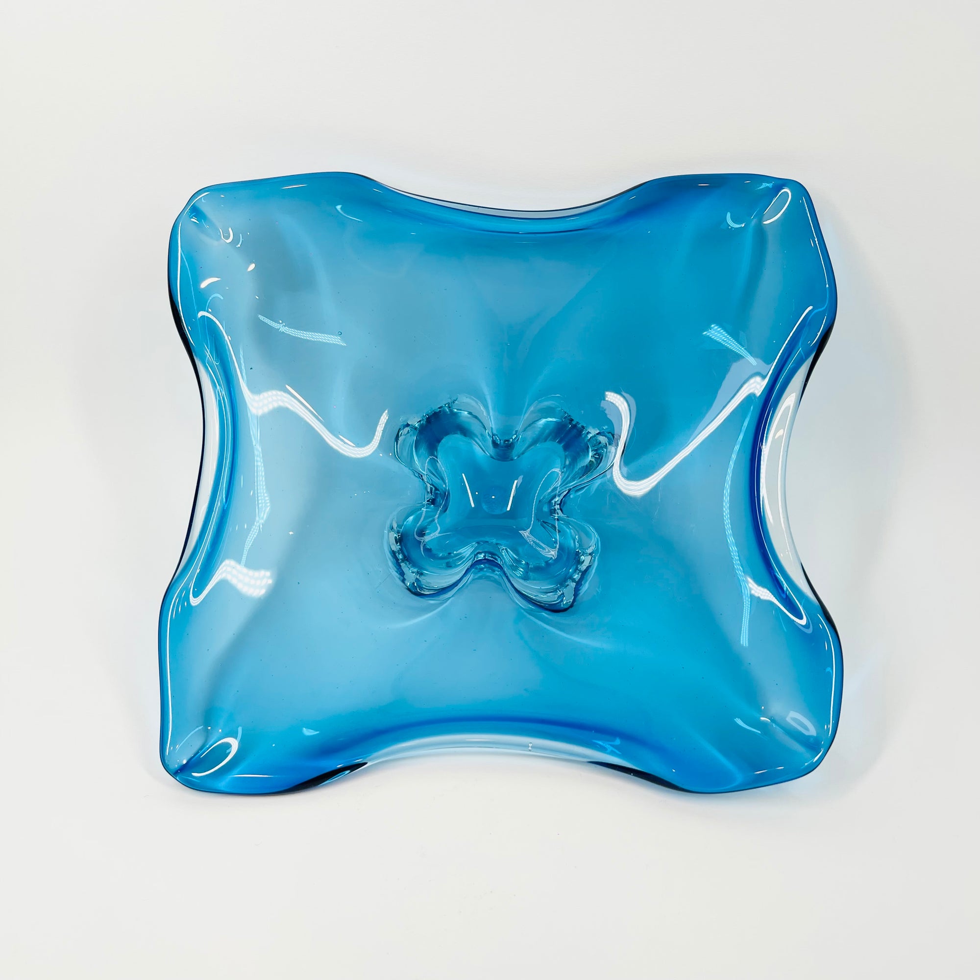 LARGE 1970s JAPANESE TURQUOISE BLUE SOMMERSO GLASS SQUARE BOWL