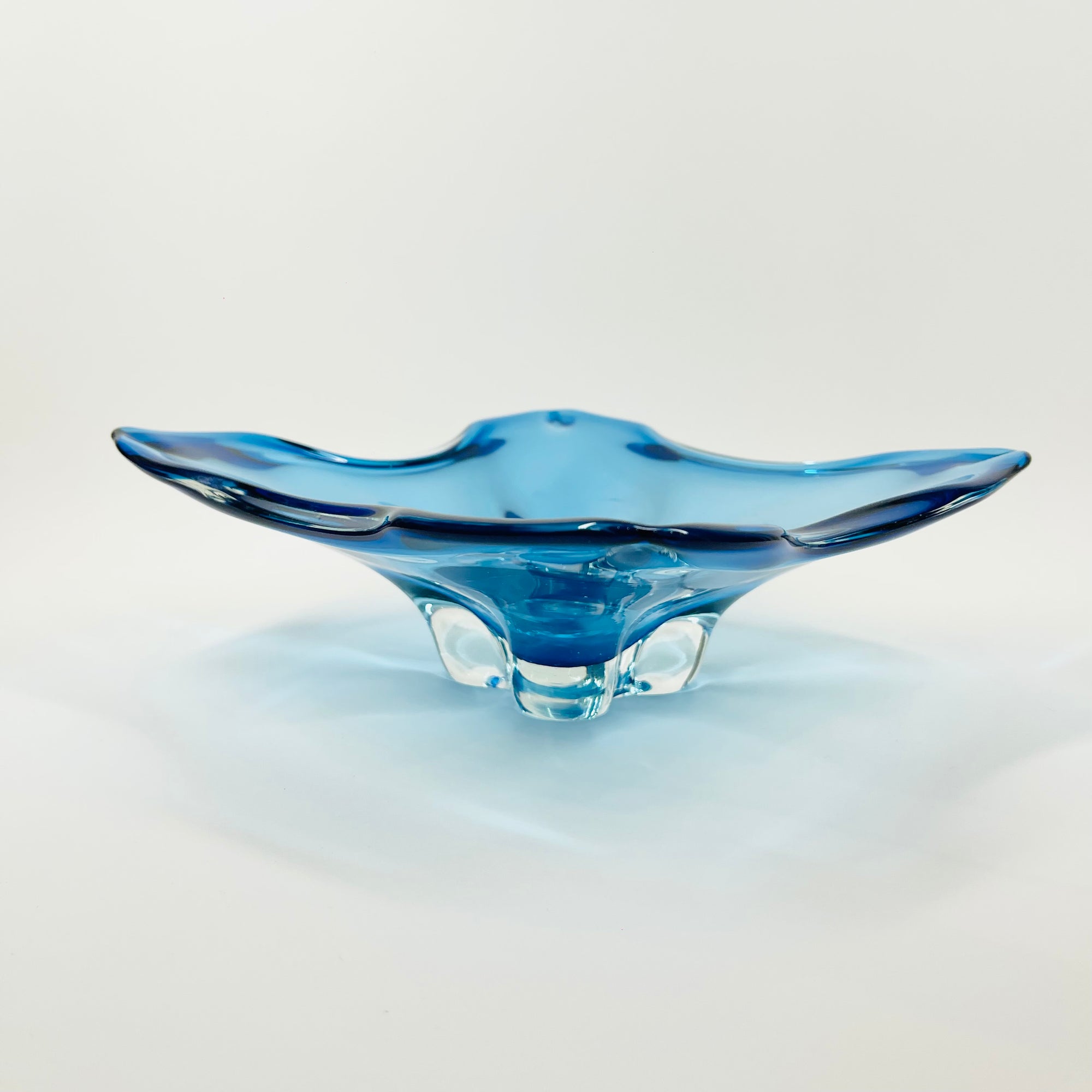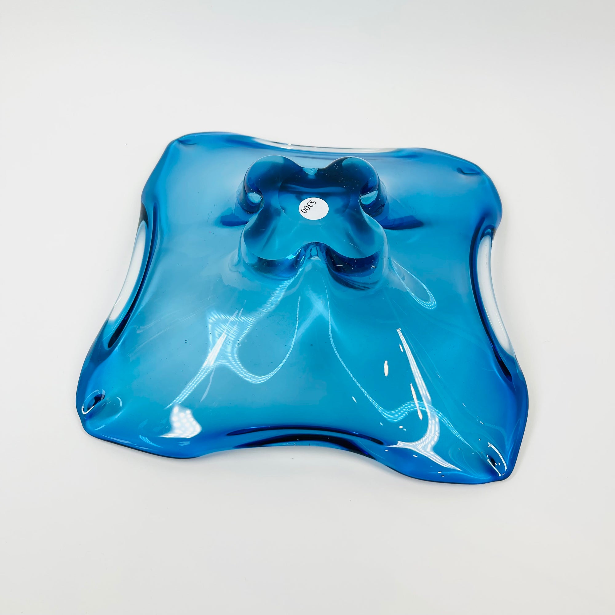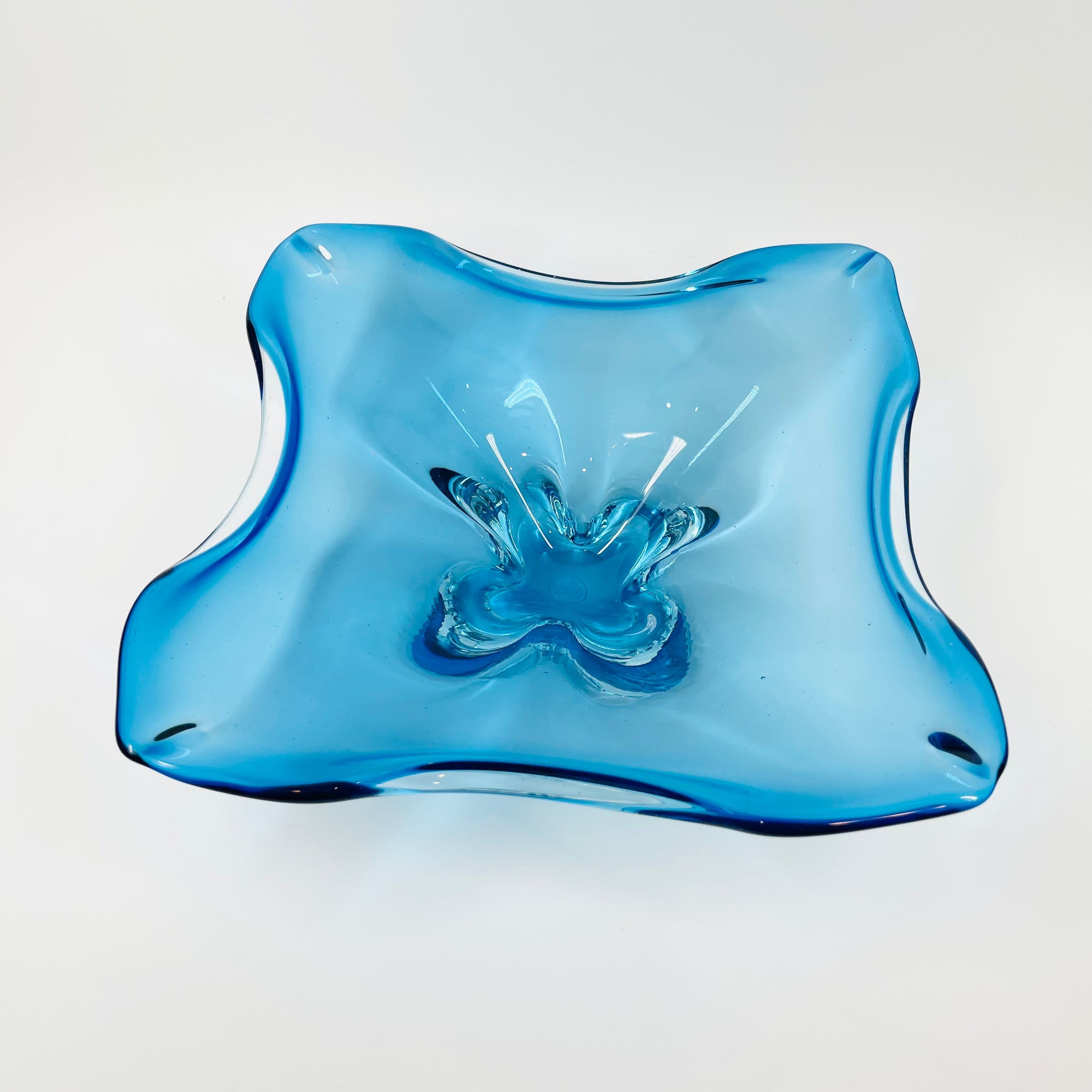 LARGE 1970s JAPANESE TURQUOISE BLUE SOMMERSO GLASS SQUARE BOWL