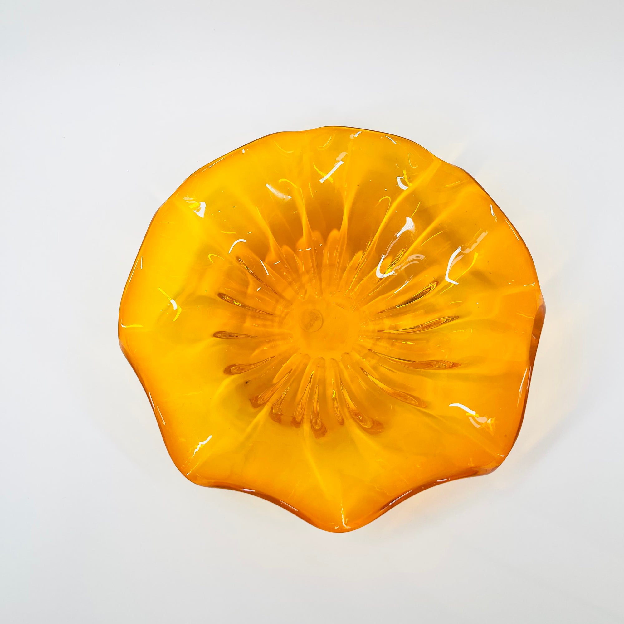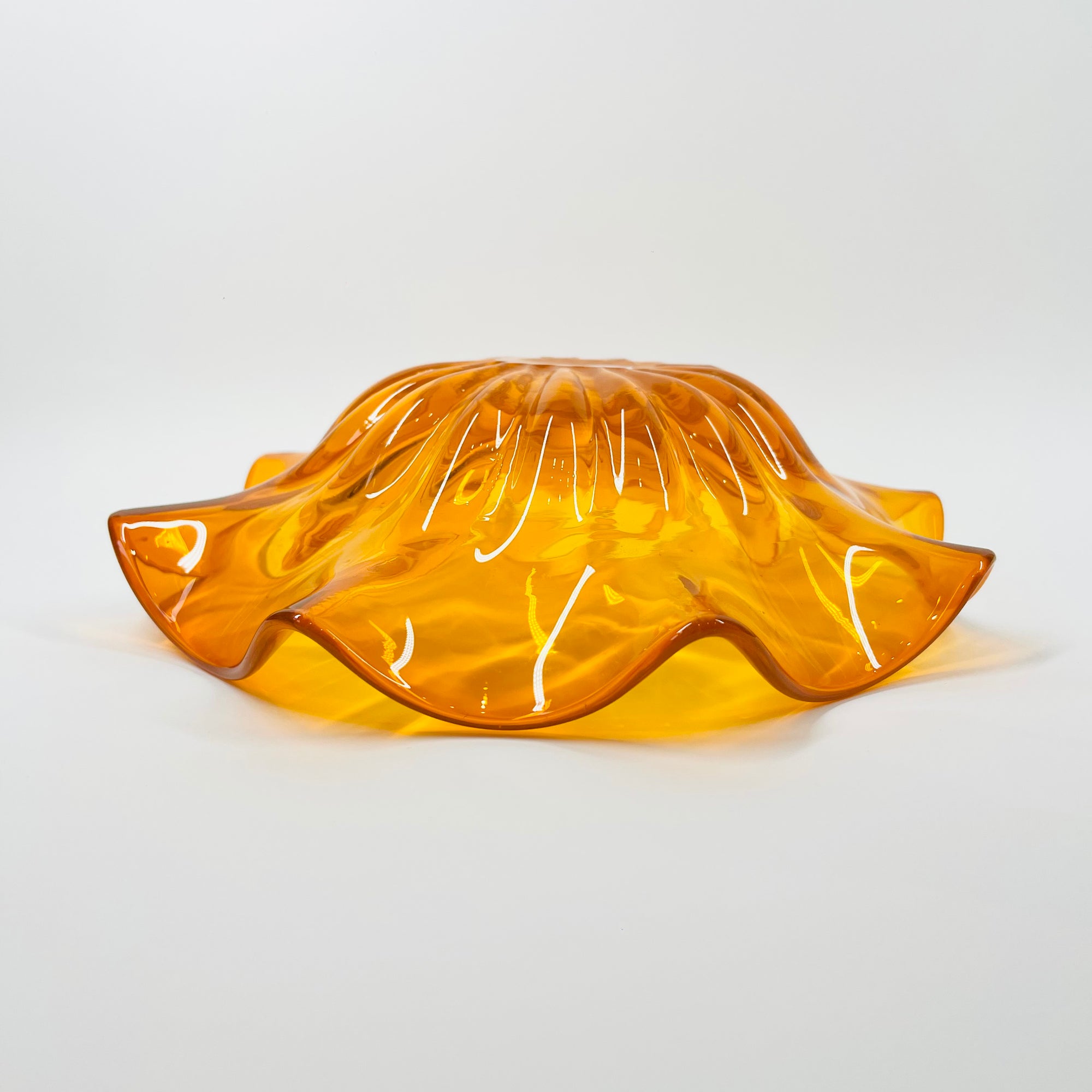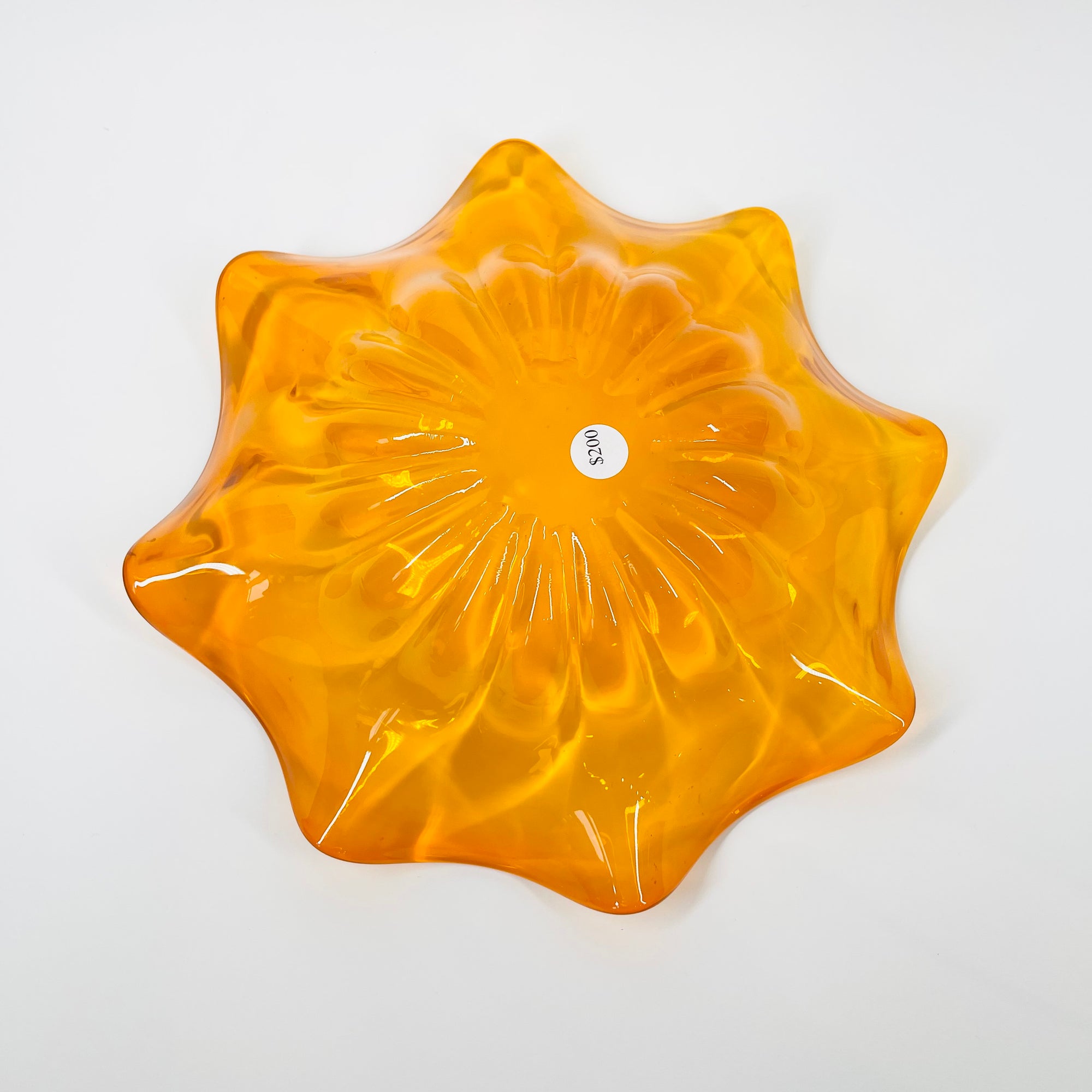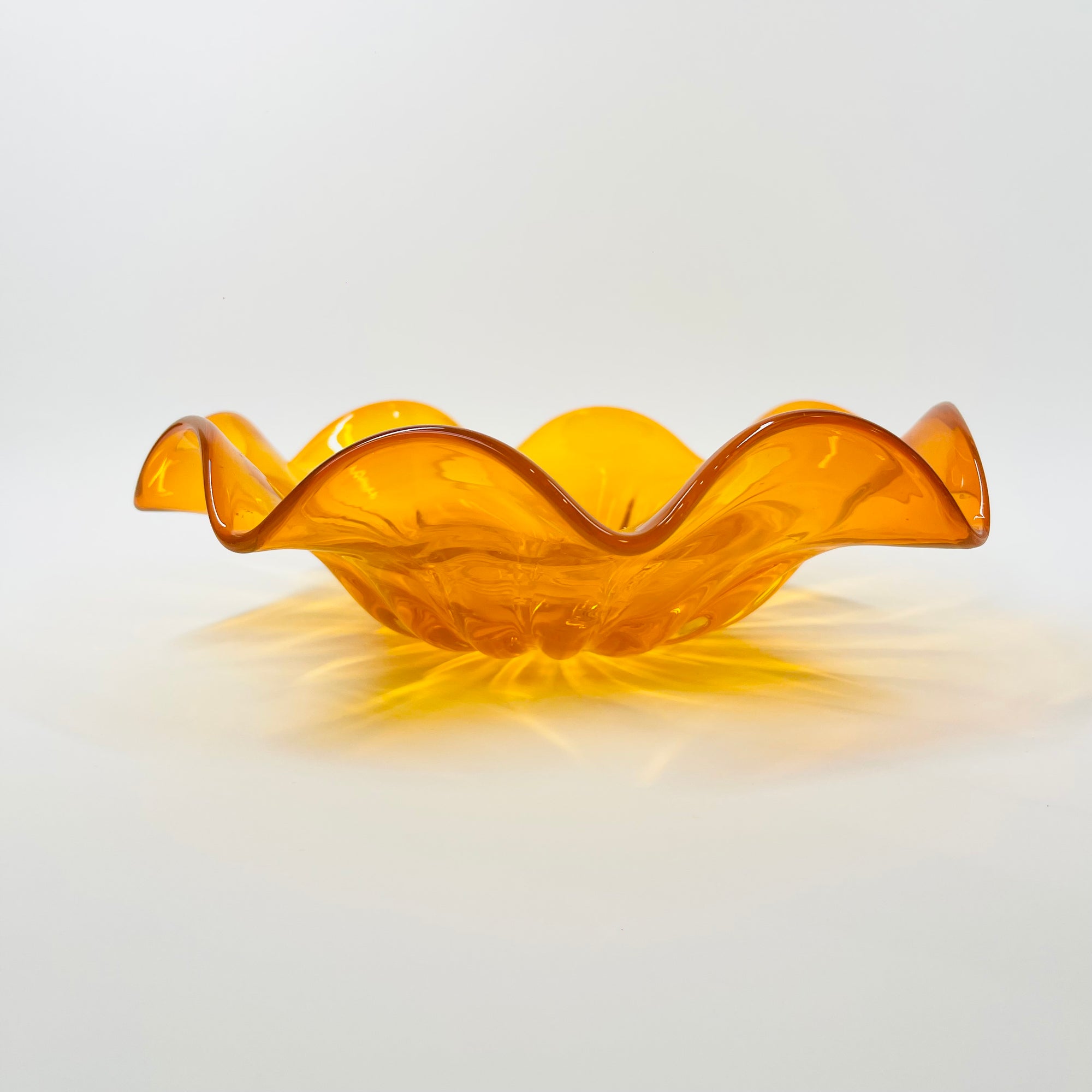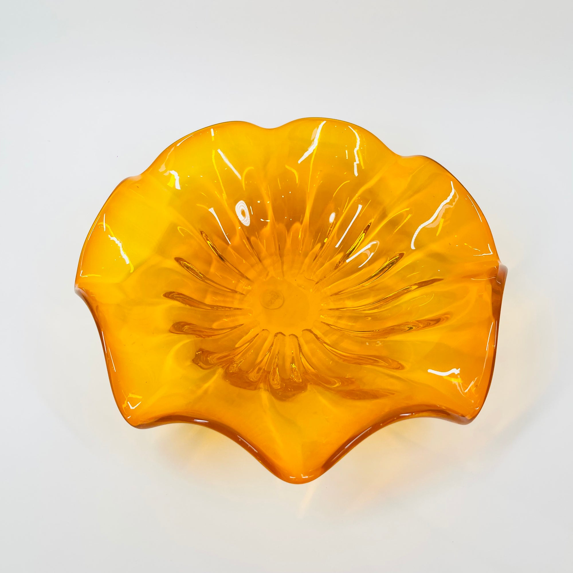 1970s JAPANESE MANDARIN ORANGE GLASS FLOWER BOWL