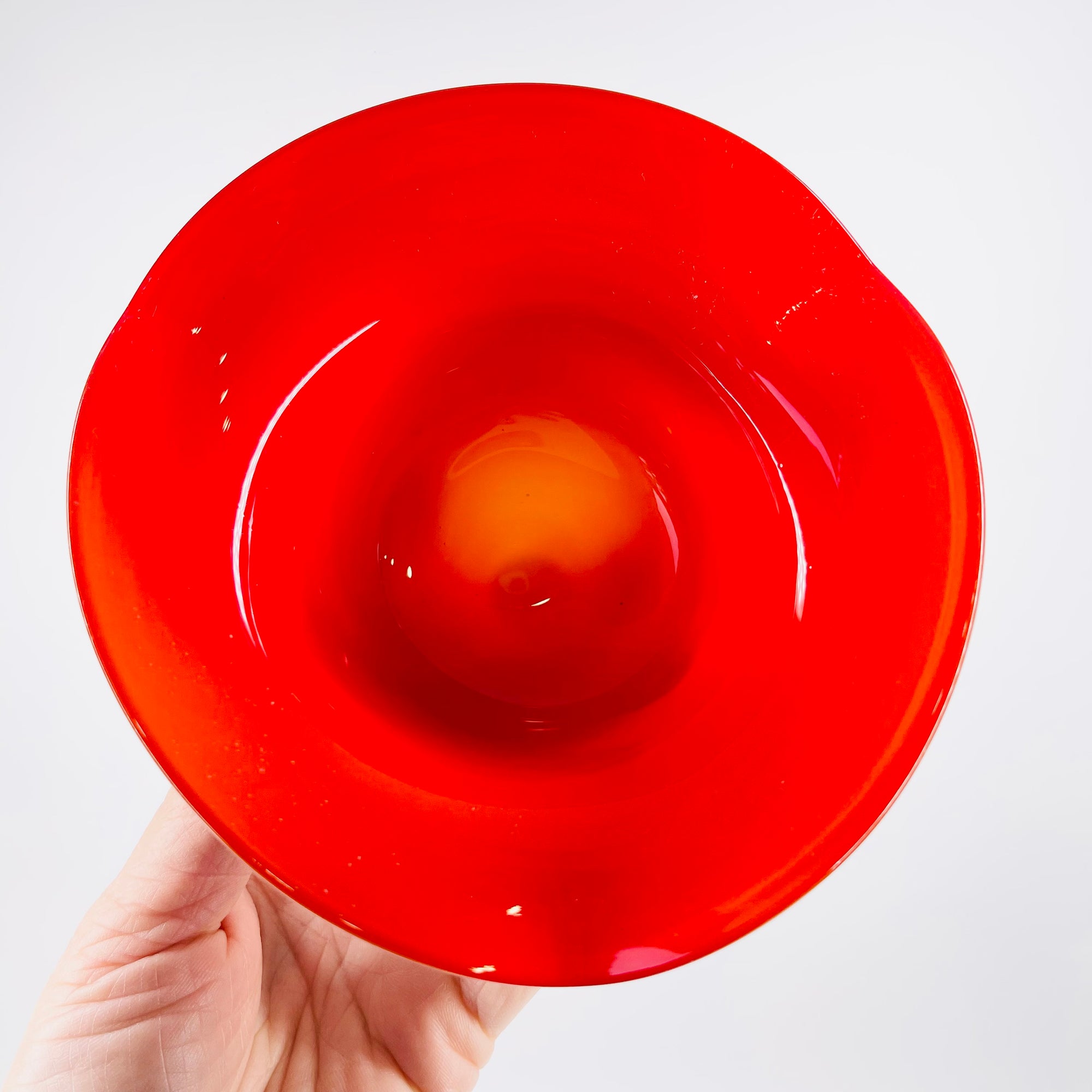 1970s JAPANESE CASED RED ORANGE GLASS ASHTRAY/BOWL