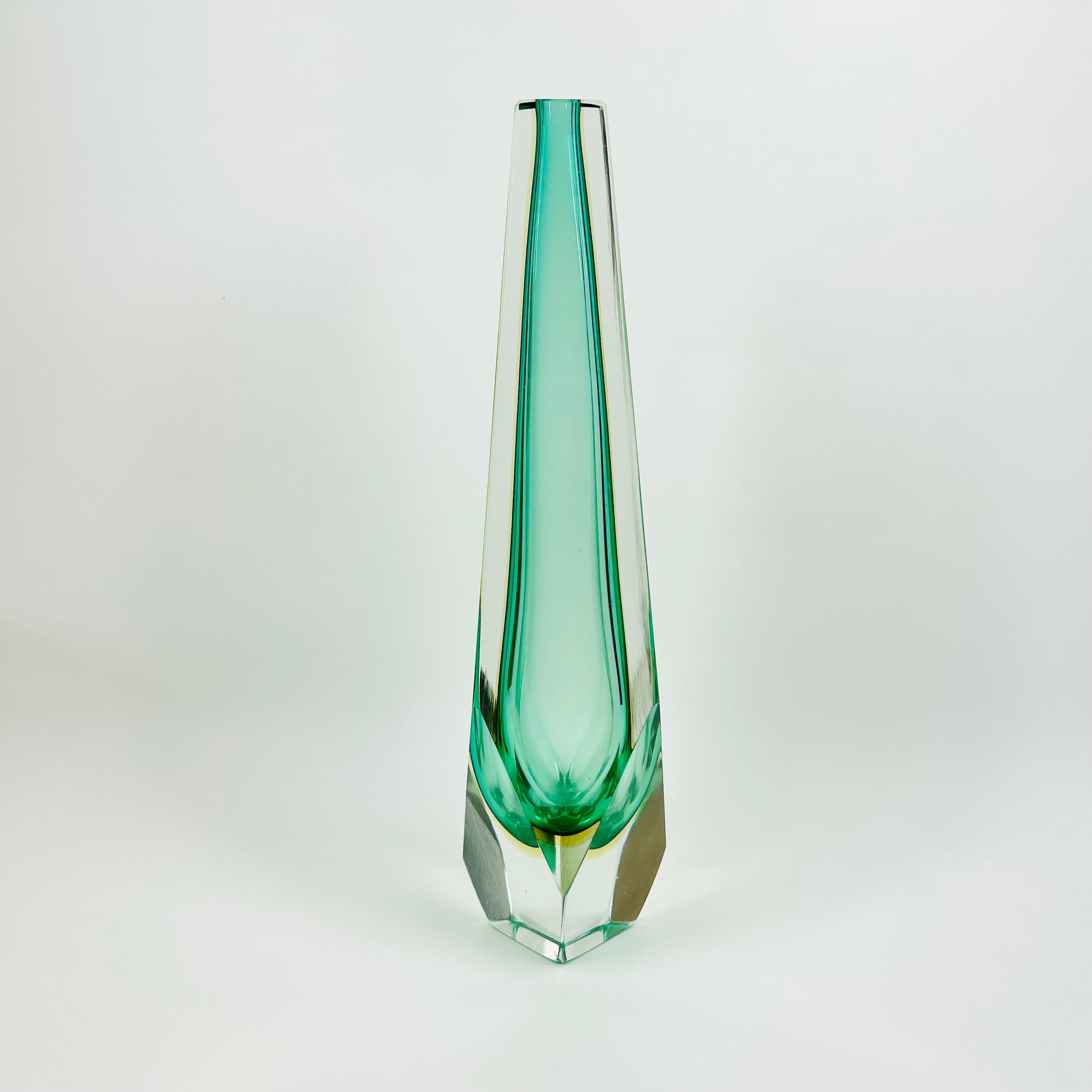 At first the company made glass lighting fixtures and then began producing ornaments, vases, ashtrays, and other art glass. Mandruzzato is probably best known for their geometric shaped vases and bowls, inspired by earlier work by Luigi and Gianfranco in collaboration with Pablo Picasso. The firm is now run by Gianfranco's son Alessandro Mandruzzato and became fully trademarked in 2011.