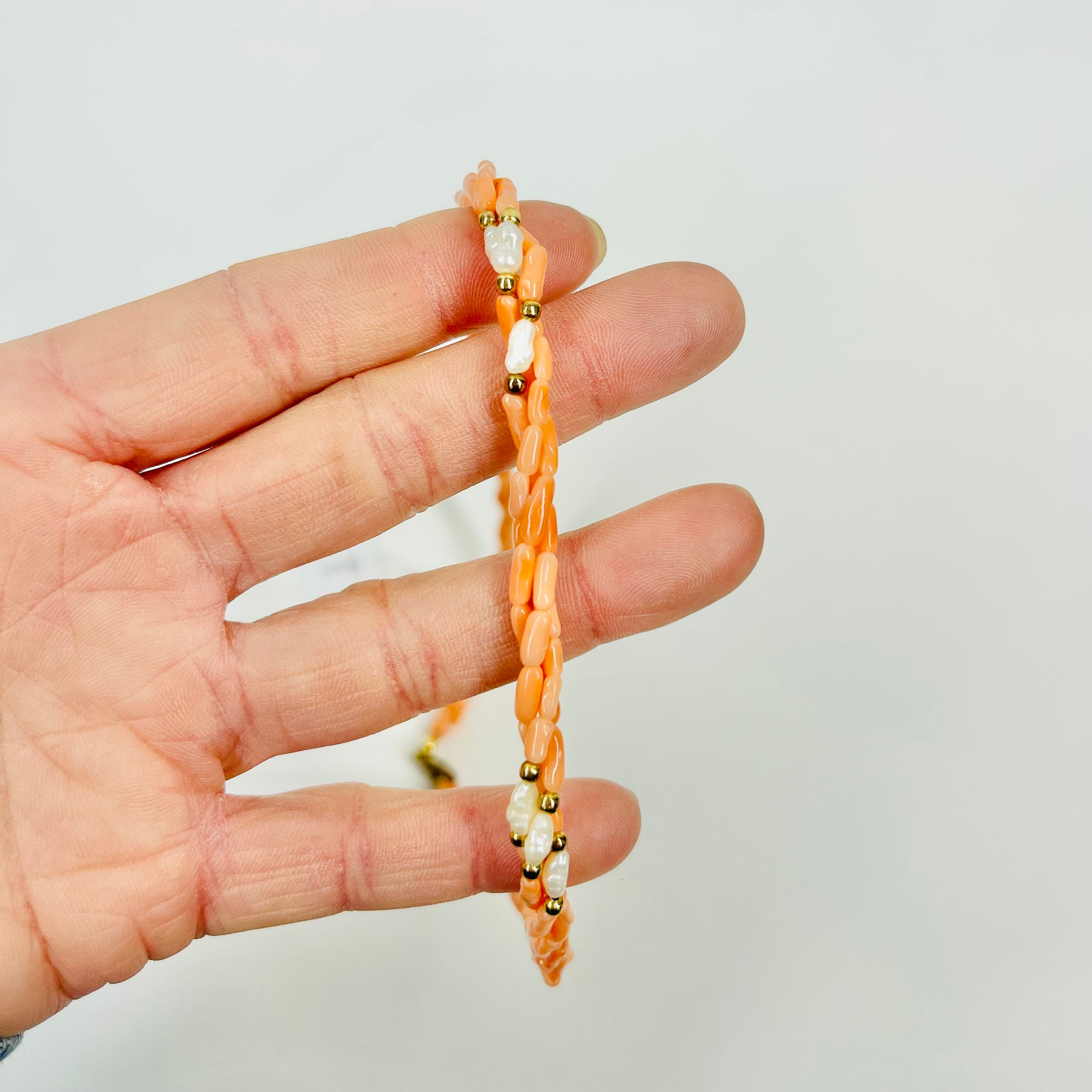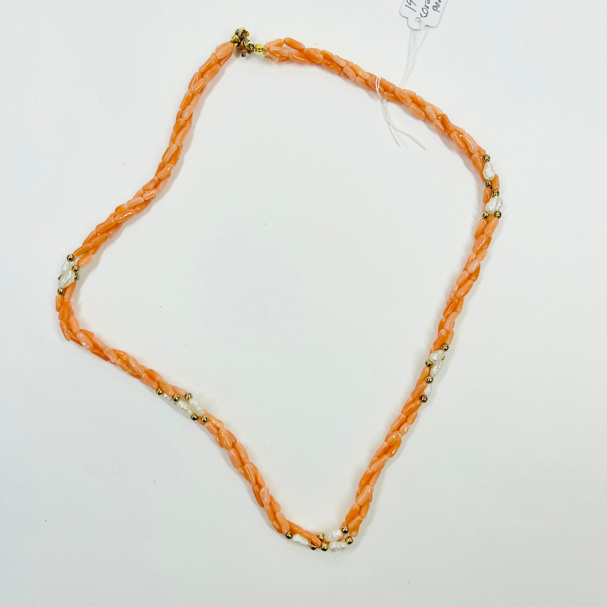 1950s CORAL & SEED PEARL BEADED NECKLACE