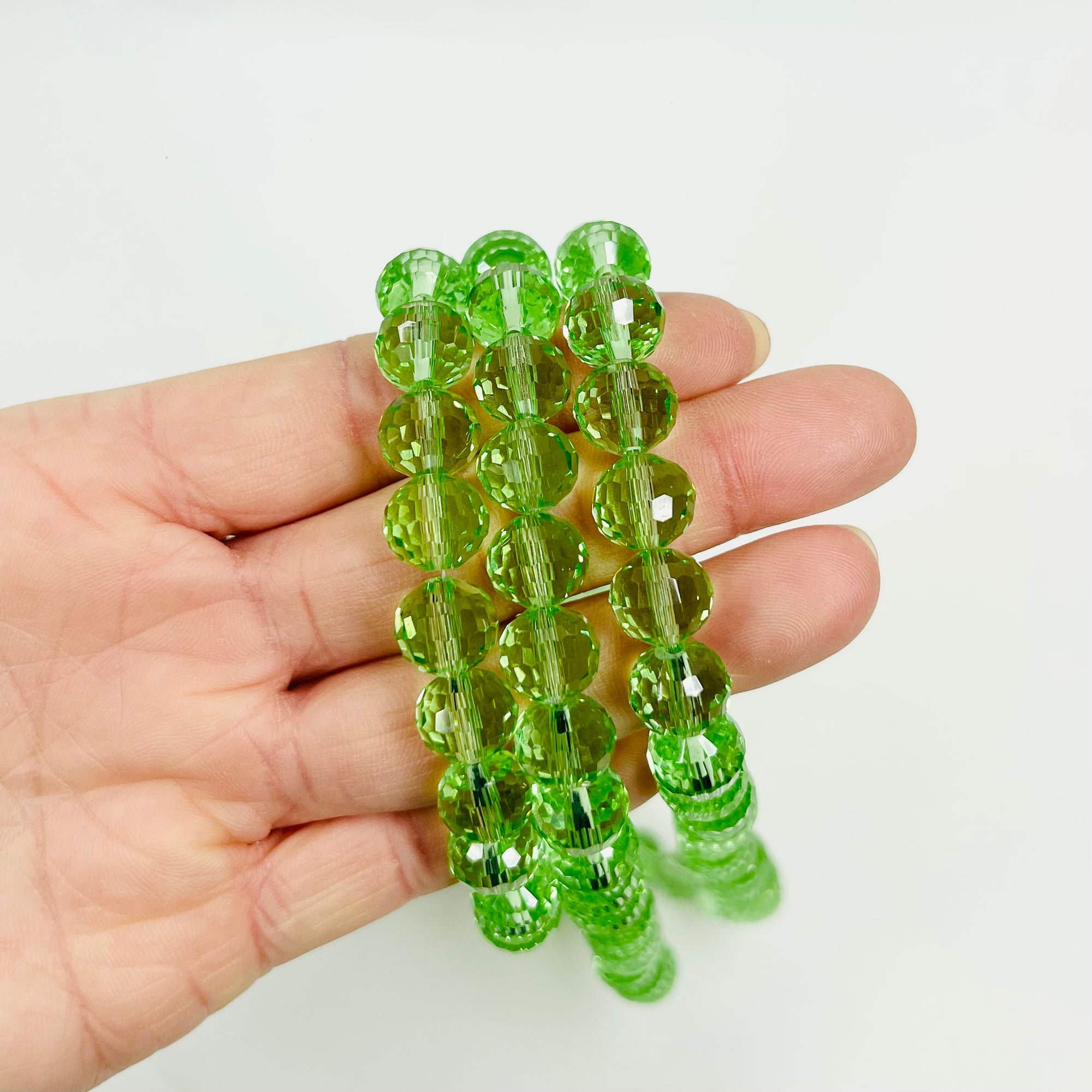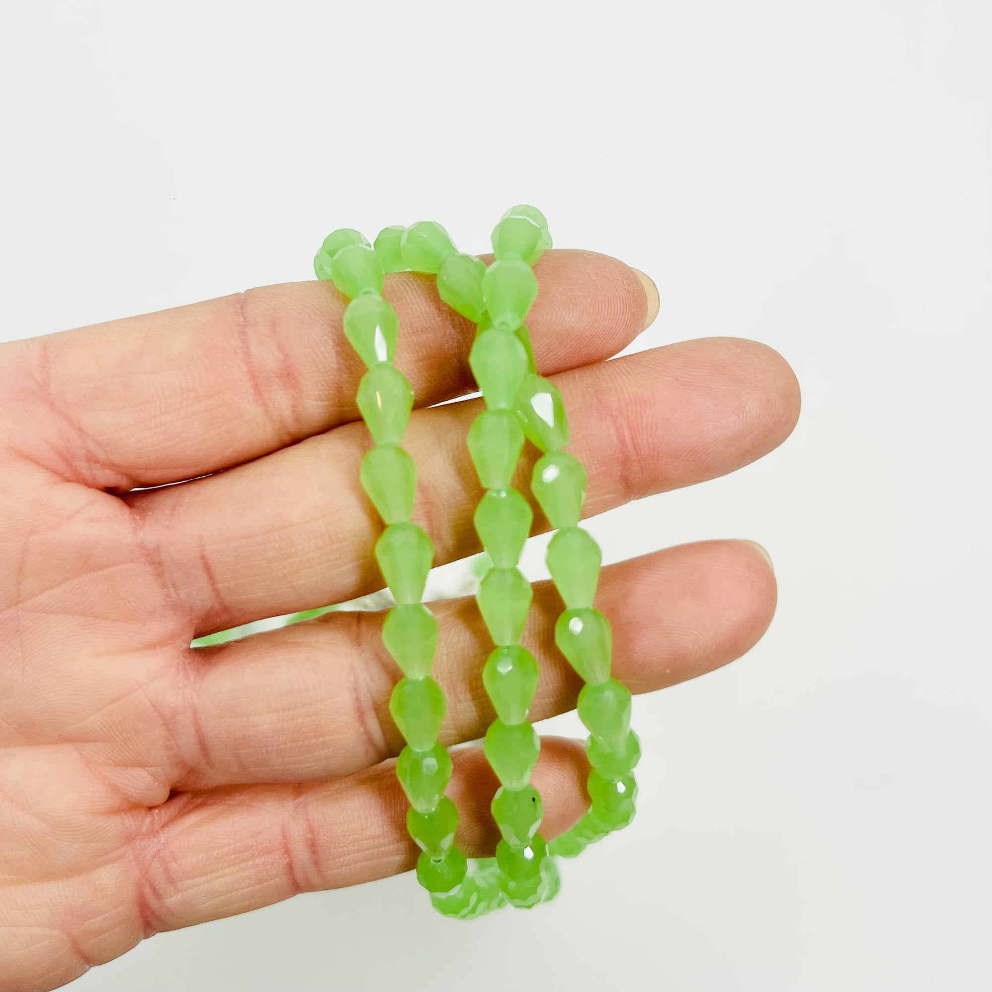 VINTAGE MULTI-STRANDS GREEN AUSTRIAN IRIDESCENT CRYSTAL BEADS NECKLACE