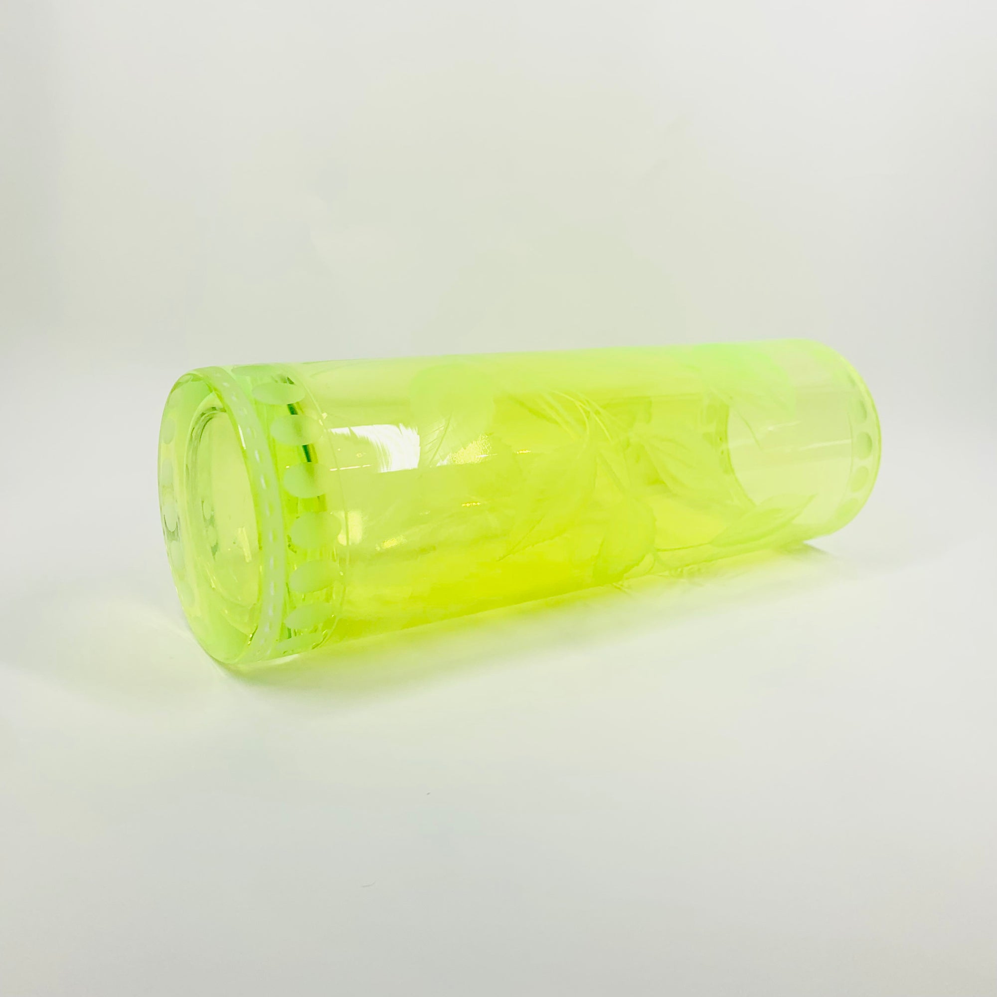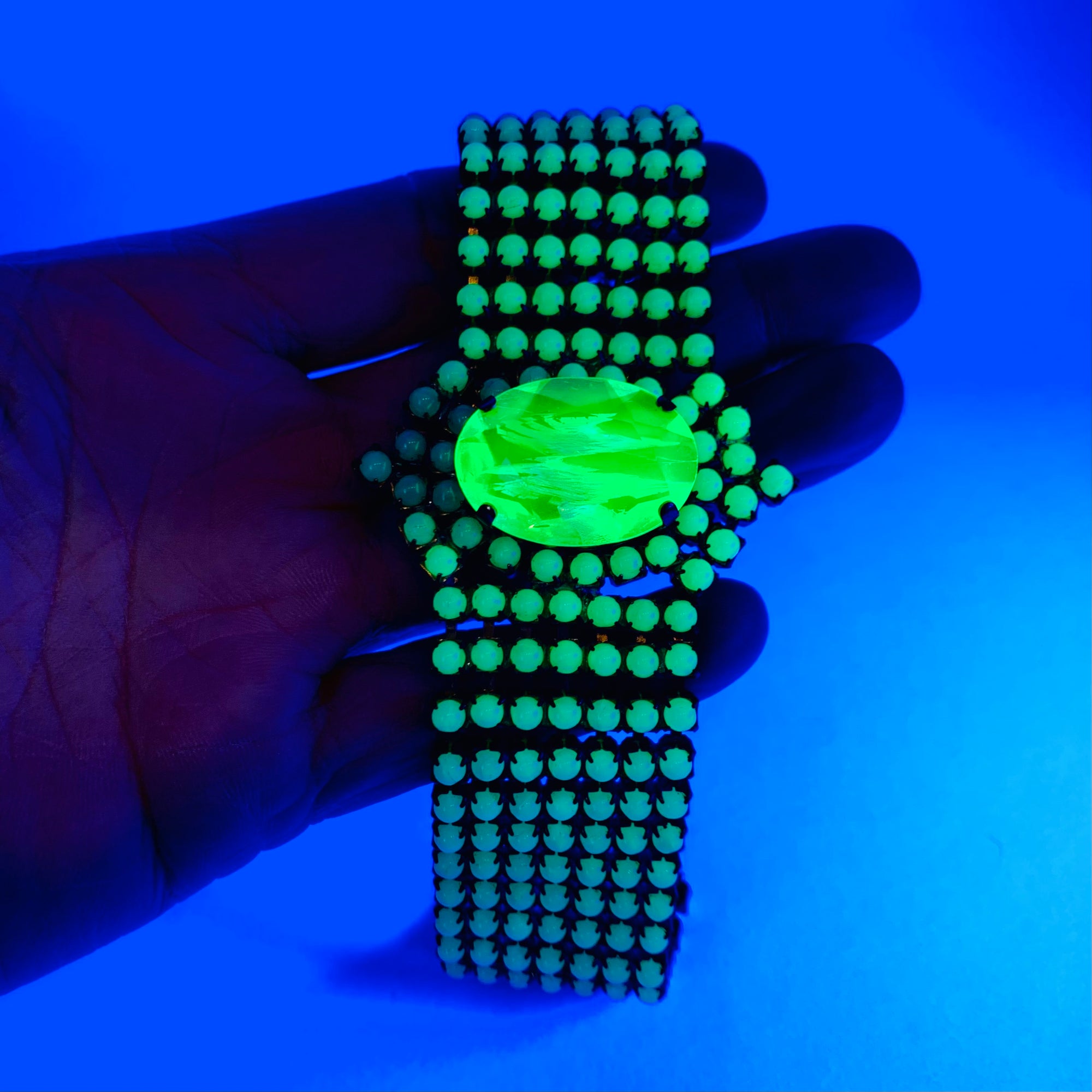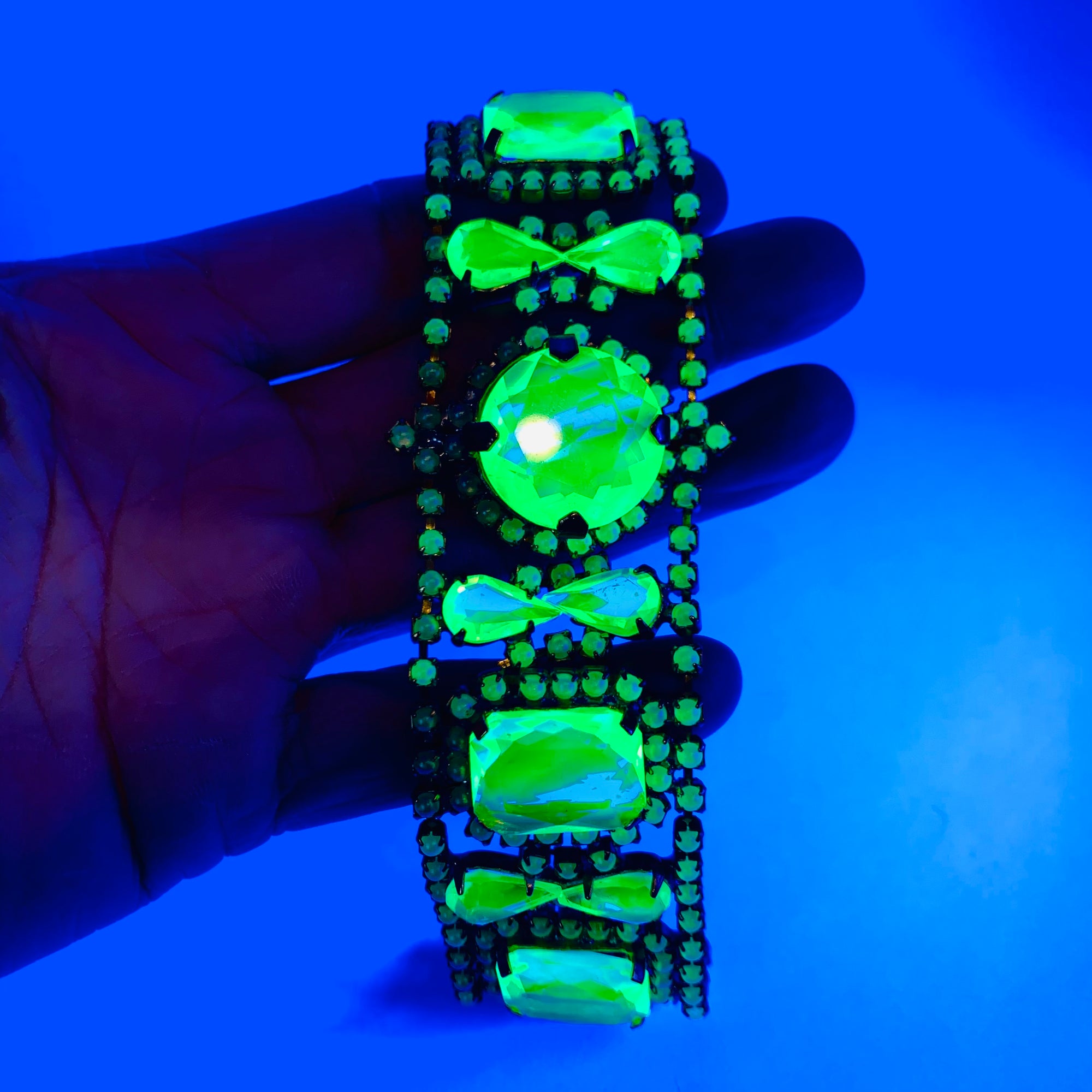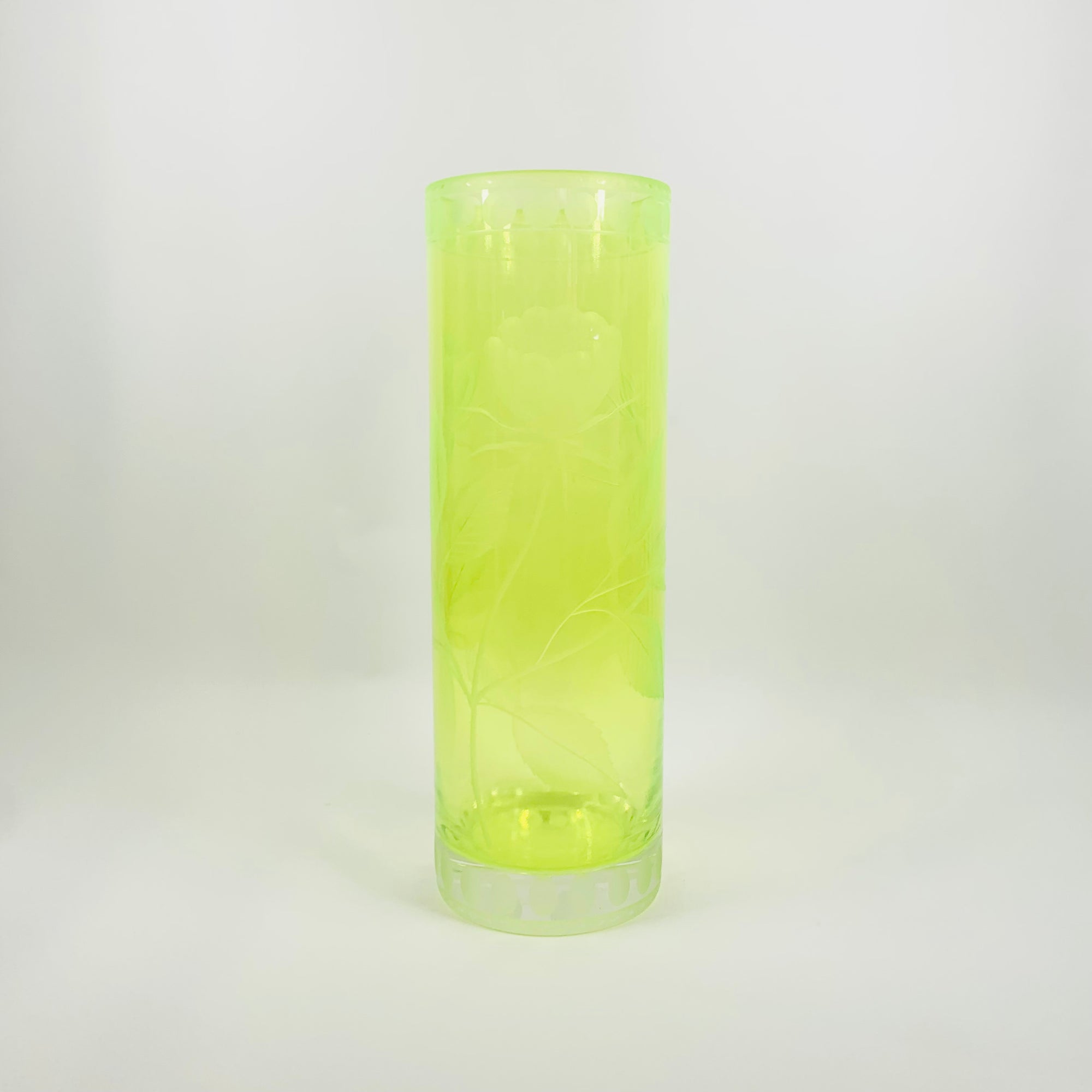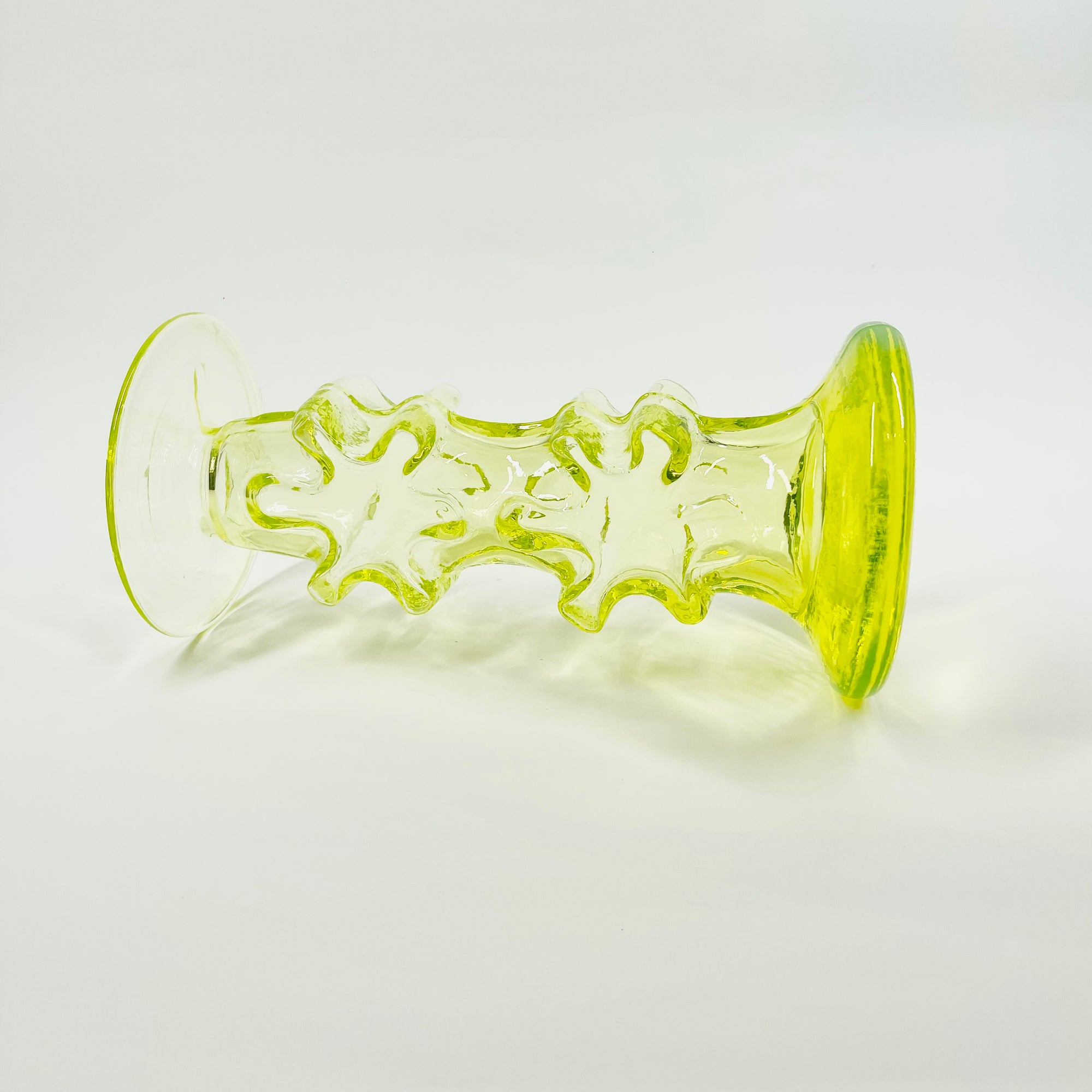 We recommend that you view our display at night when all the uranium glass pieces are lit up to have the full experience. We are also posting daily on our Instagram and Facebook page editorial photos of each item where we discuss at length about how they were made and the history behind their maker.