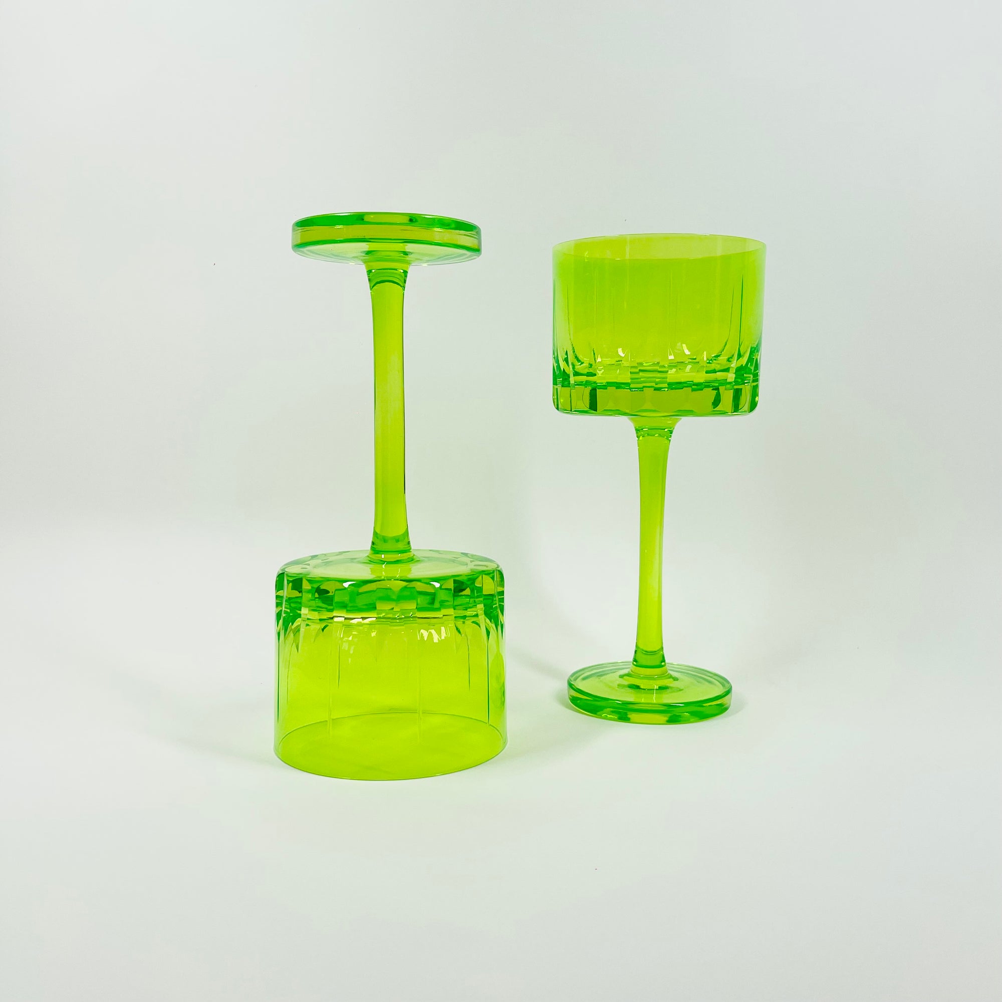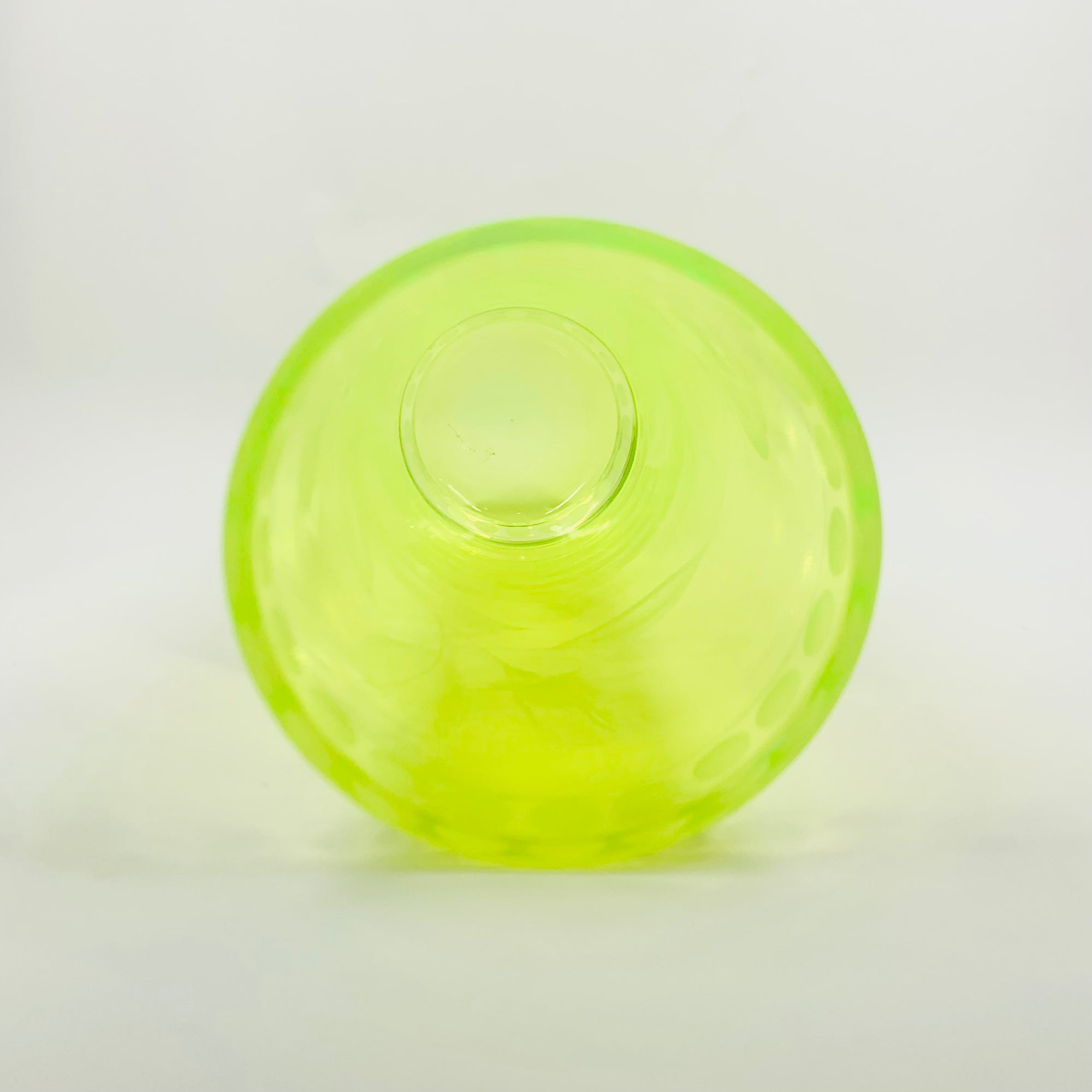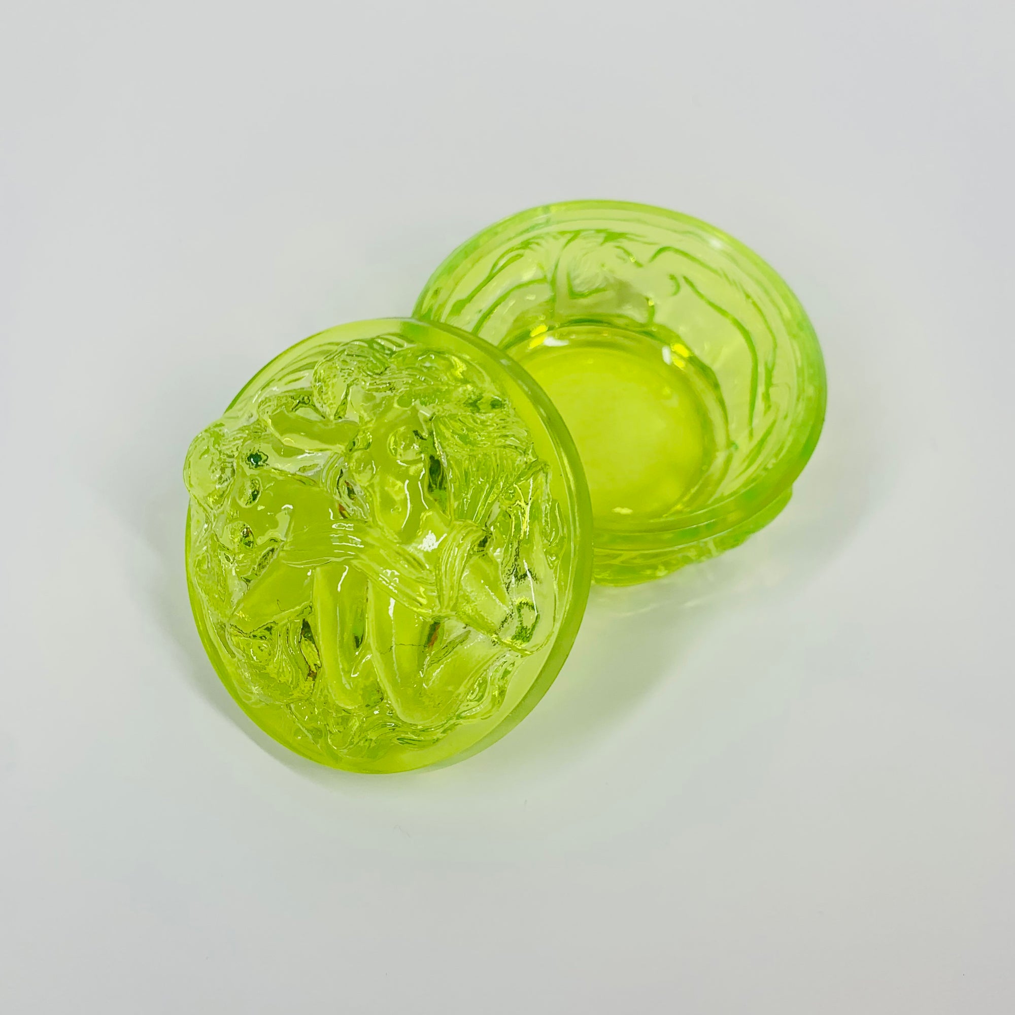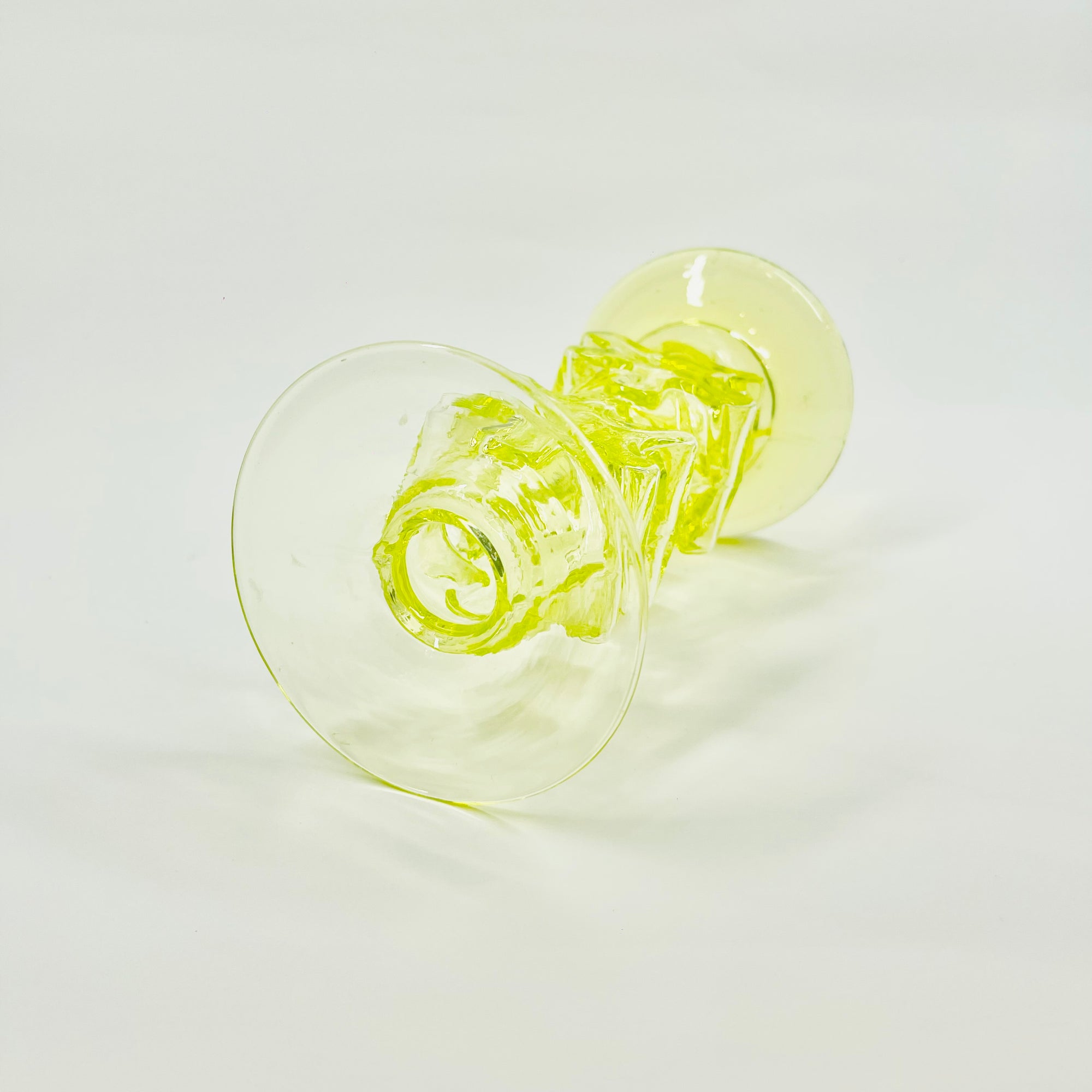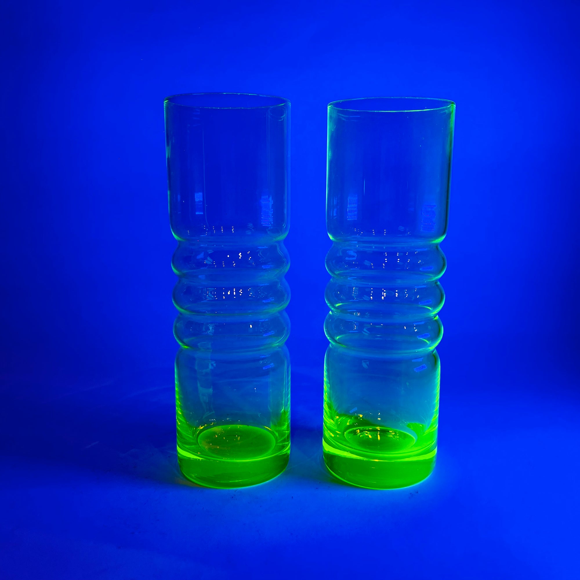 We recommend that you view our display at night when all the uranium glass pieces are lit up to have the full experience. We are also posting daily on our Instagram and Facebook page editorial photos of each item where we discuss at length about how they were made and the history behind their maker.