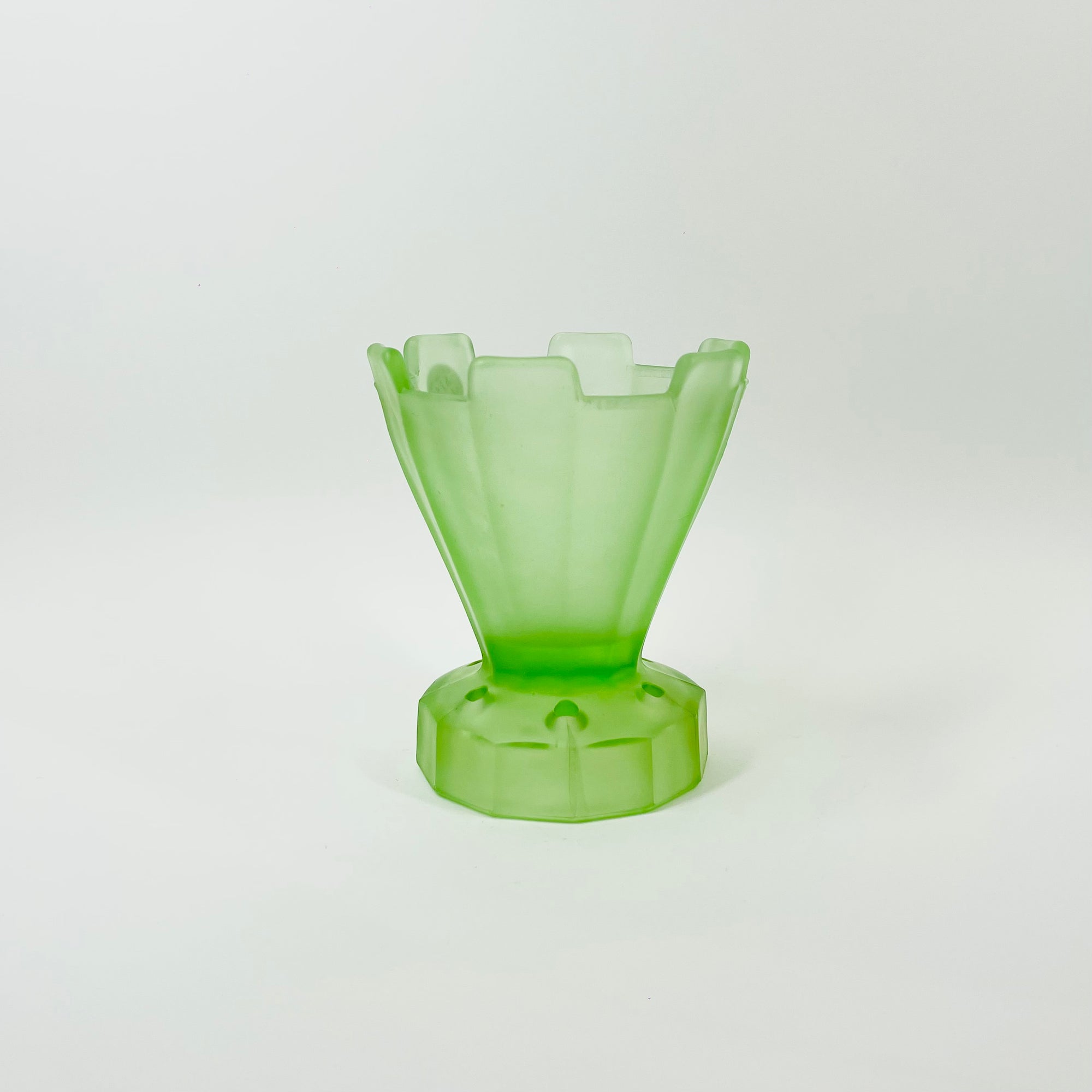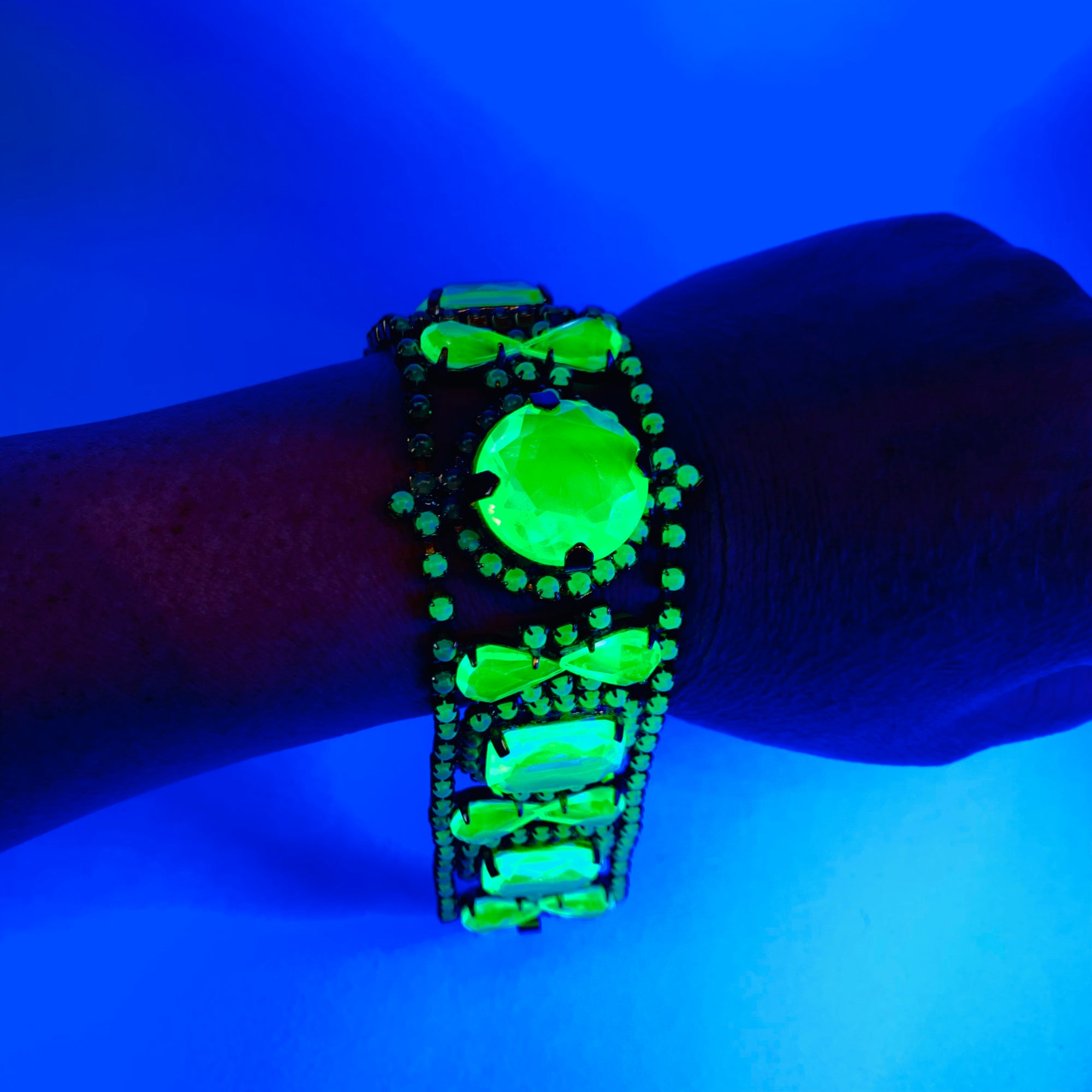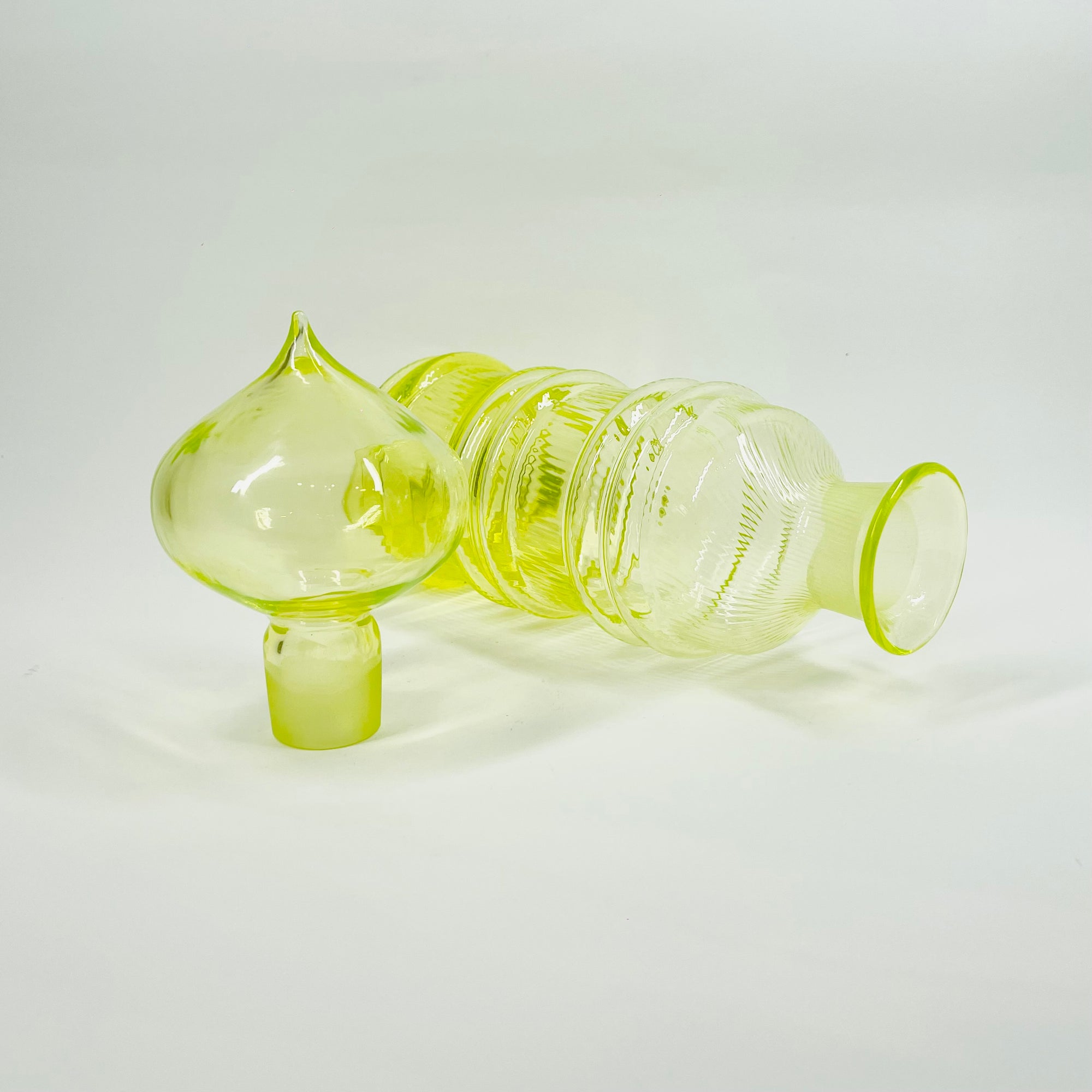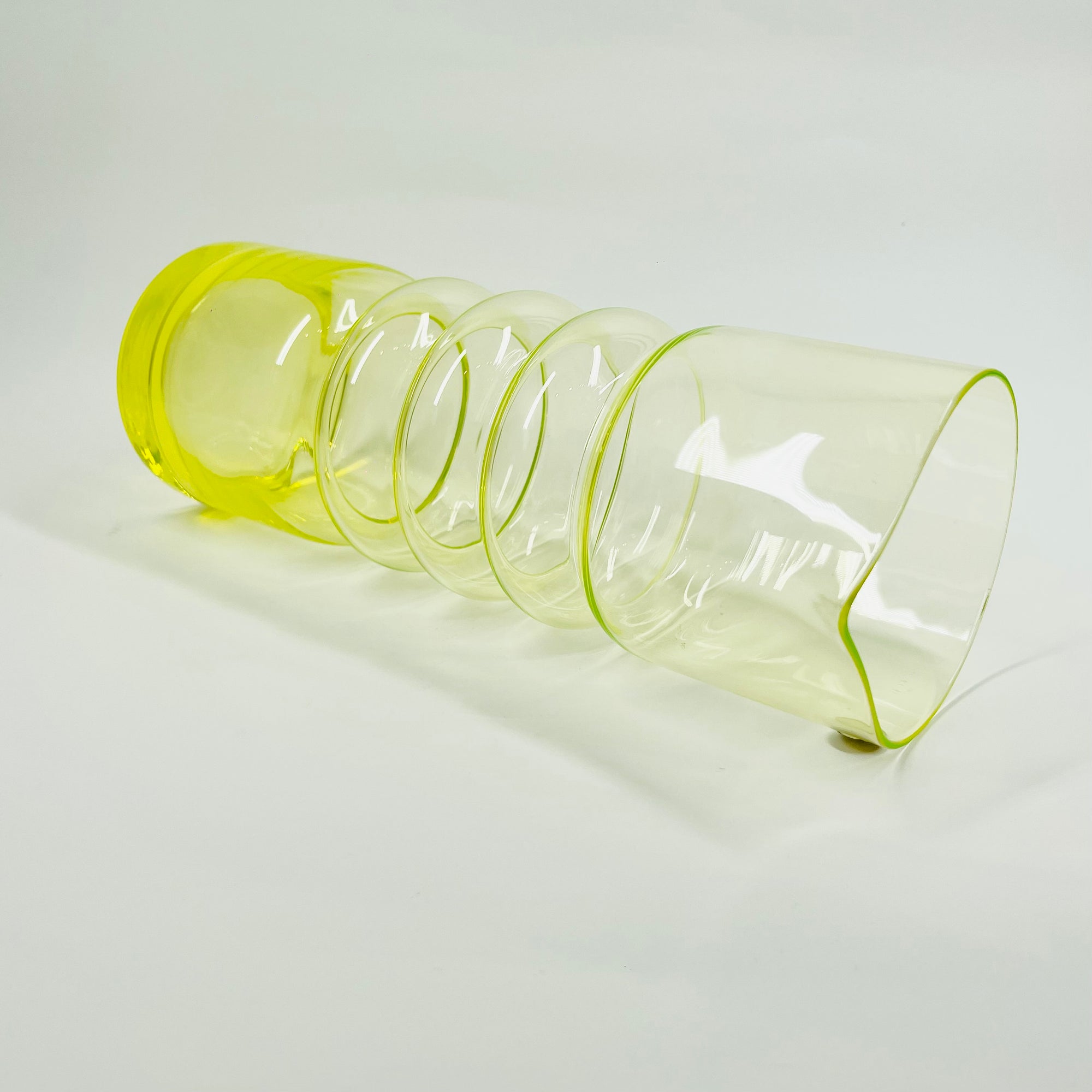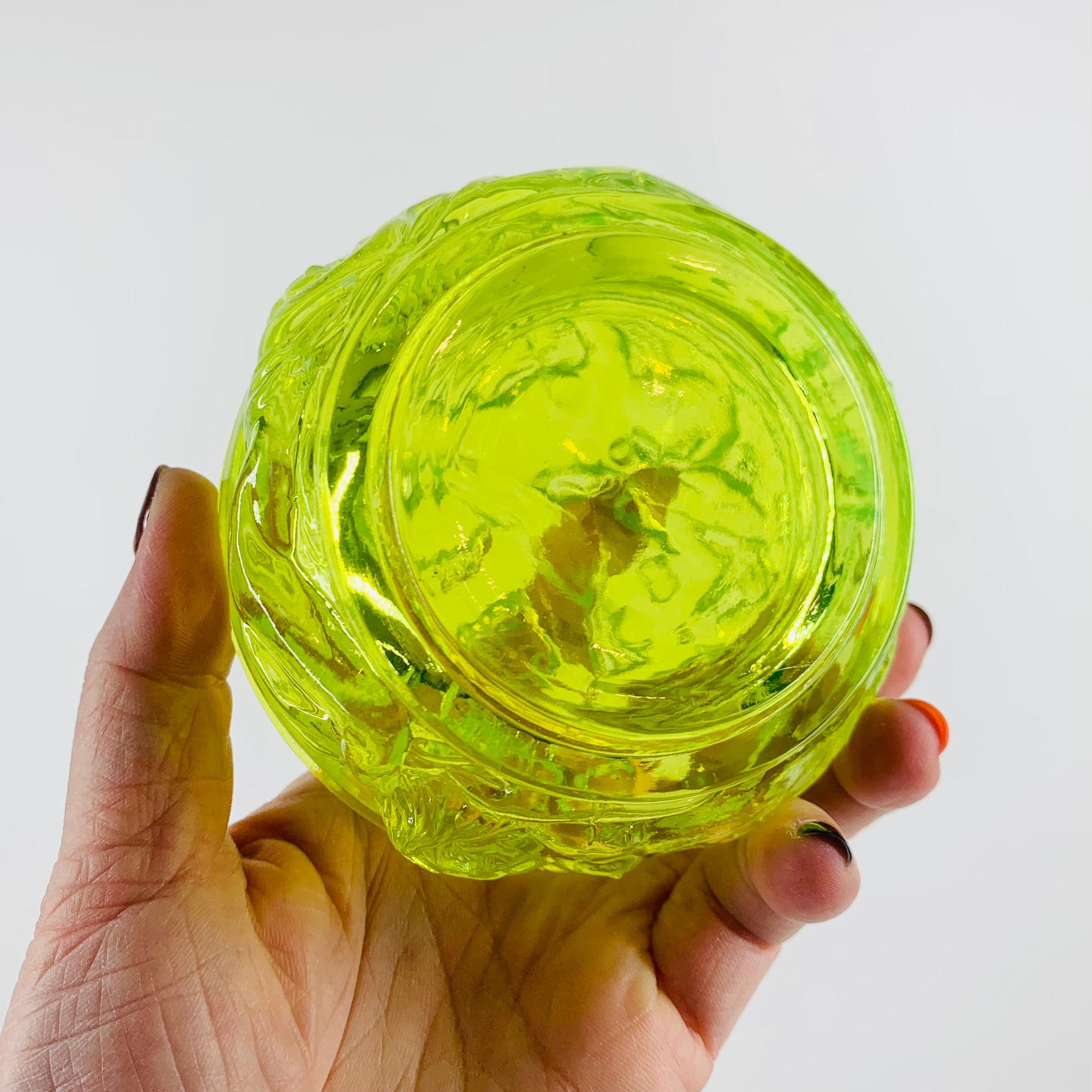 We recommend that you view our display at night when all the uranium glass pieces are lit up to have the full experience. We are also posting daily on our Instagram and Facebook page editorial photos of each item where we discuss at length about how they were made and the history behind their maker.