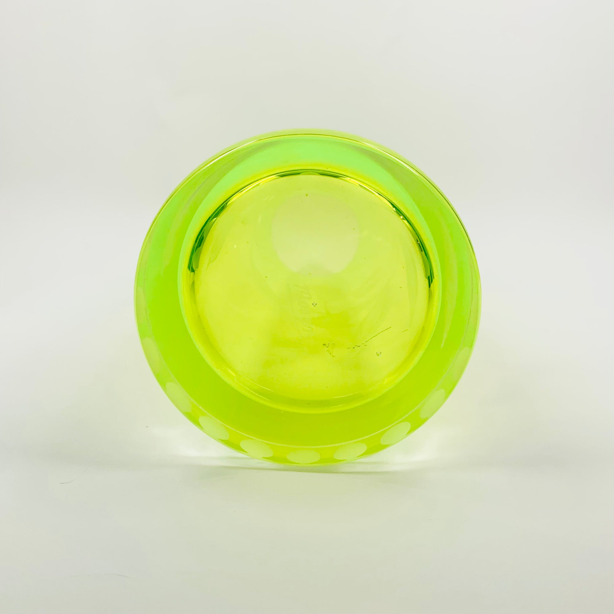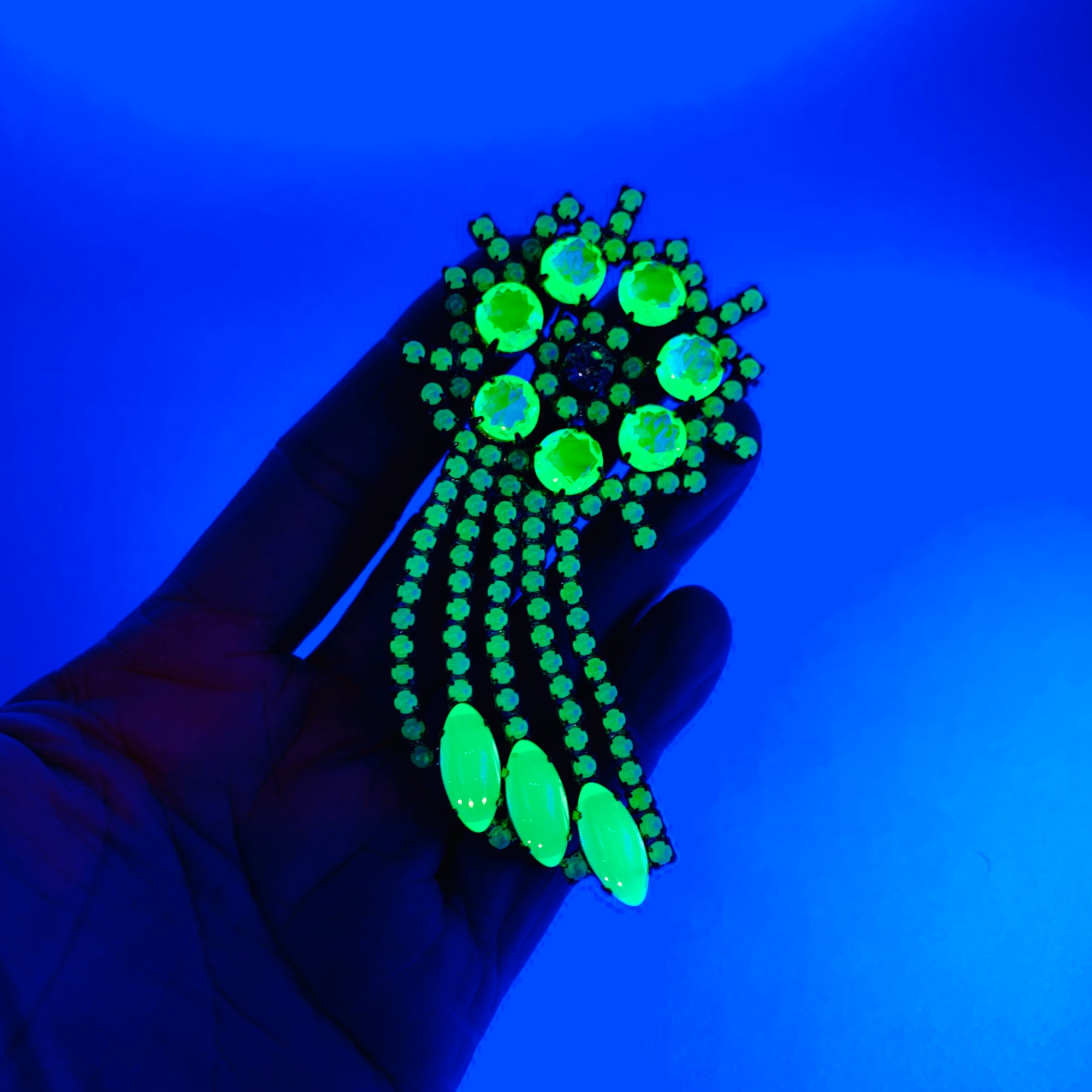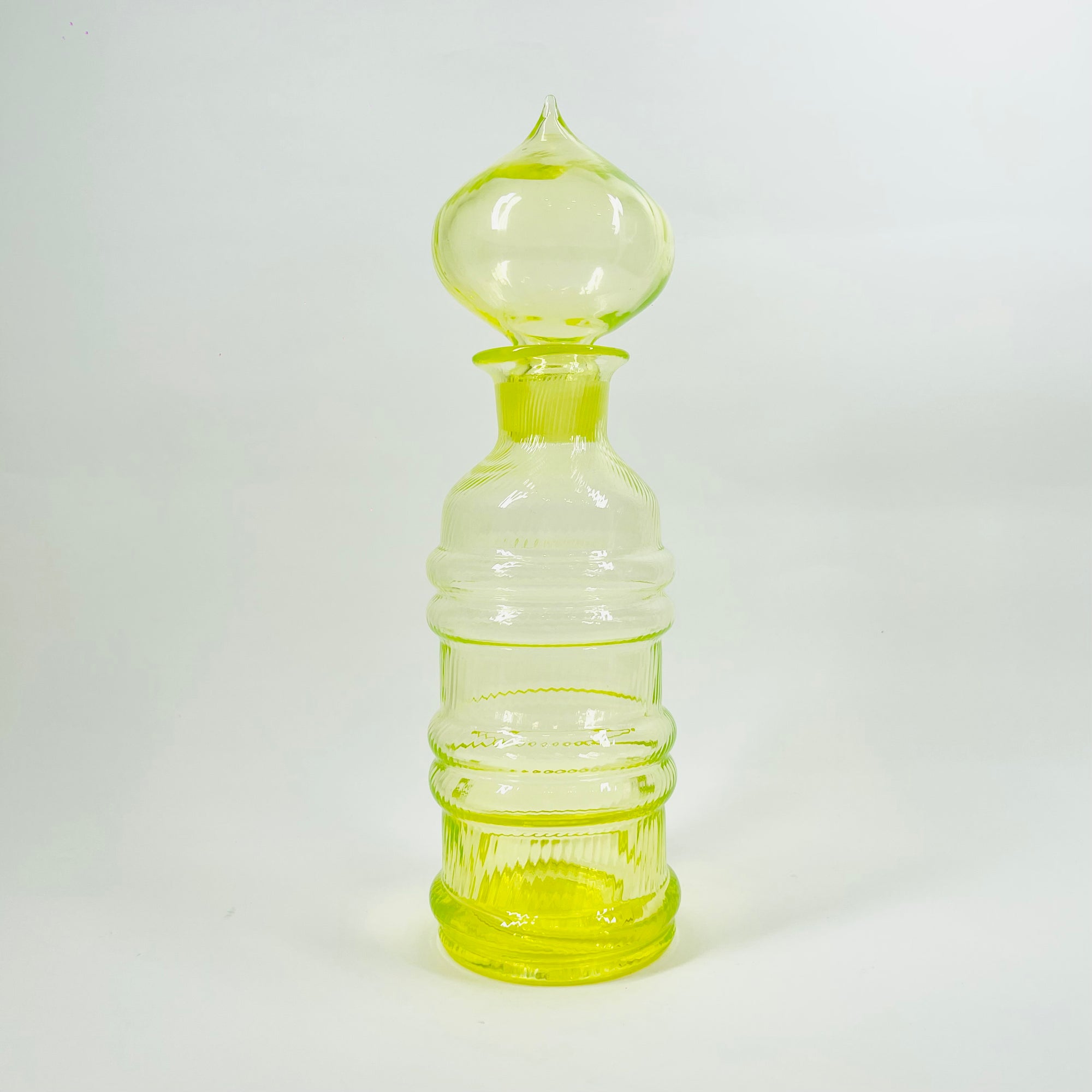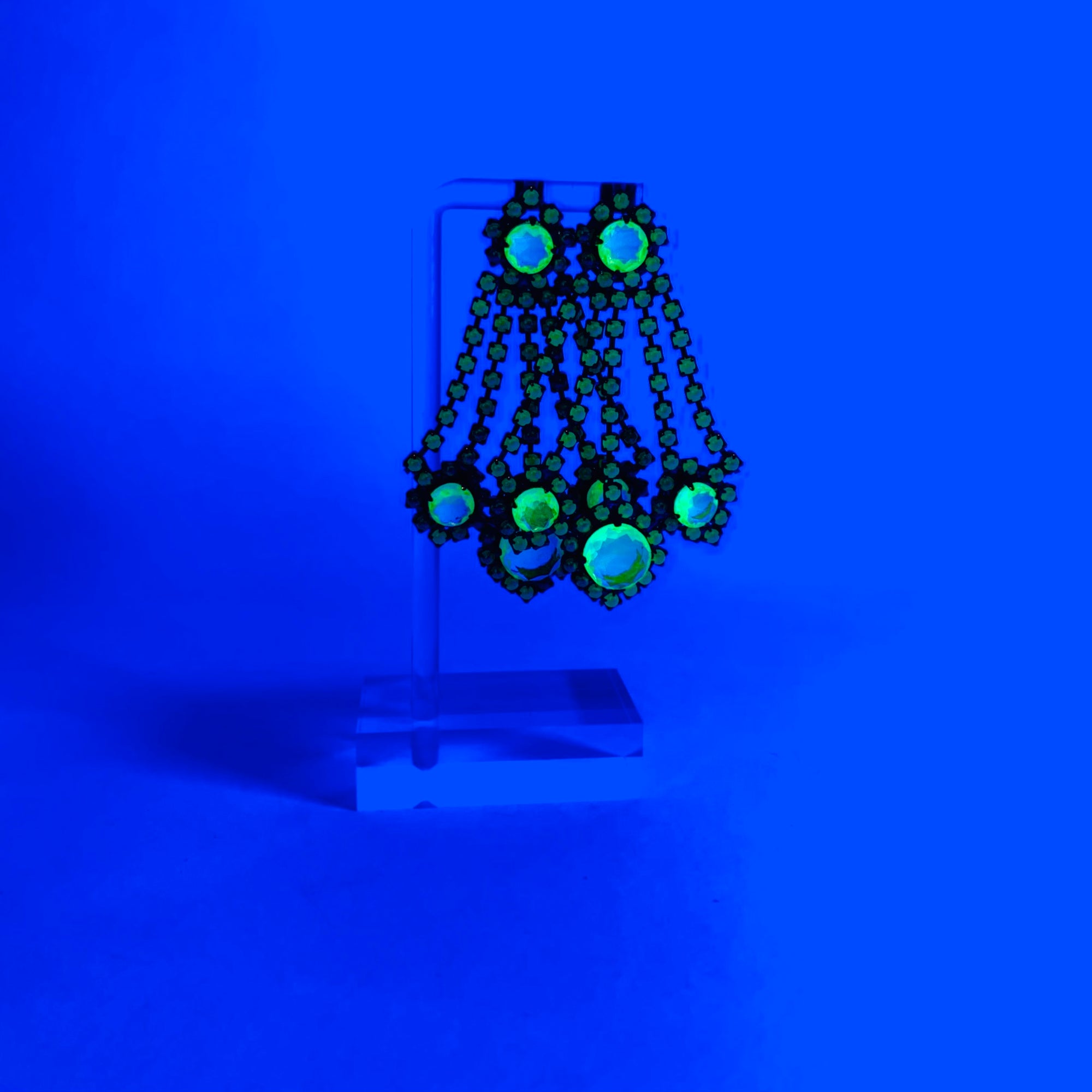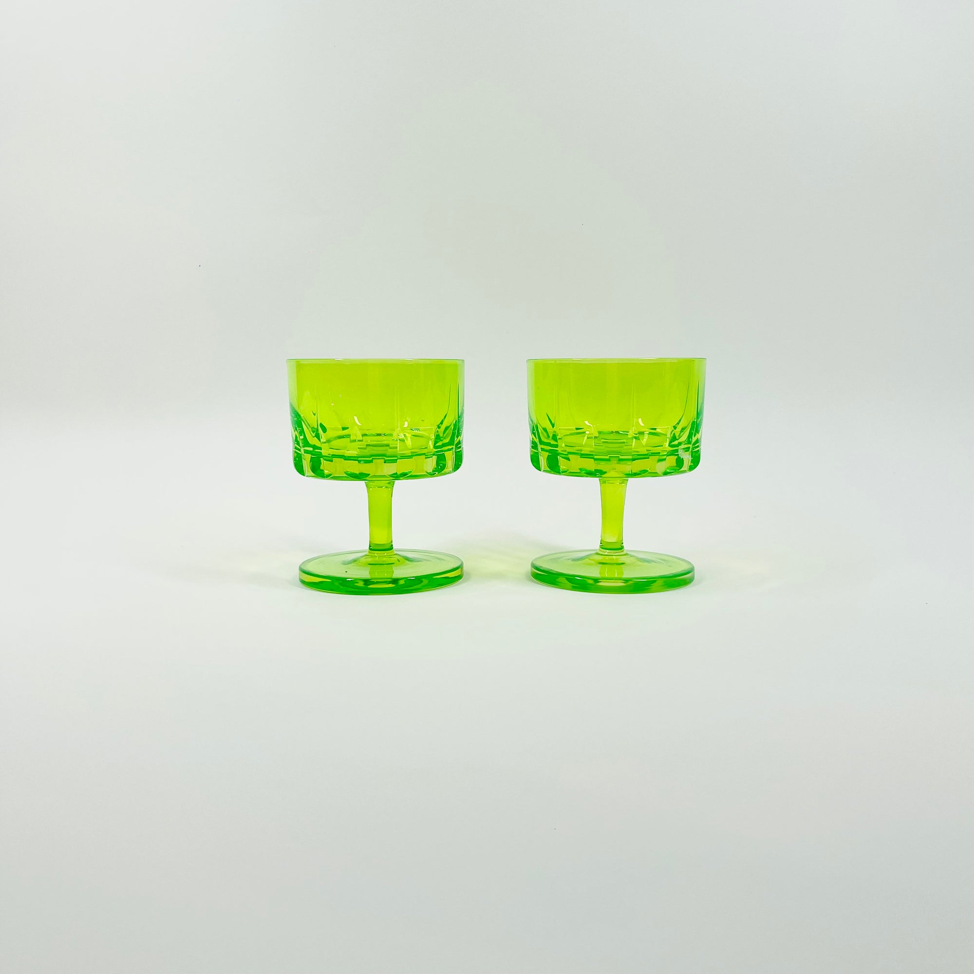 We recommend that you view our display at night when all the uranium glass pieces are lit up to have the full experience. We are also posting daily on our Instagram and Facebook page editorial photos of each item where we discuss at length about how they were made and the history behind their maker.