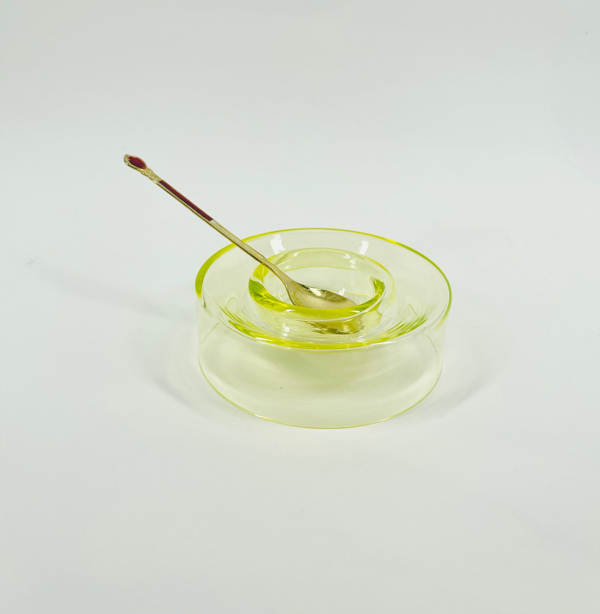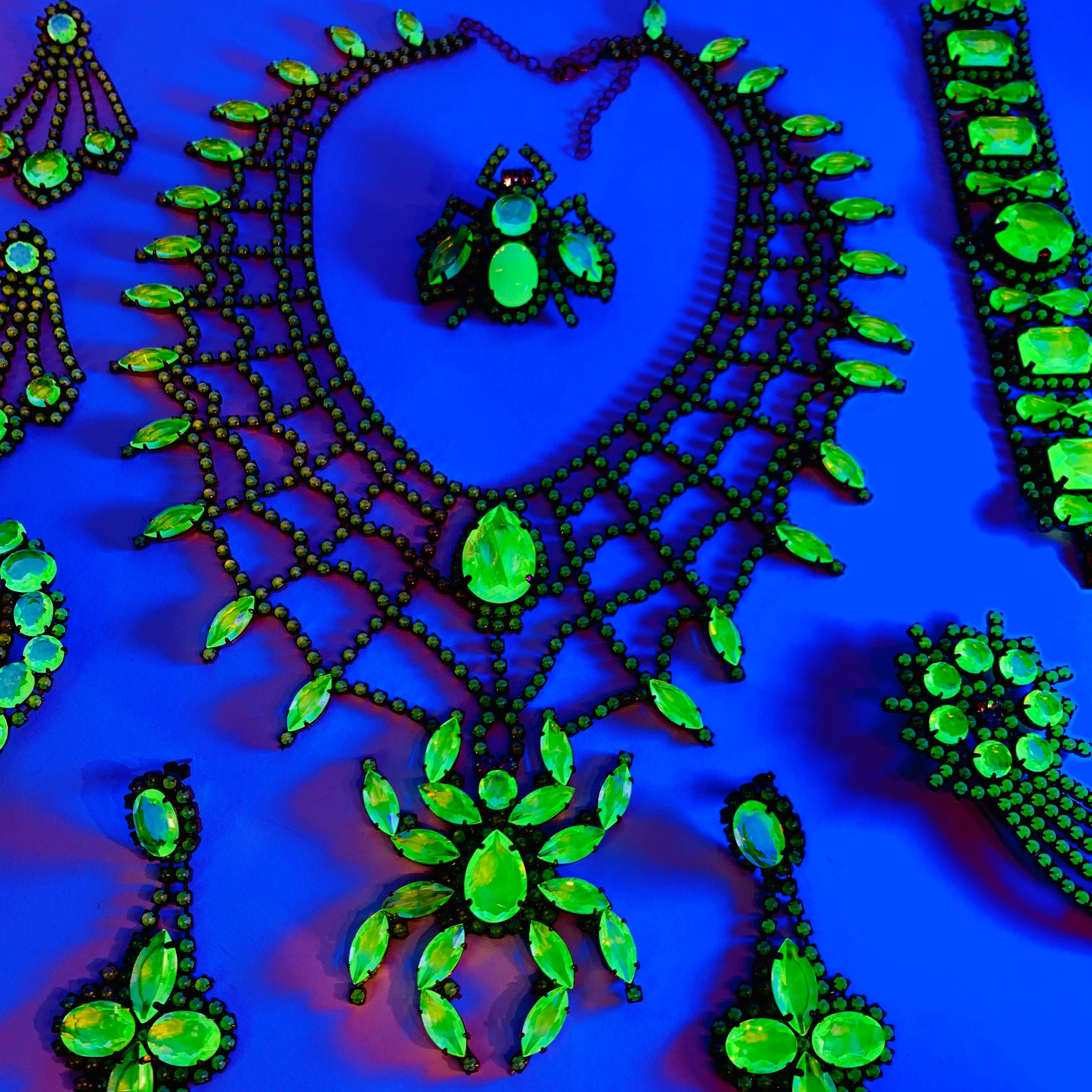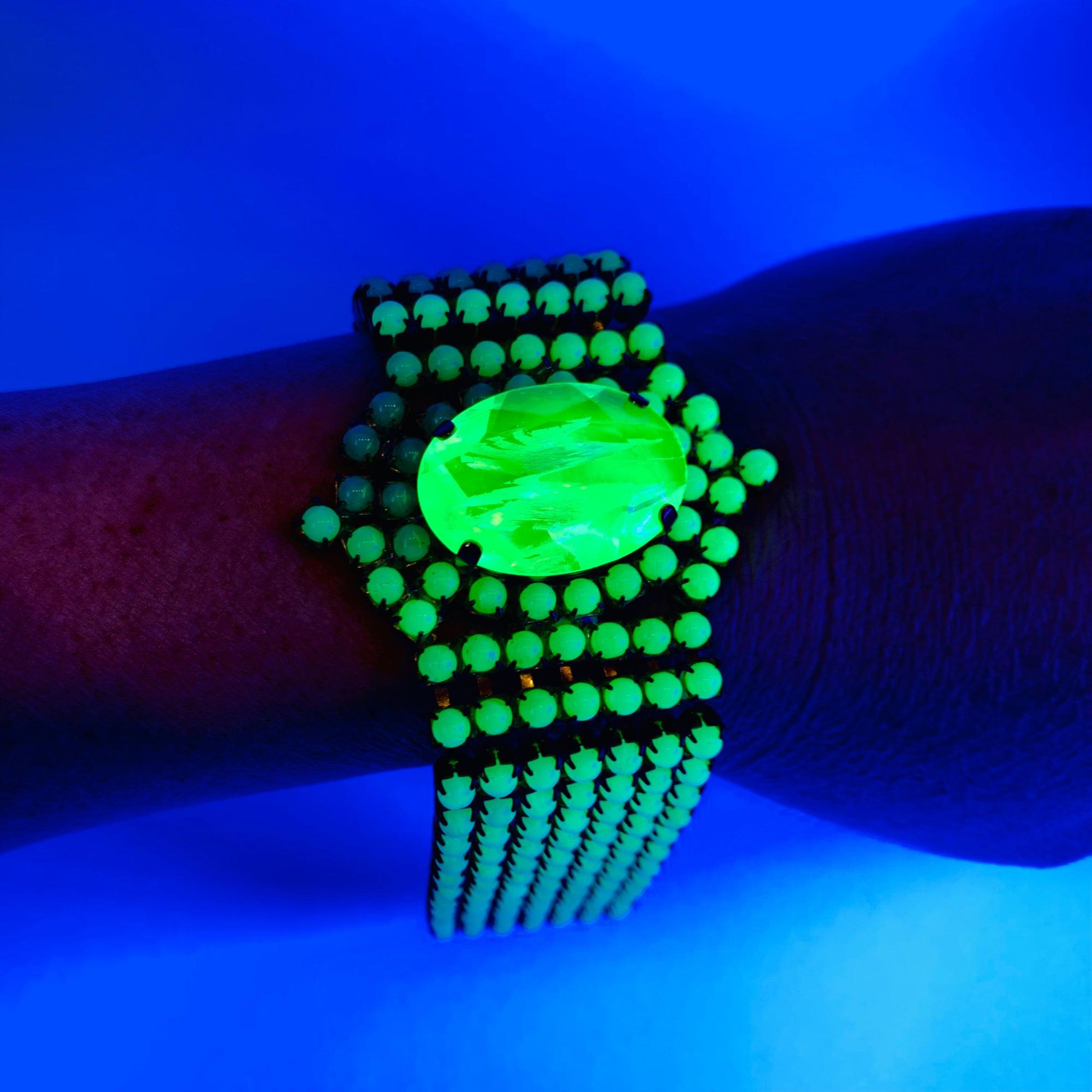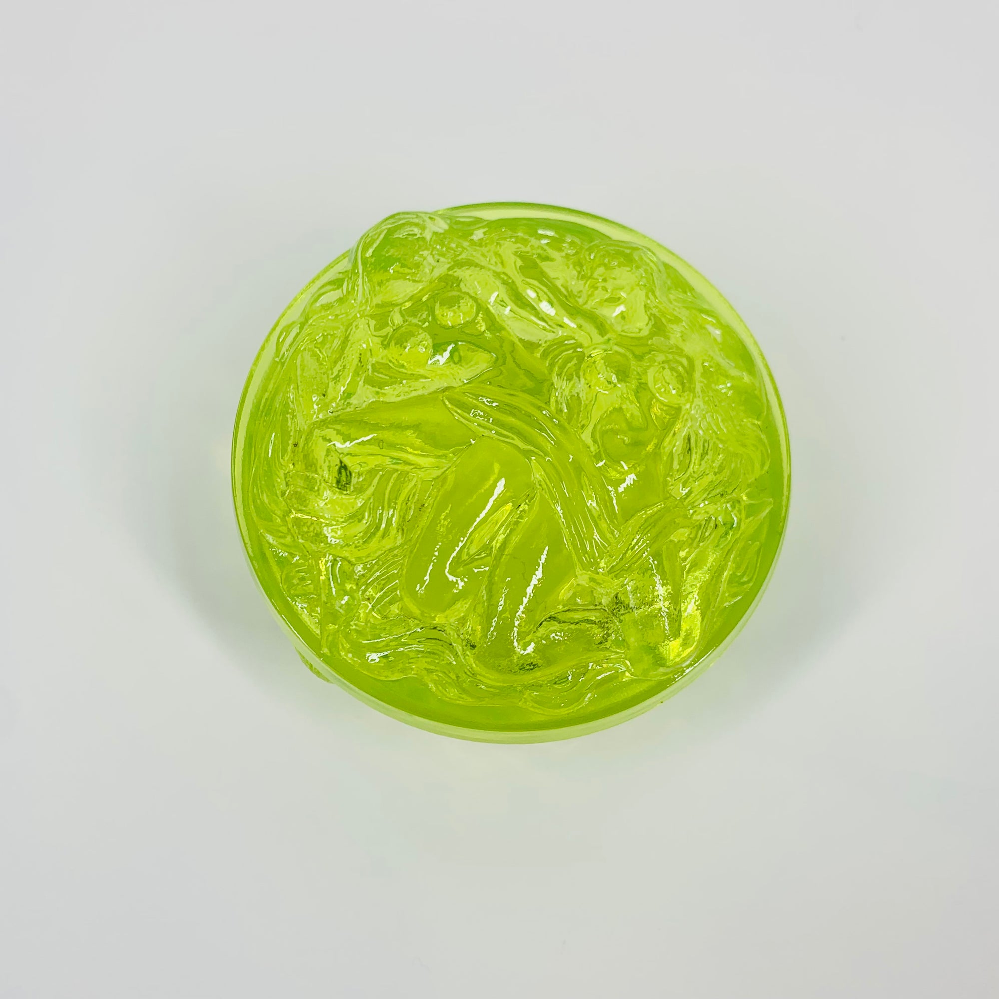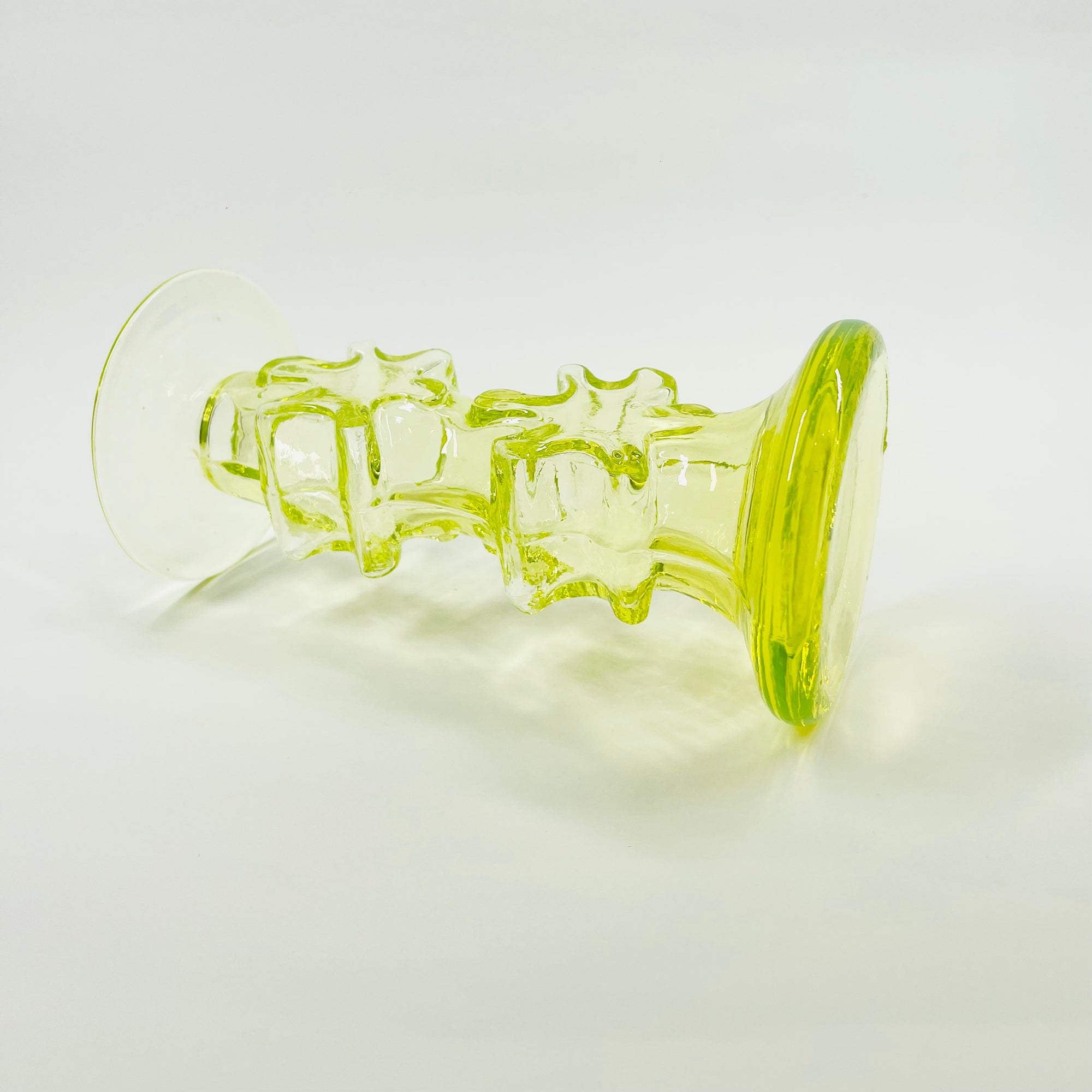 We recommend that you view our display at night when all the uranium glass pieces are lit up to have the full experience. We are also posting daily on our Instagram and Facebook page editorial photos of each item where we discuss at length about how they were made and the history behind their maker.