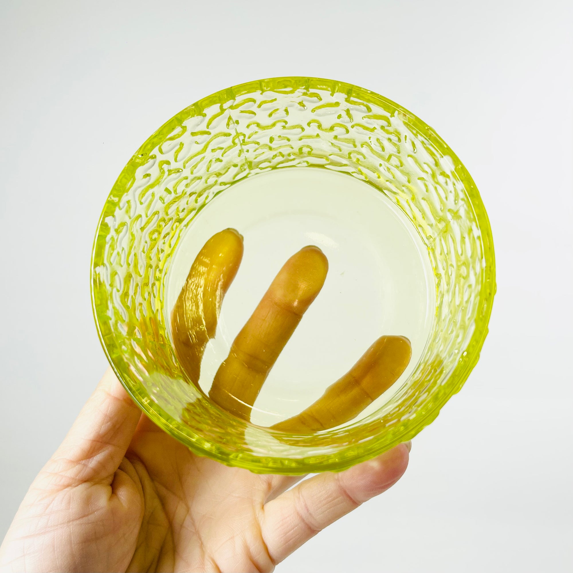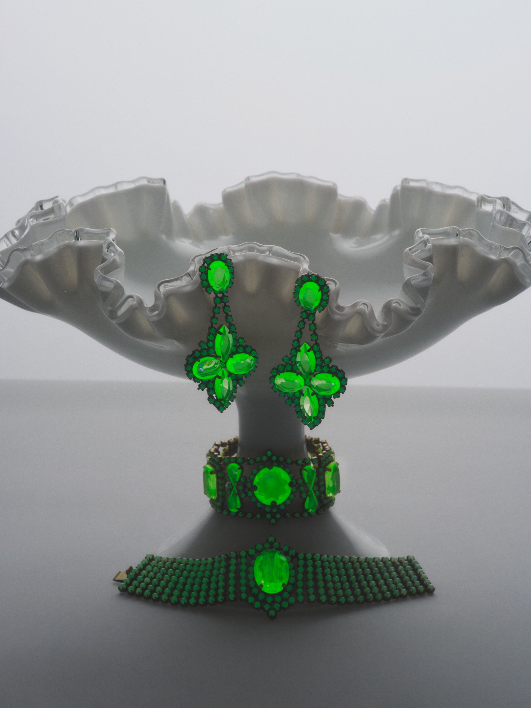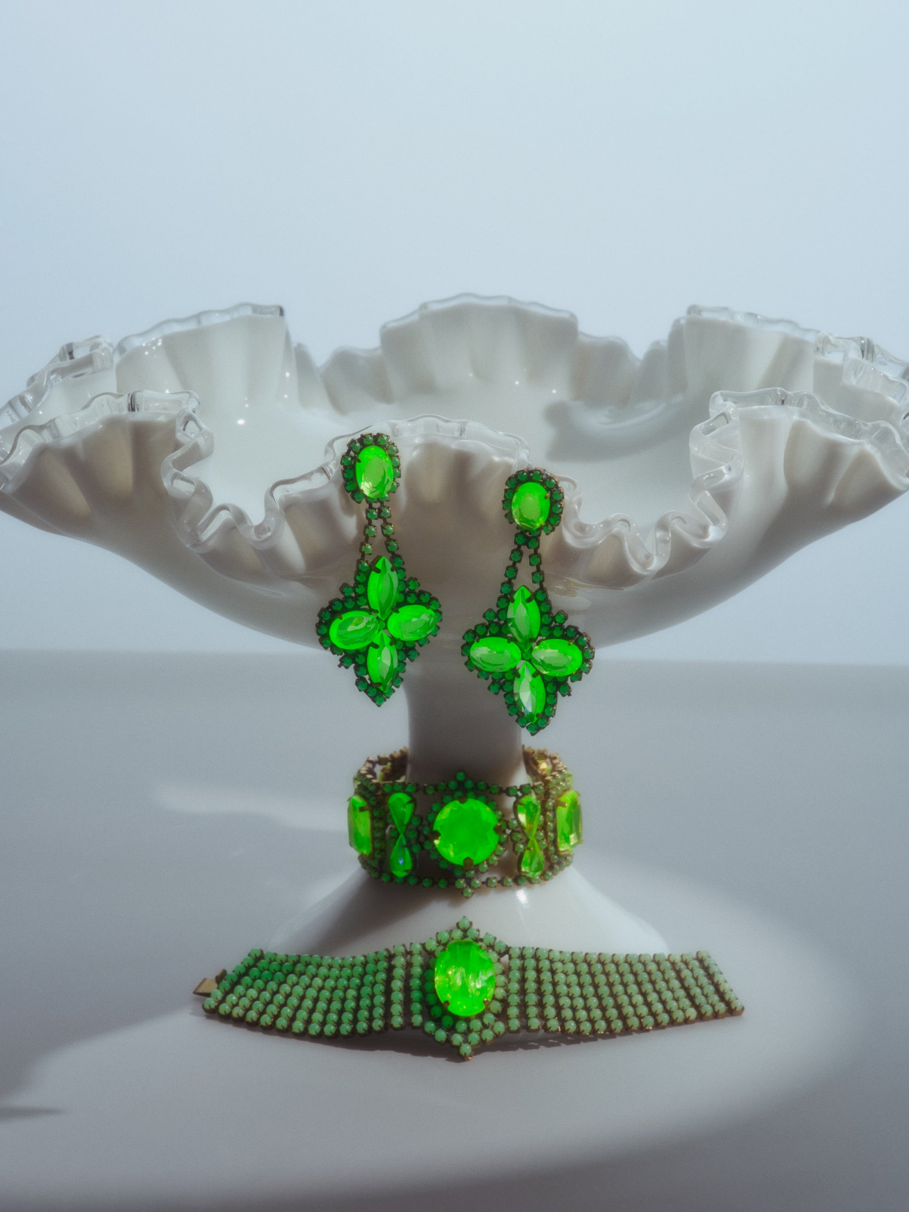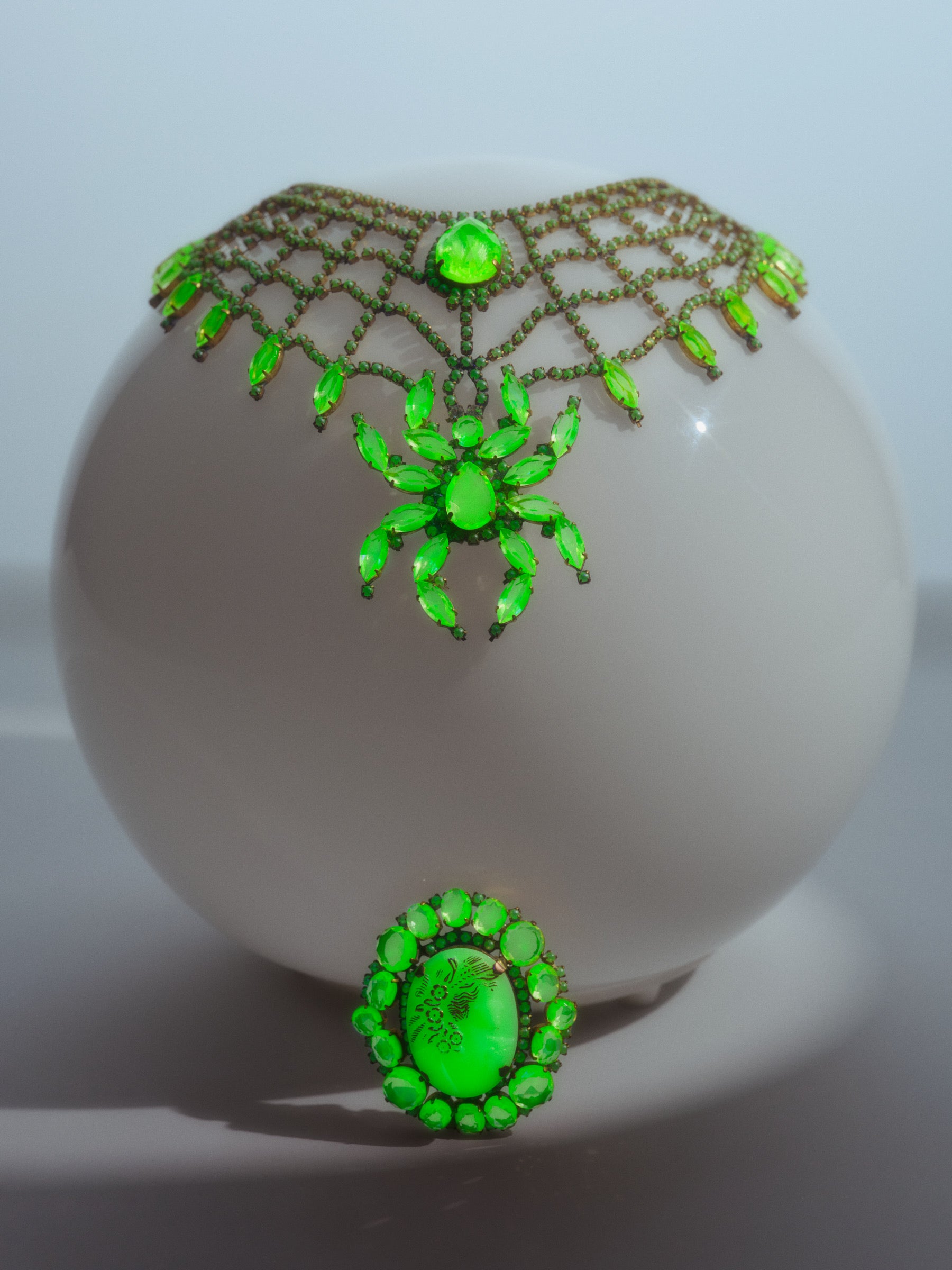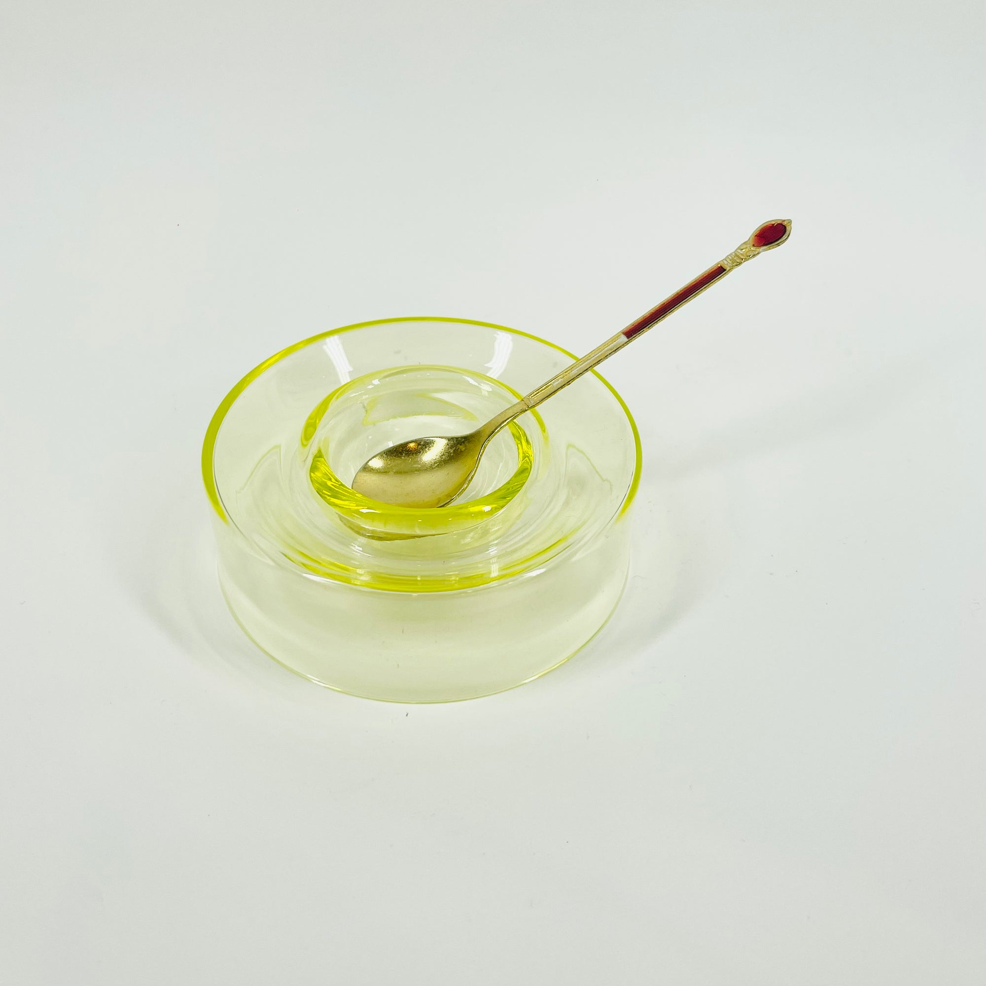 We recommend that you view our display at night when all the uranium glass pieces are lit up to have the full experience. We are also posting daily on our Instagram and Facebook page editorial photos of each item where we discuss at length about how they were made and the history behind their maker.