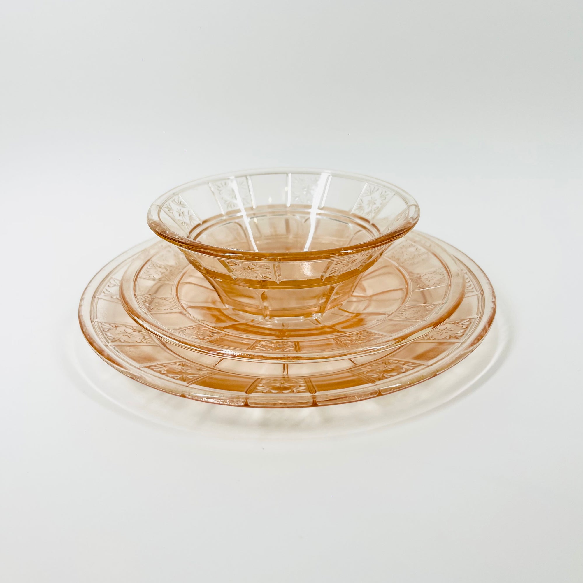 ANTIQUE DEPRESSION PINK PRESSED GLASS PLATE/BOWL/DINNER SERVICE